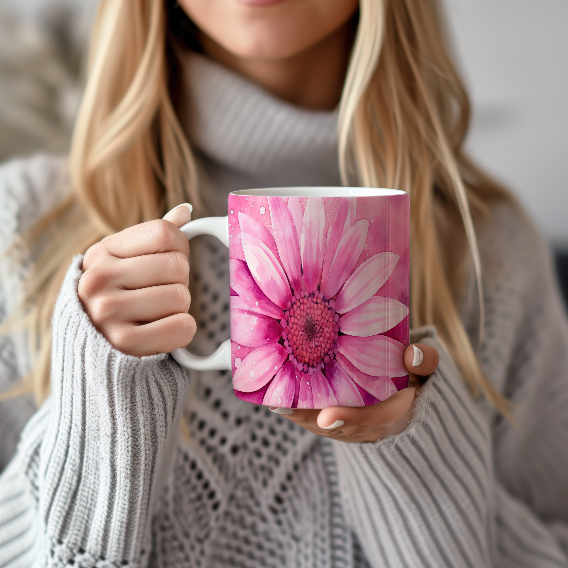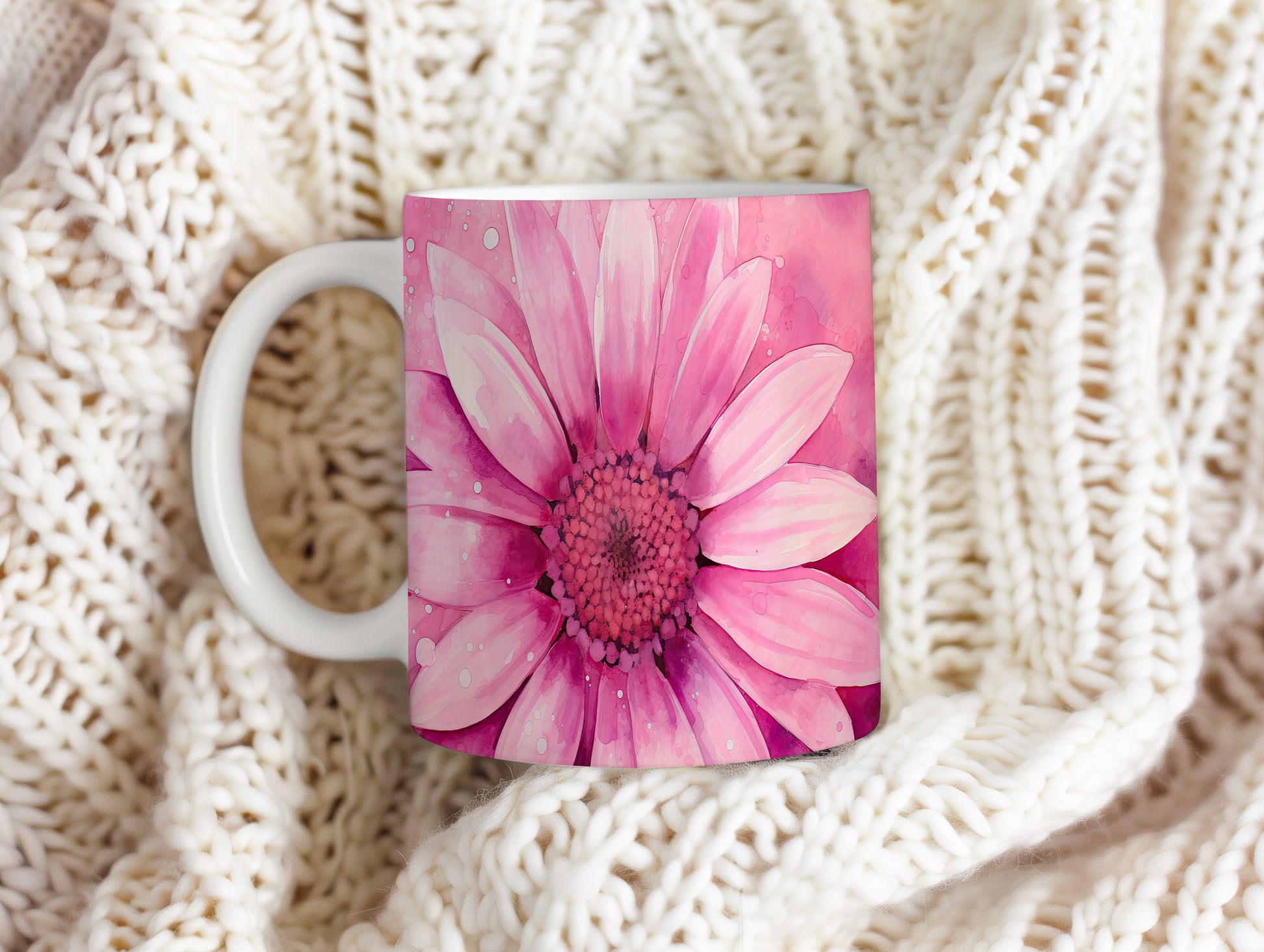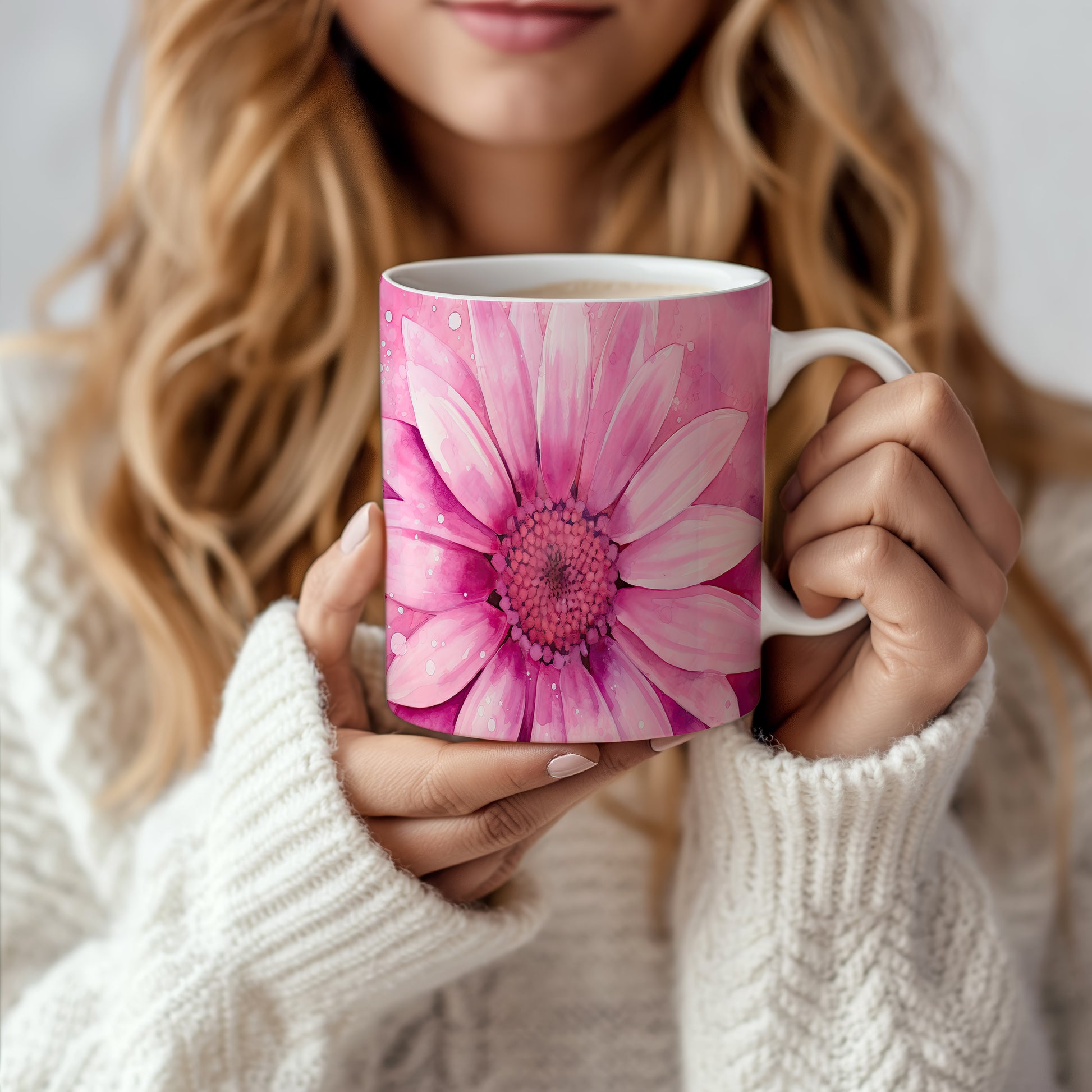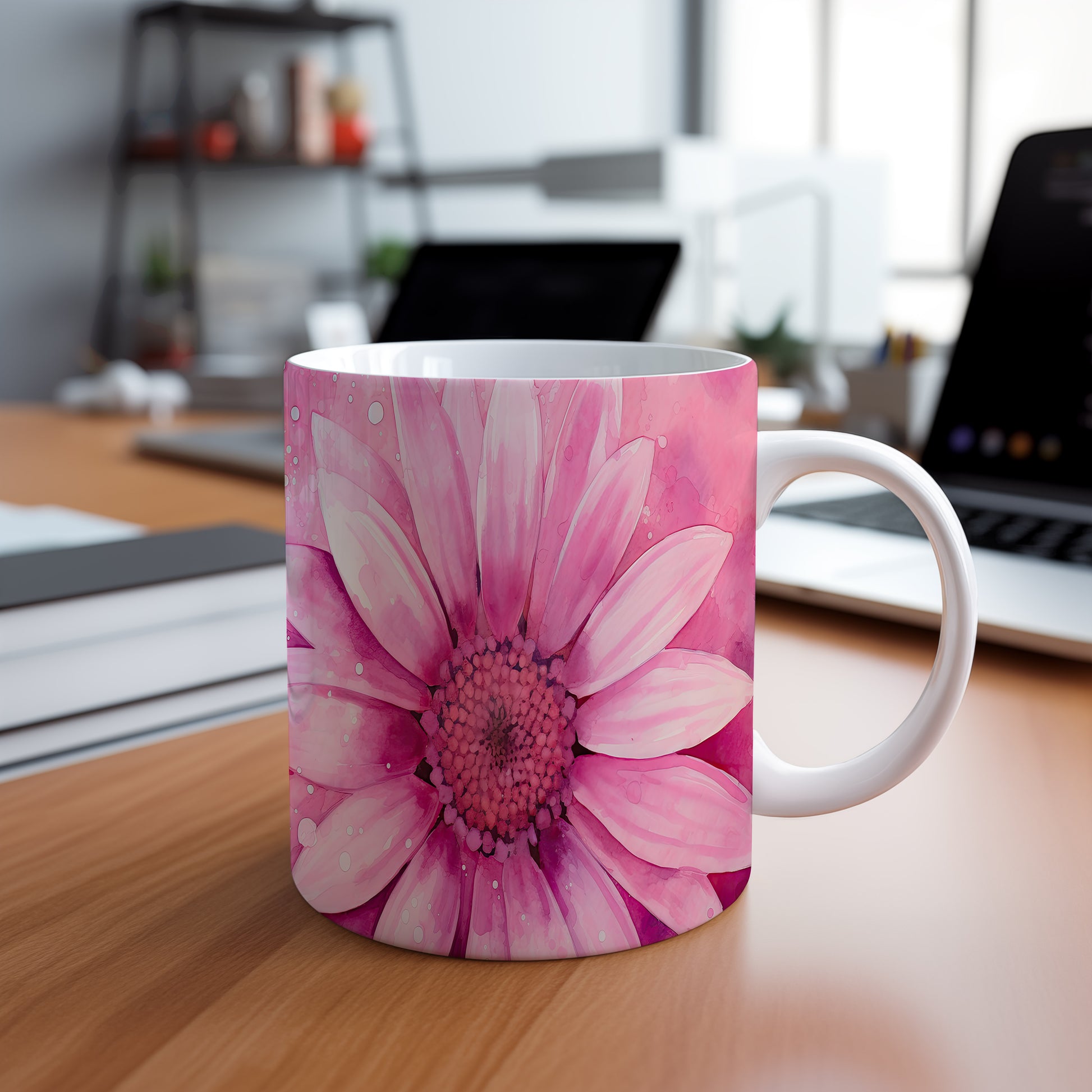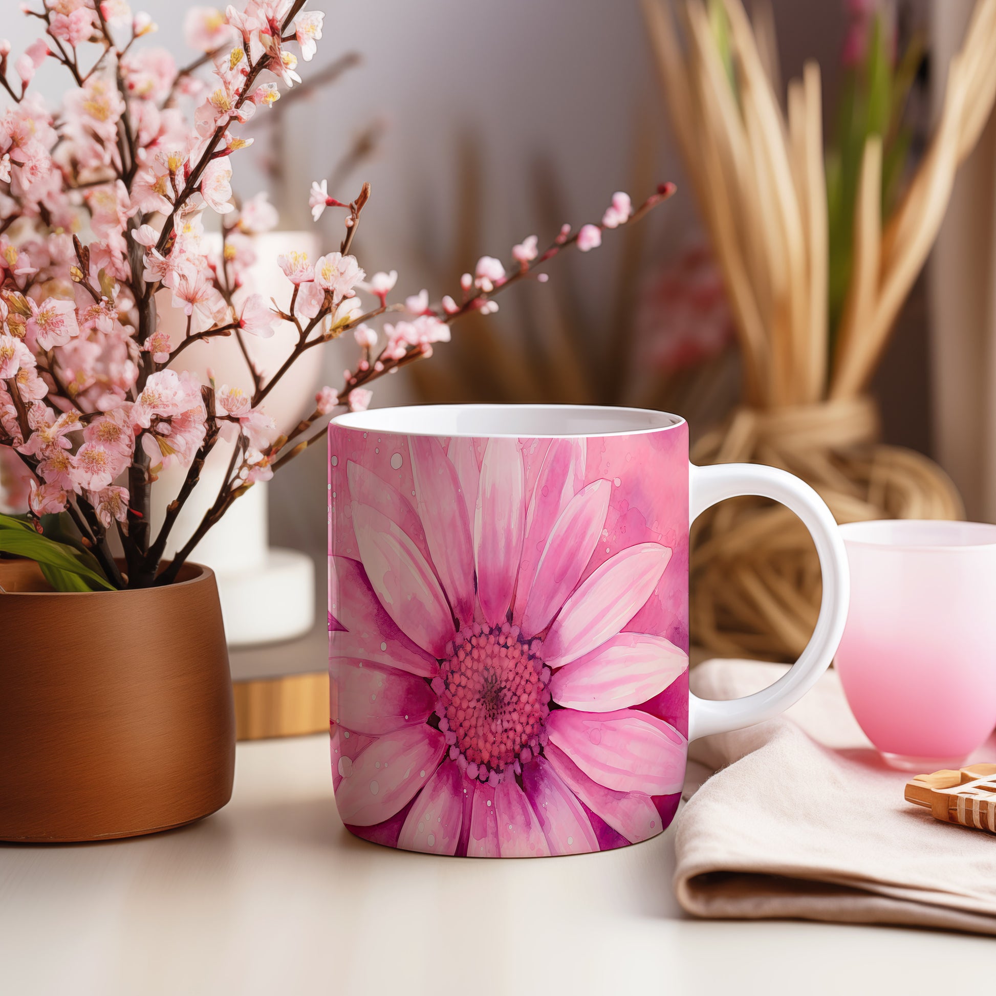 Hrnek s květinovým motivem růžové kytice