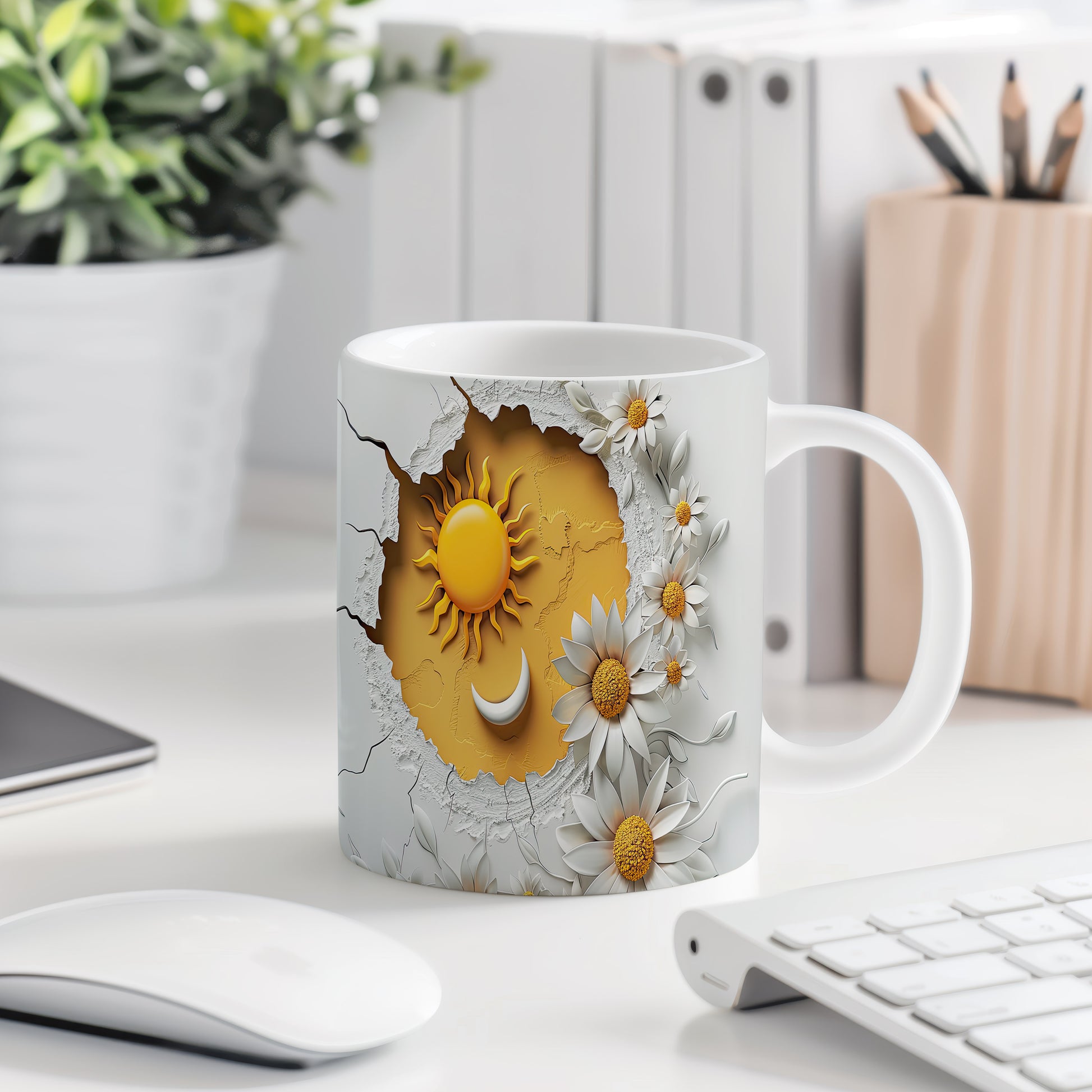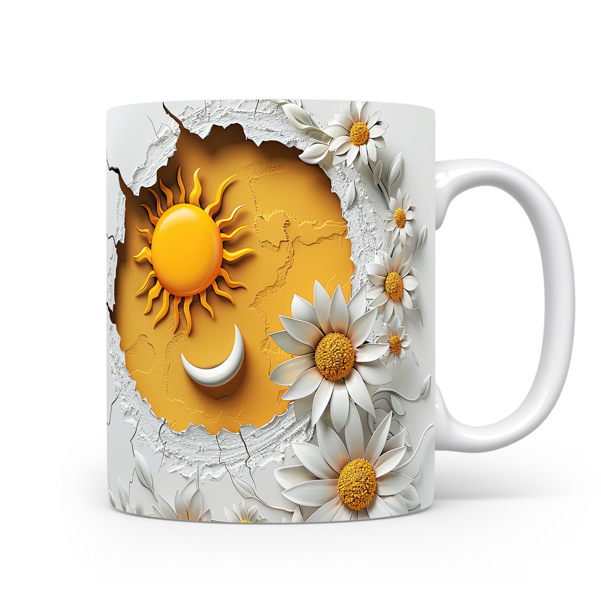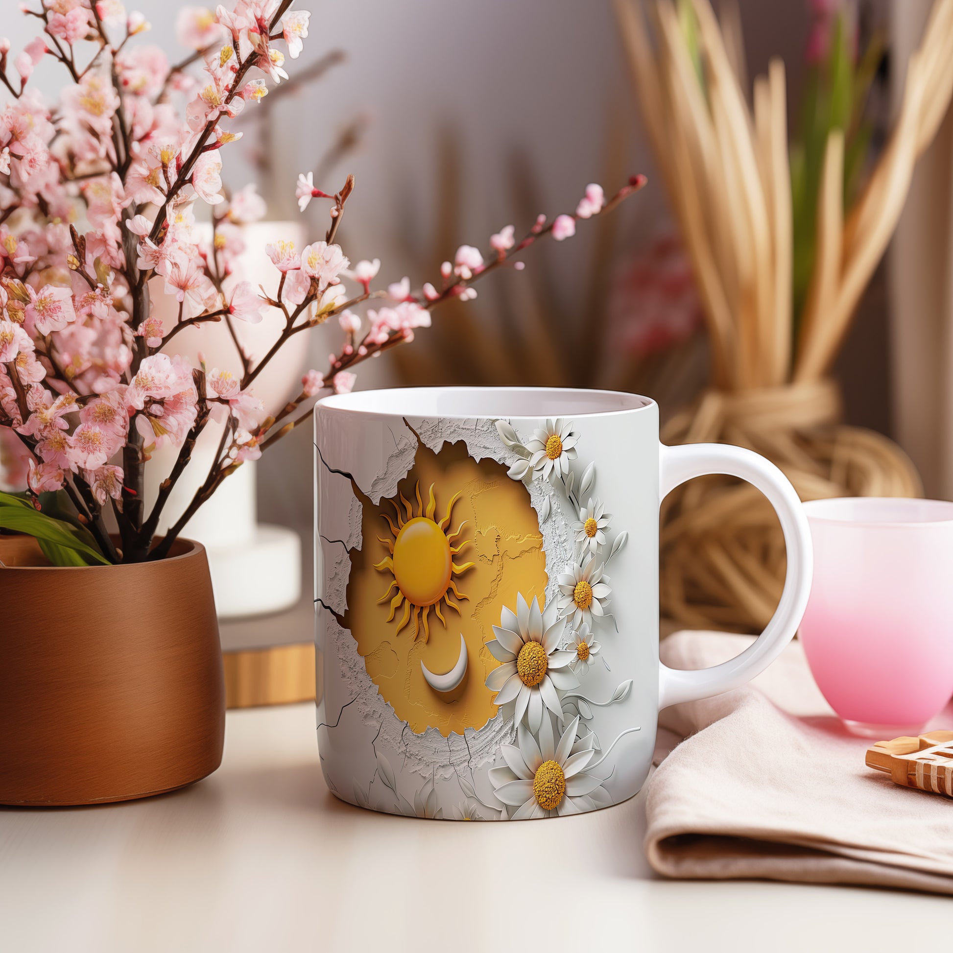 Tento keramický hrnek s květinovým motivem slunce a měsíce je skvělým doplňkem pro každého milovníka přírody. Je ideální jako dárek pro přátele nebo rodinu, kteří ocení originální design. Materiál: keramika. Objem: 330 ml. Vhodné do myčky i mikrovlnky. Díky svému stylovému vzhledu přináší radost do každodenního pití.