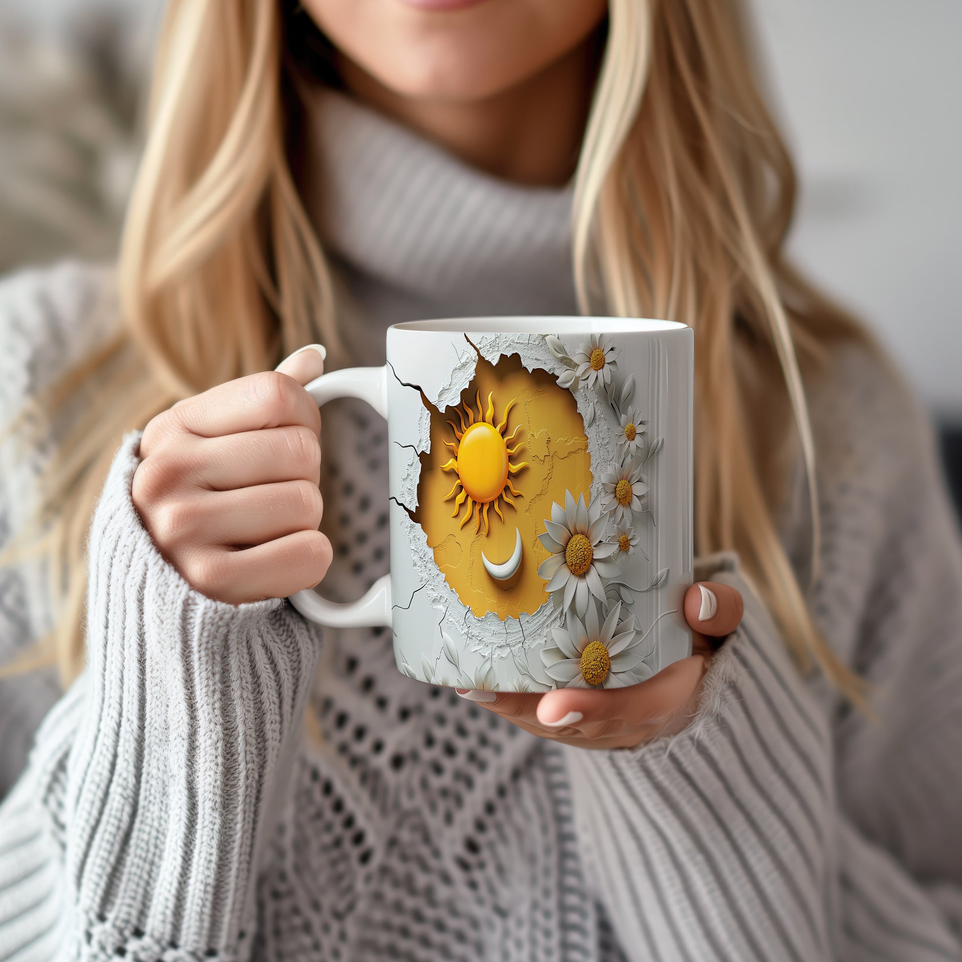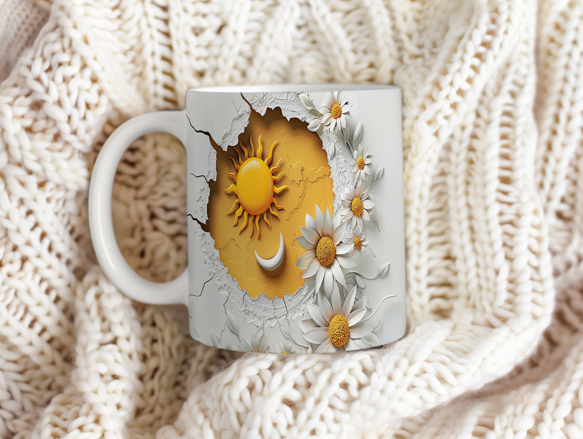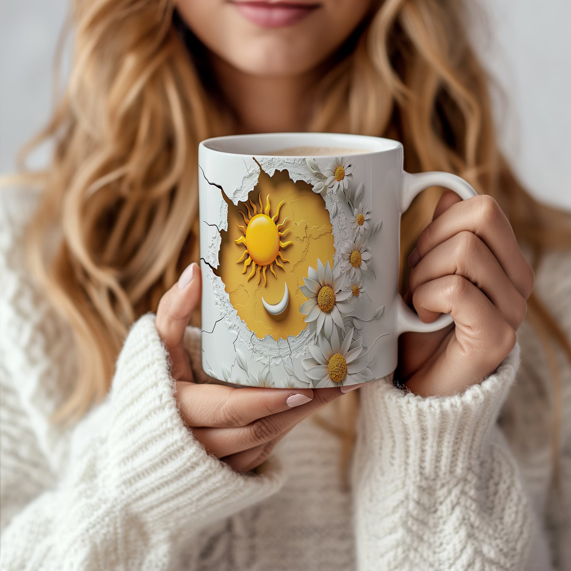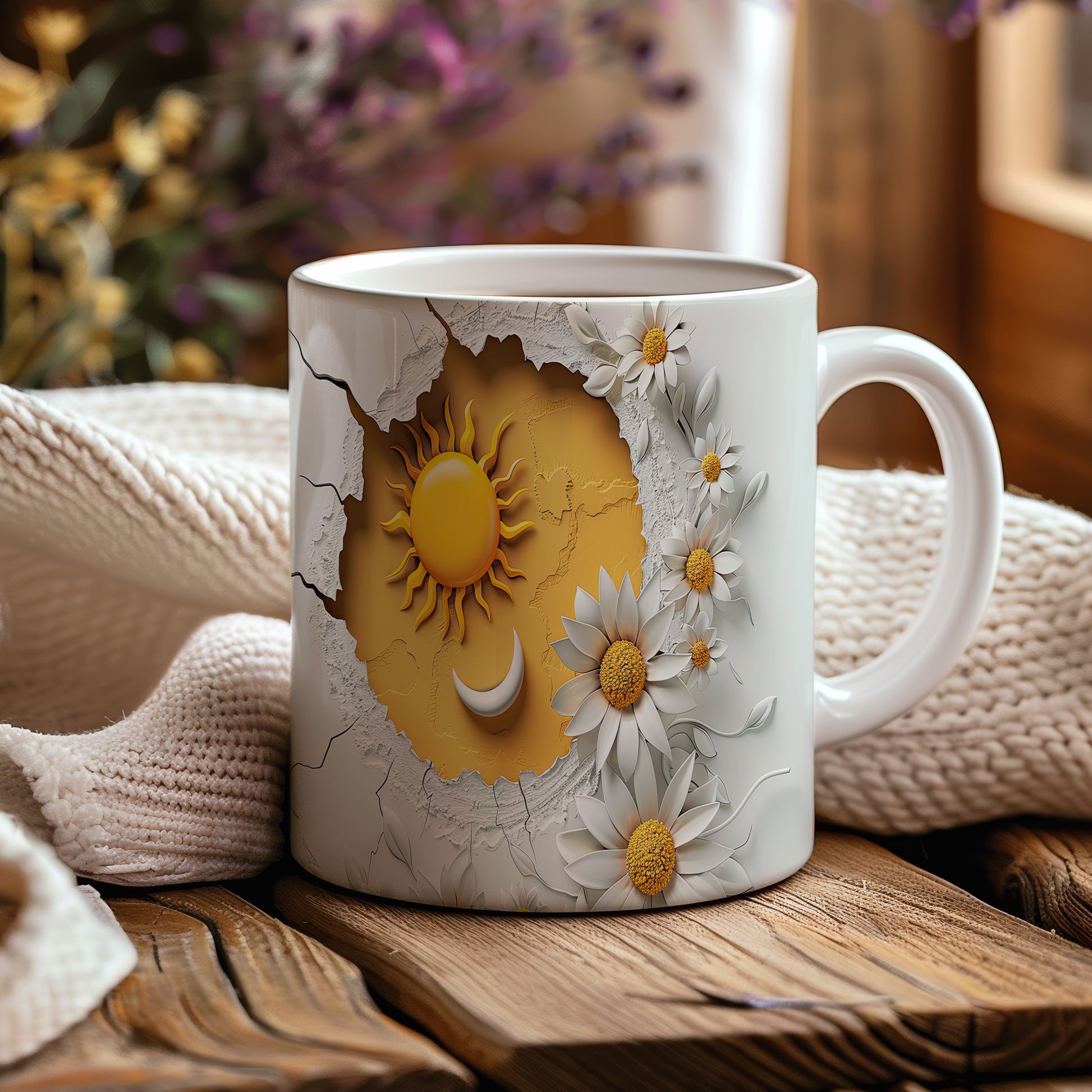 Tento keramický hrnek s květinovým motivem slunce a měsíce je skvělým doplňkem pro každého milovníka přírody. Je ideální jako dárek pro přátele nebo rodinu, kteří ocení originální design. Materiál: keramika. Objem: 330 ml. Vhodné do myčky i mikrovlnky. Díky svému stylovému vzhledu přináší radost do každodenního pití.
