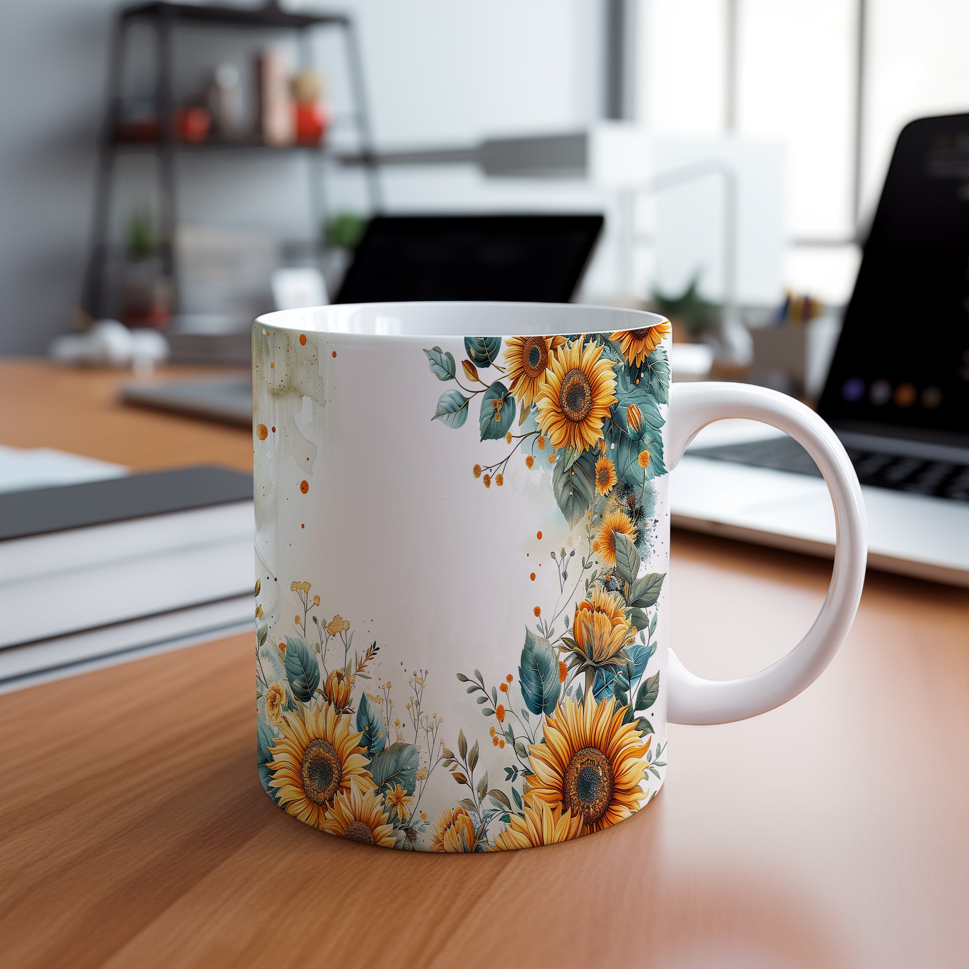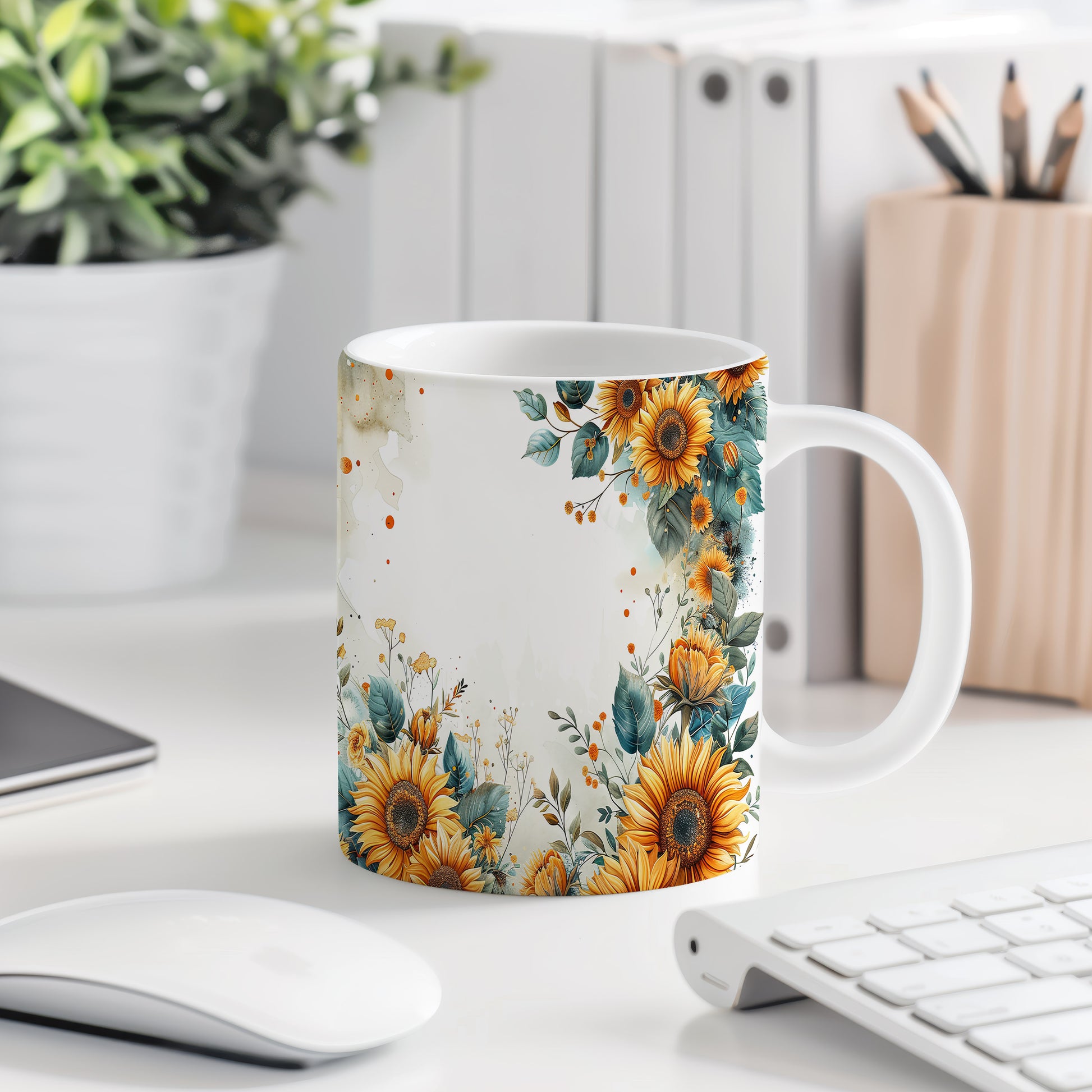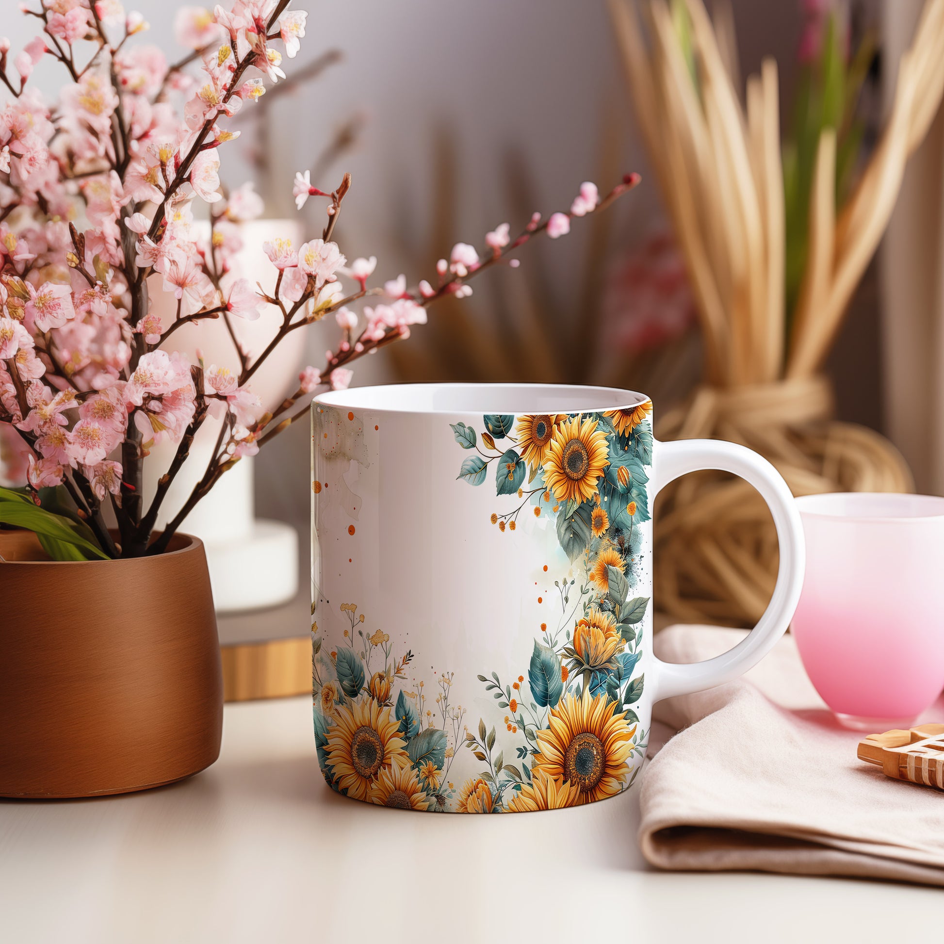Tento keramický hrnek s květinovým motivem slunečnic a zelených listů přináší do vašeho domova svěží atmosféru. Je ideální pro milovníky přírody a skvělým dárkem pro přátele nebo rodinu. Materiál: keramika. Objem: 330 ml. Vhodné do myčky i mikrovlnky. Díky svému designu a praktičnosti se stane oblíbeným společníkem při každém doušku vašeho oblíbeného nápoje.