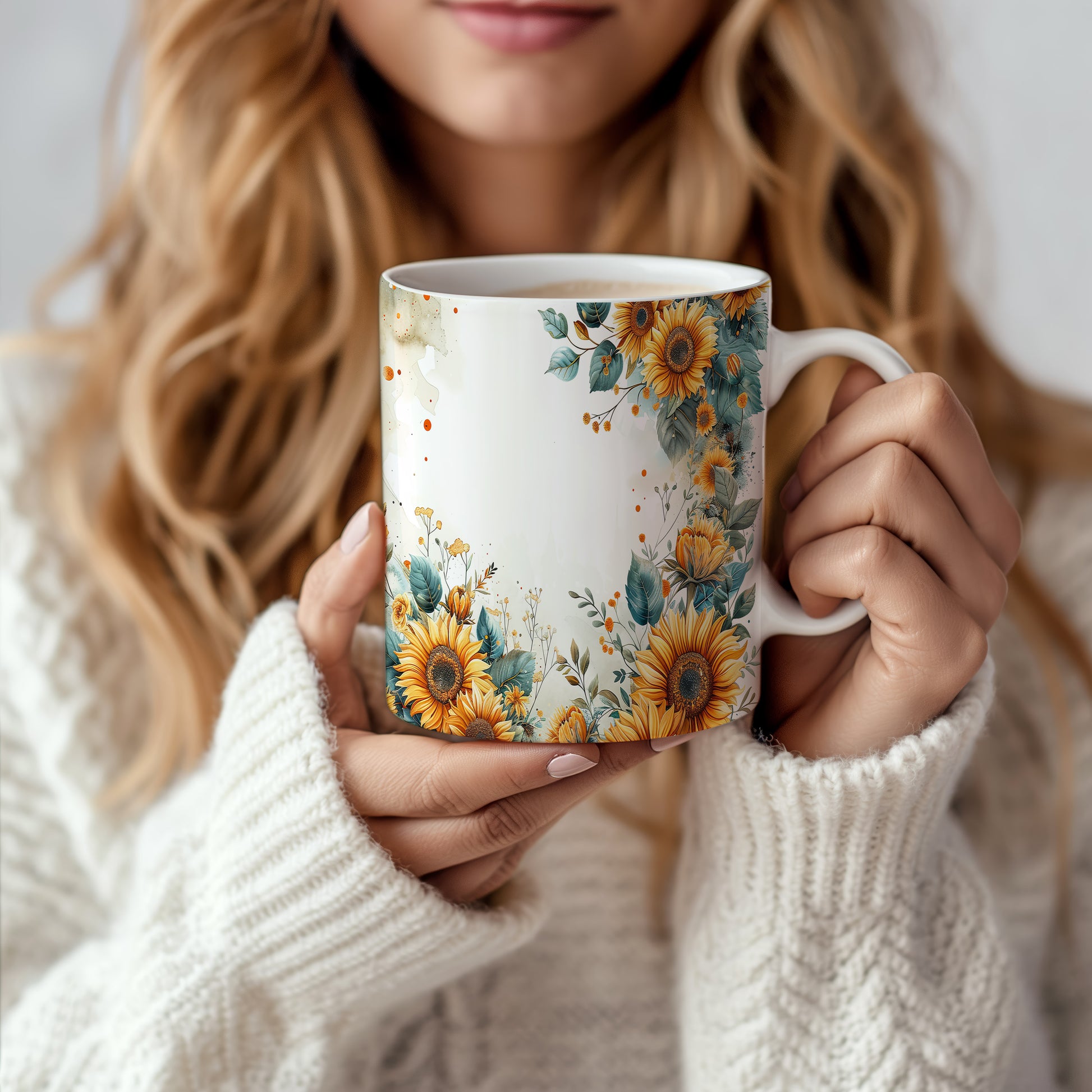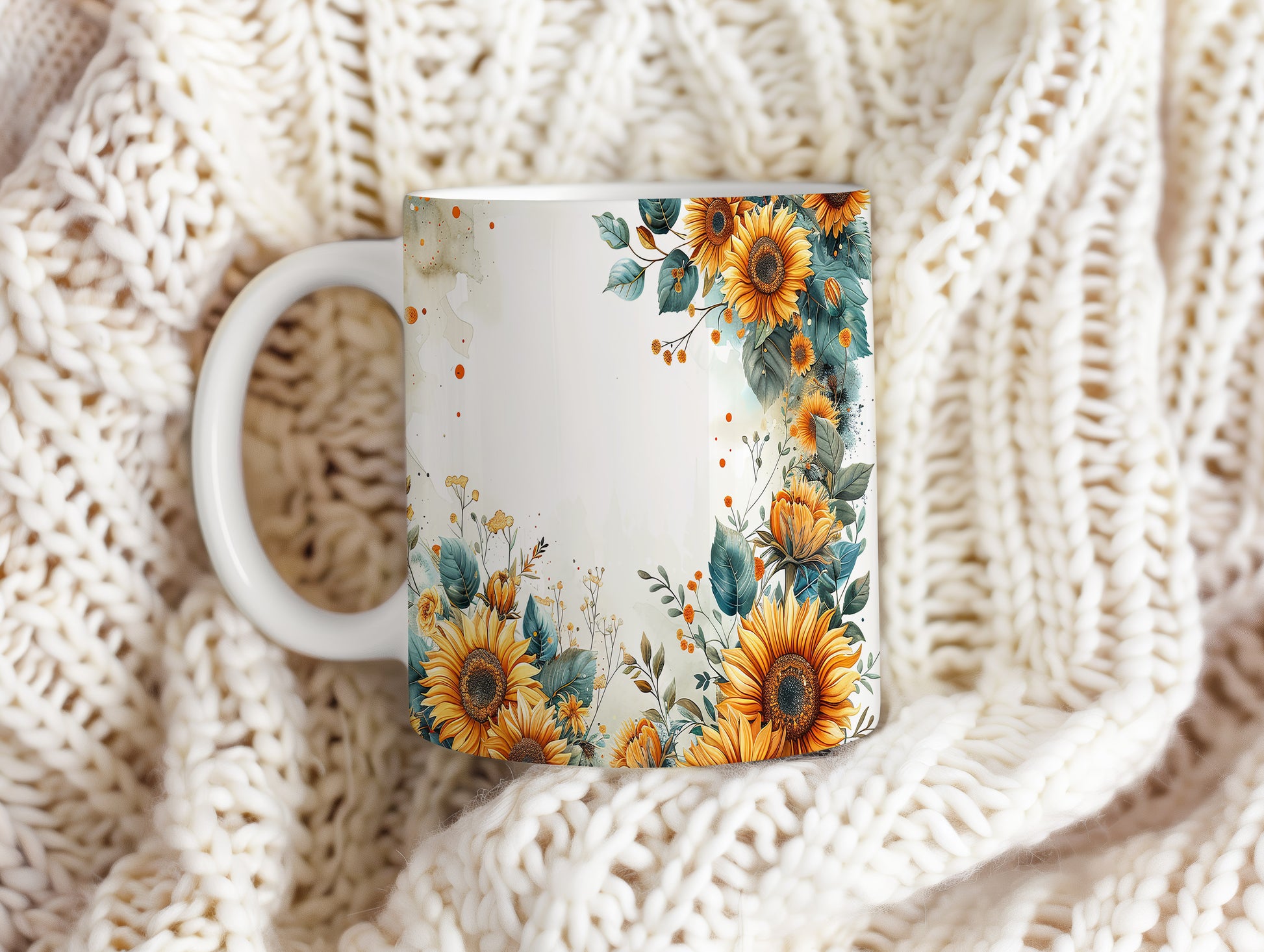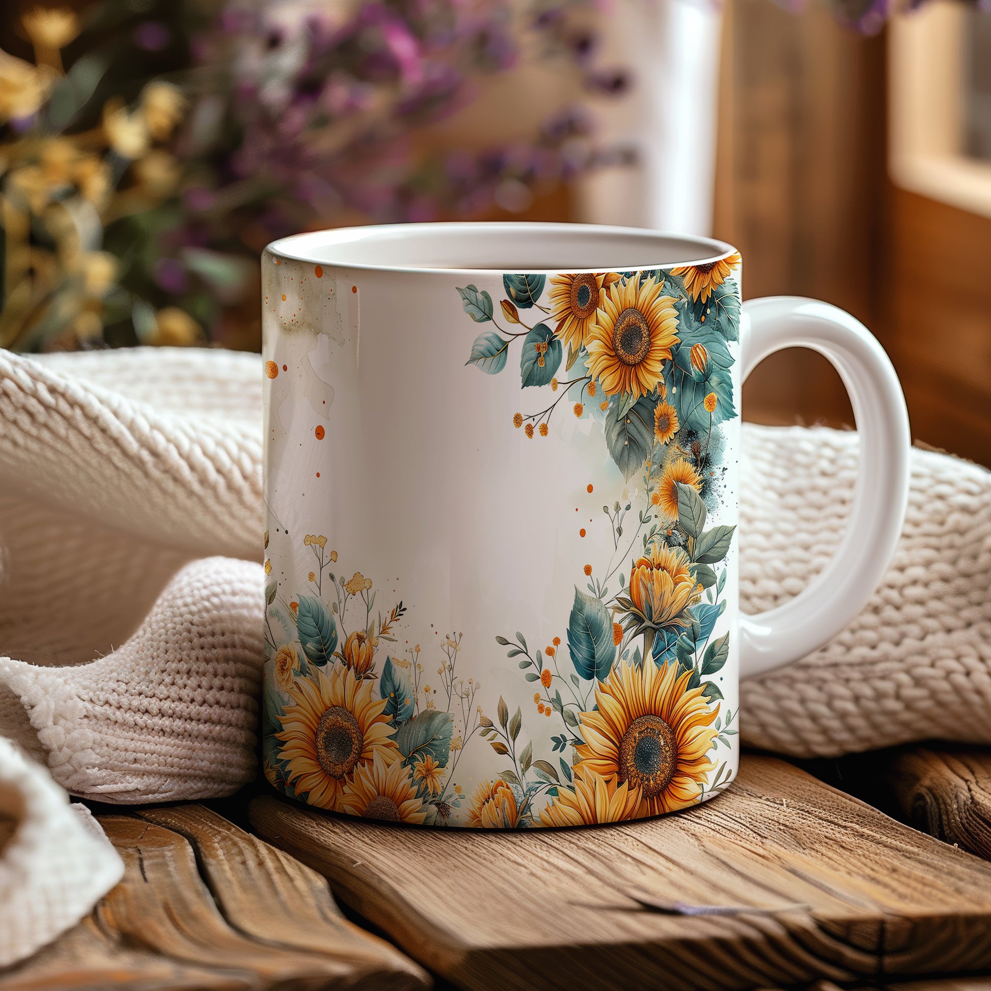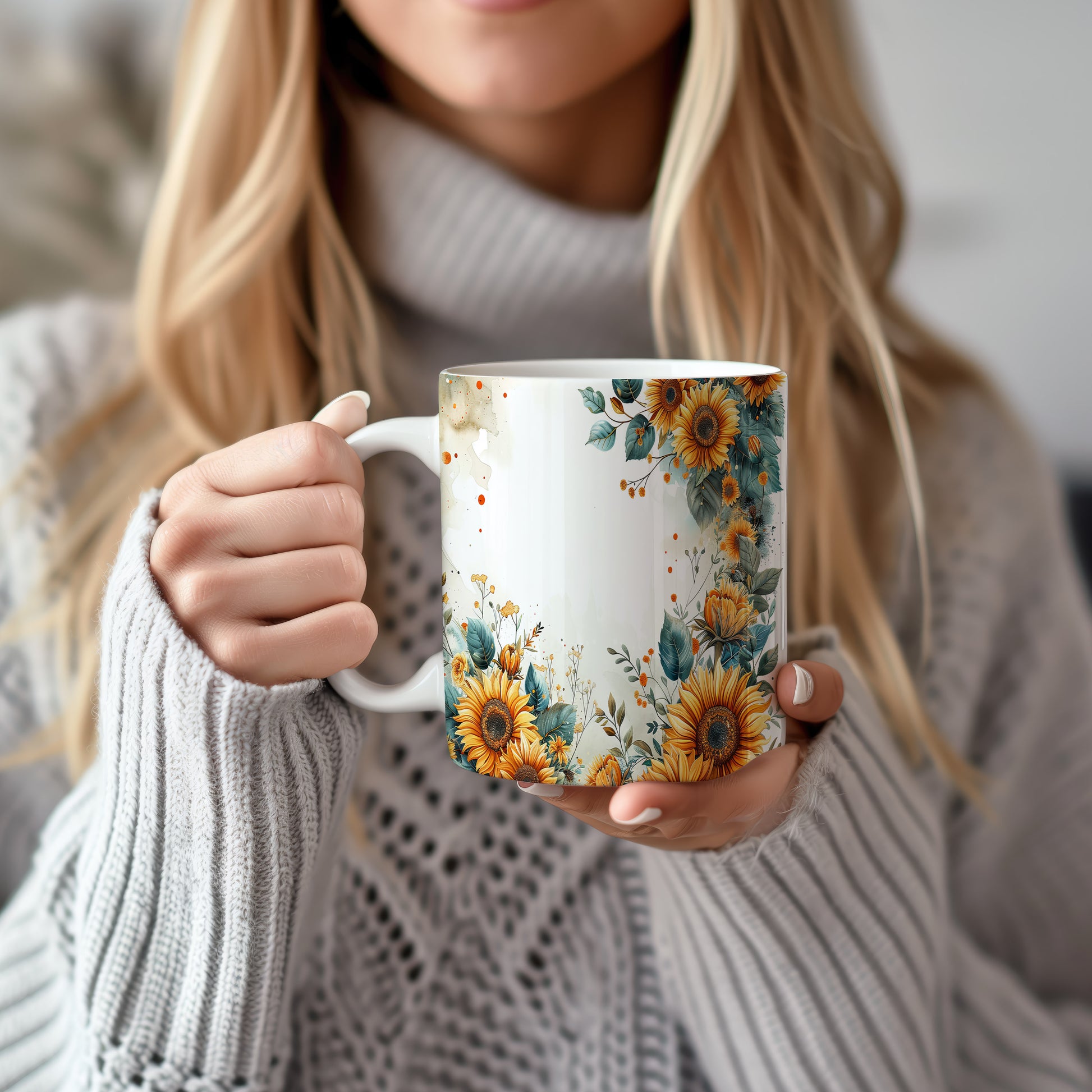 Tento keramický hrnek s květinovým motivem slunečnic a zelených listů přináší do vašeho domova svěží atmosféru. Je ideální pro milovníky přírody a skvělým dárkem pro přátele nebo rodinu. Materiál: keramika. Objem: 330 ml. Vhodné do myčky i mikrovlnky. Díky svému designu a praktičnosti se stane oblíbeným společníkem při každém doušku vašeho oblíbeného nápoje.