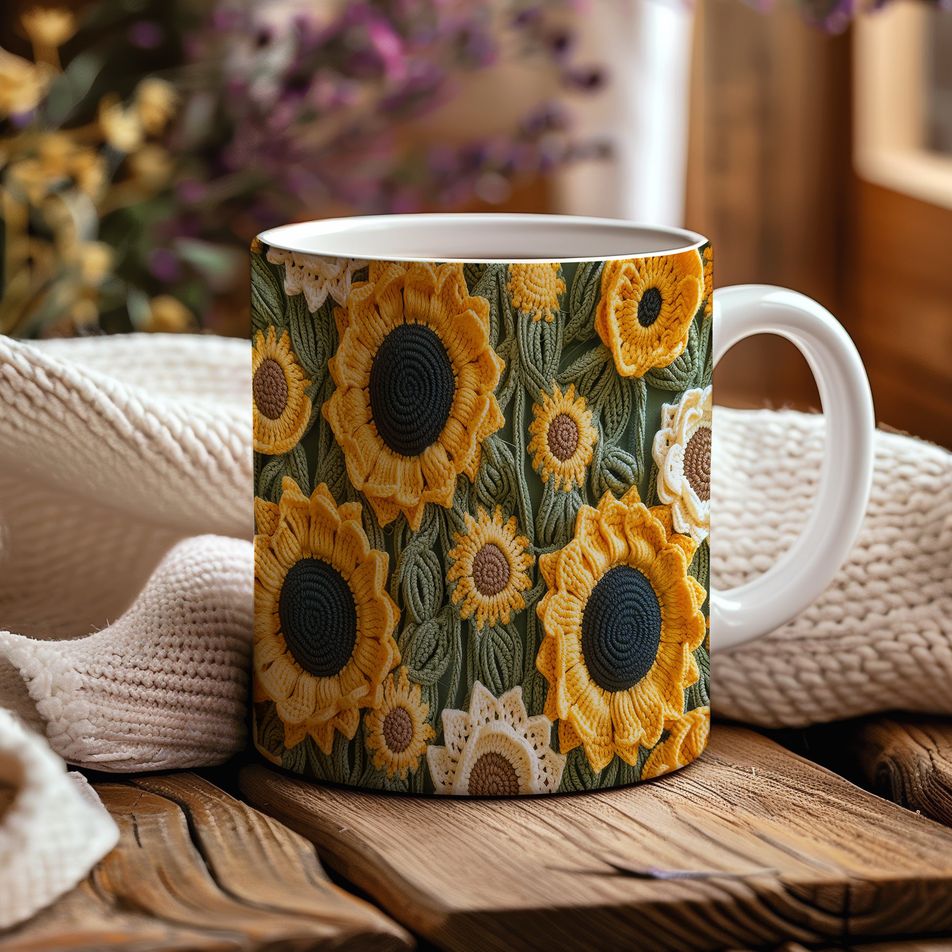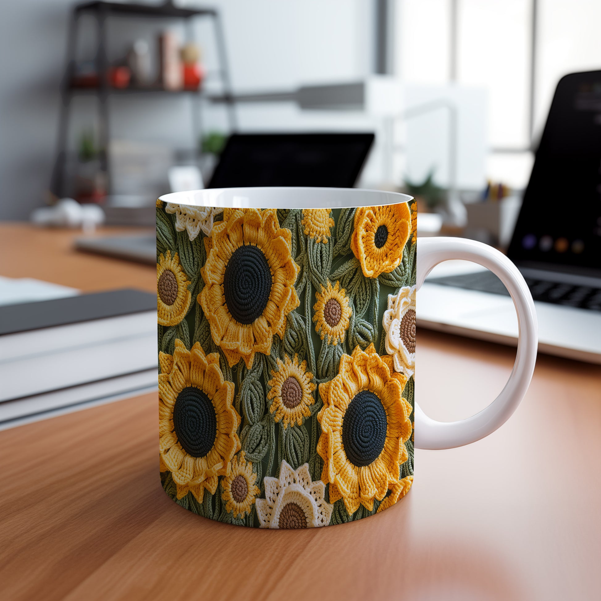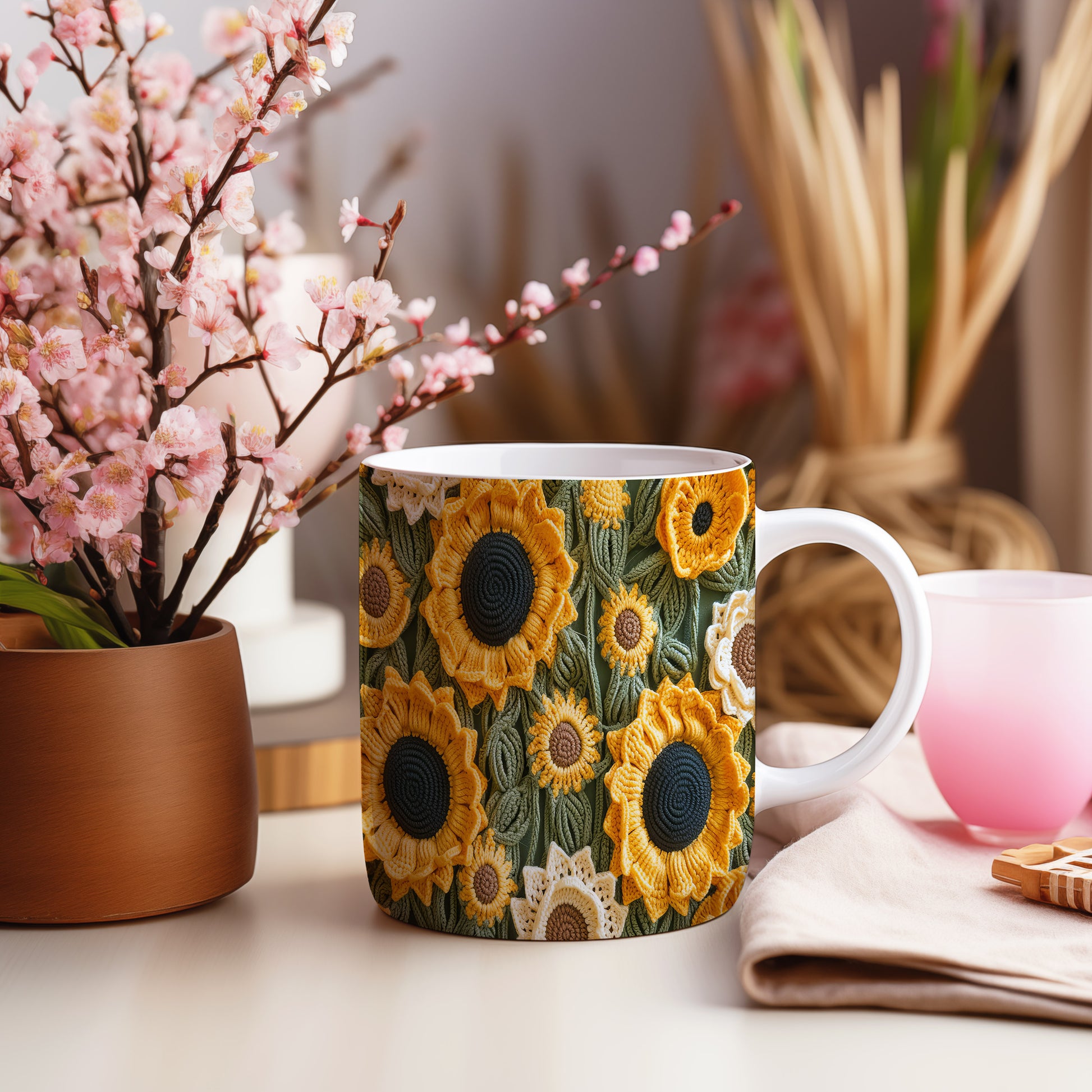 Hrnek s květinovým motivem slunečnic – roztomilým motivem