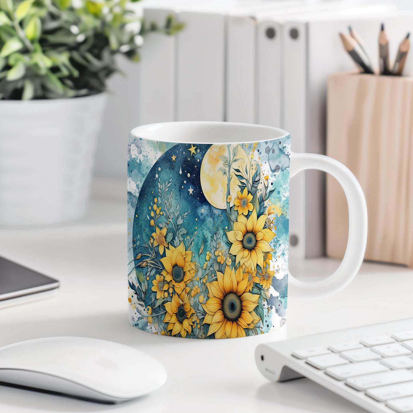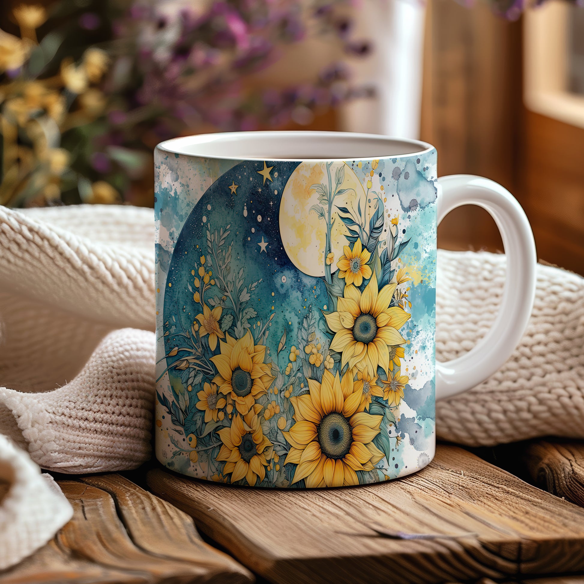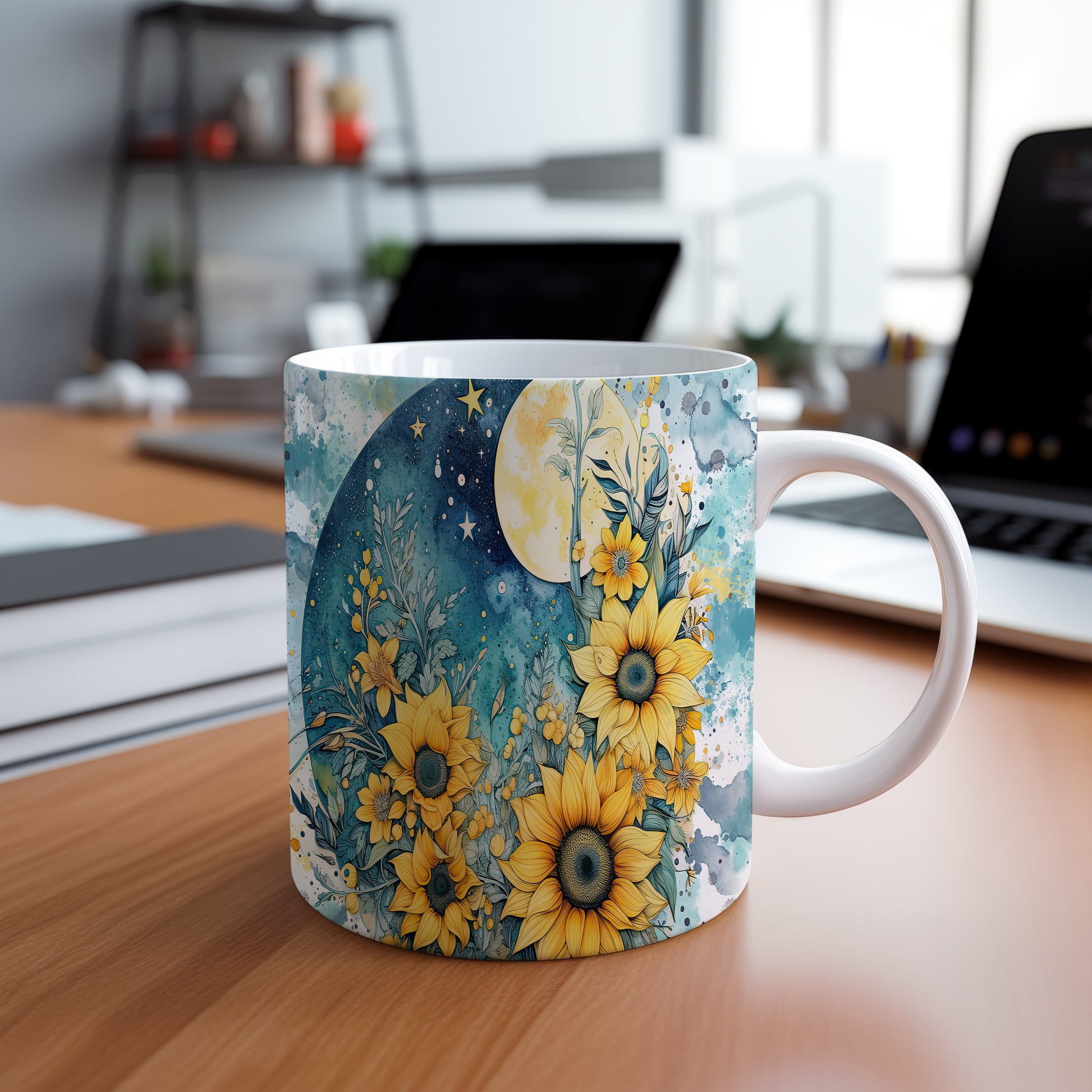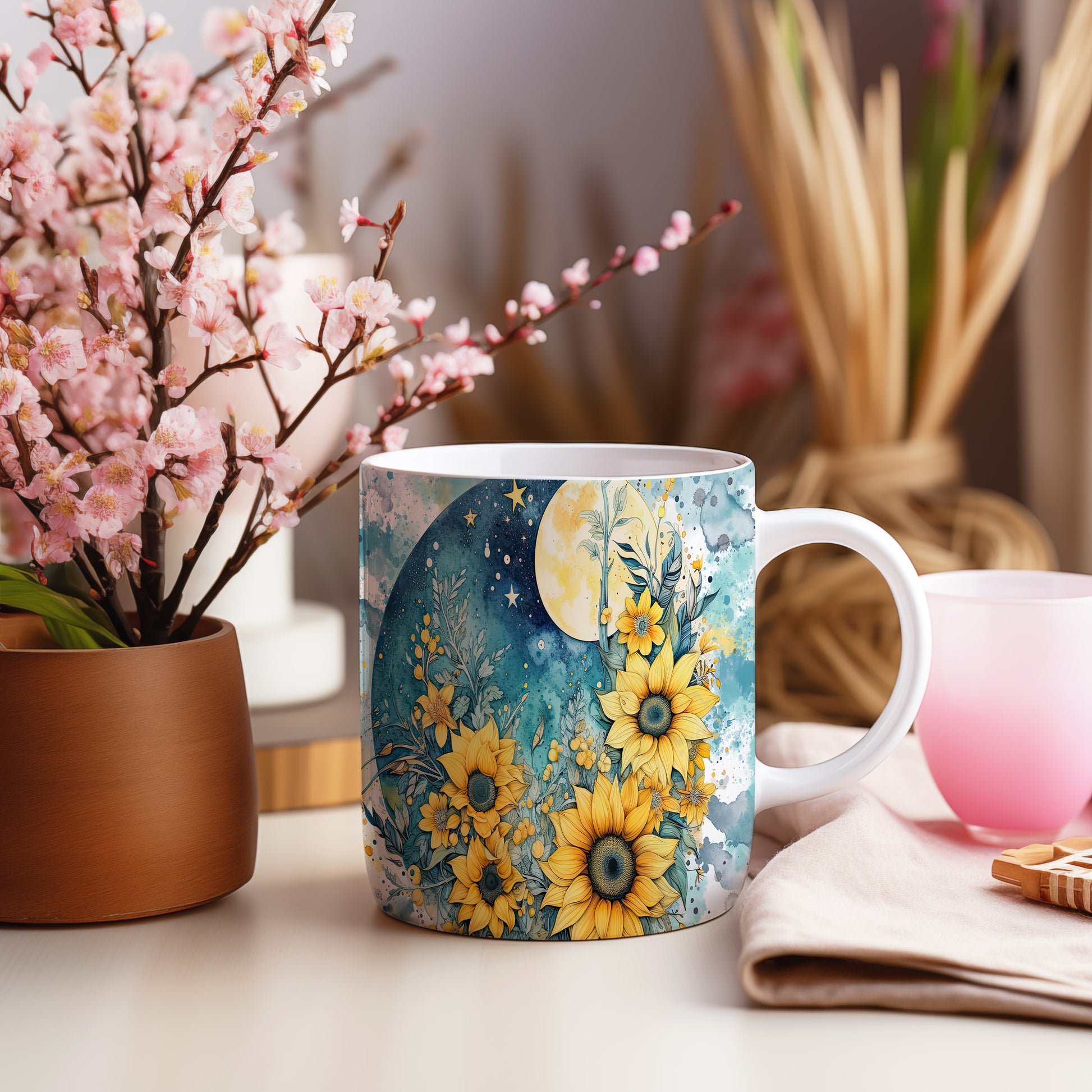 Hrnek s květinovým motivem slunečnic – výrazným designem