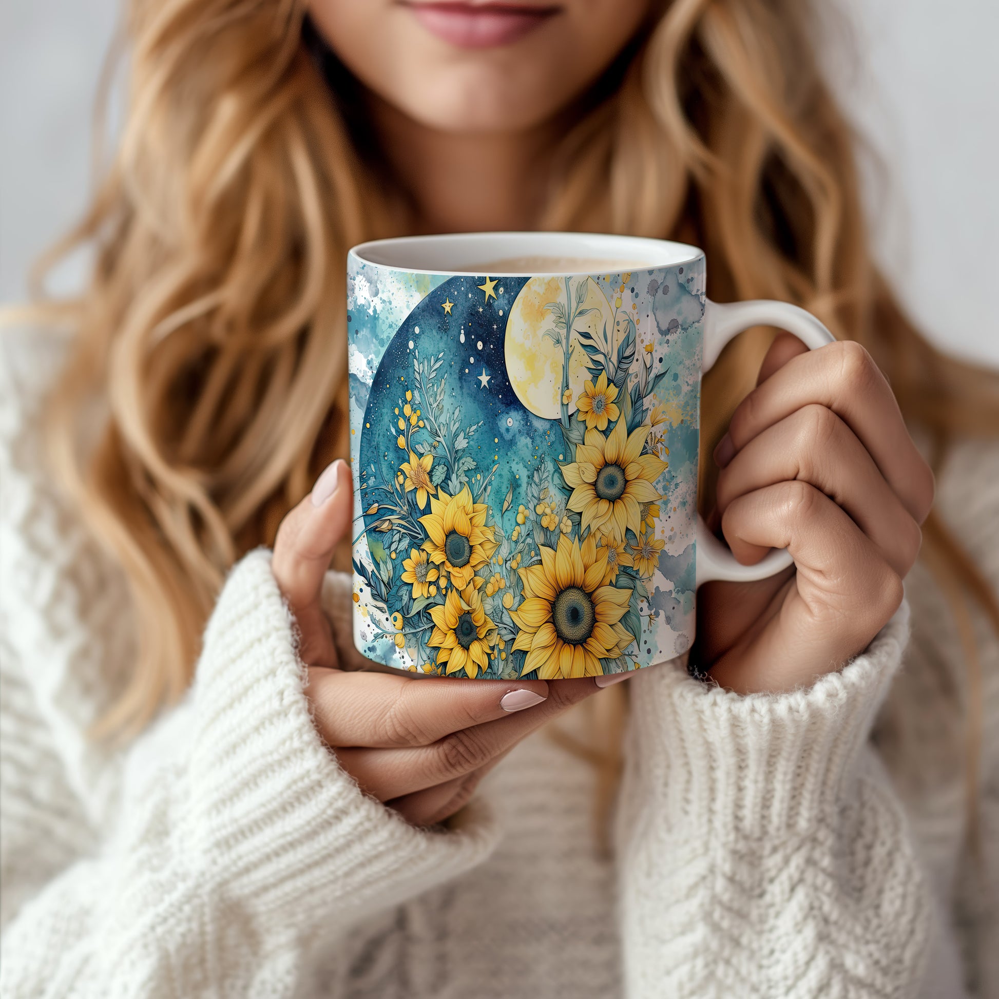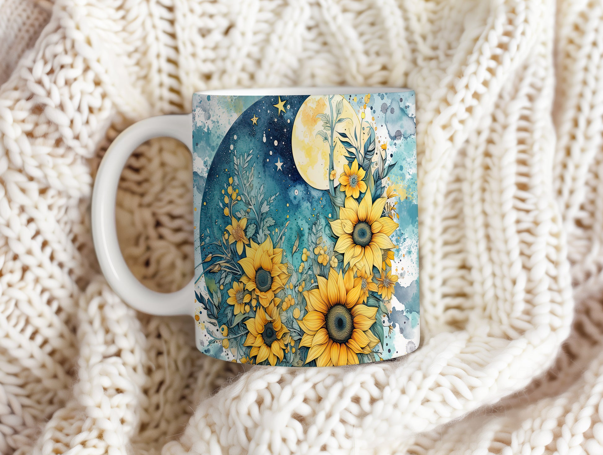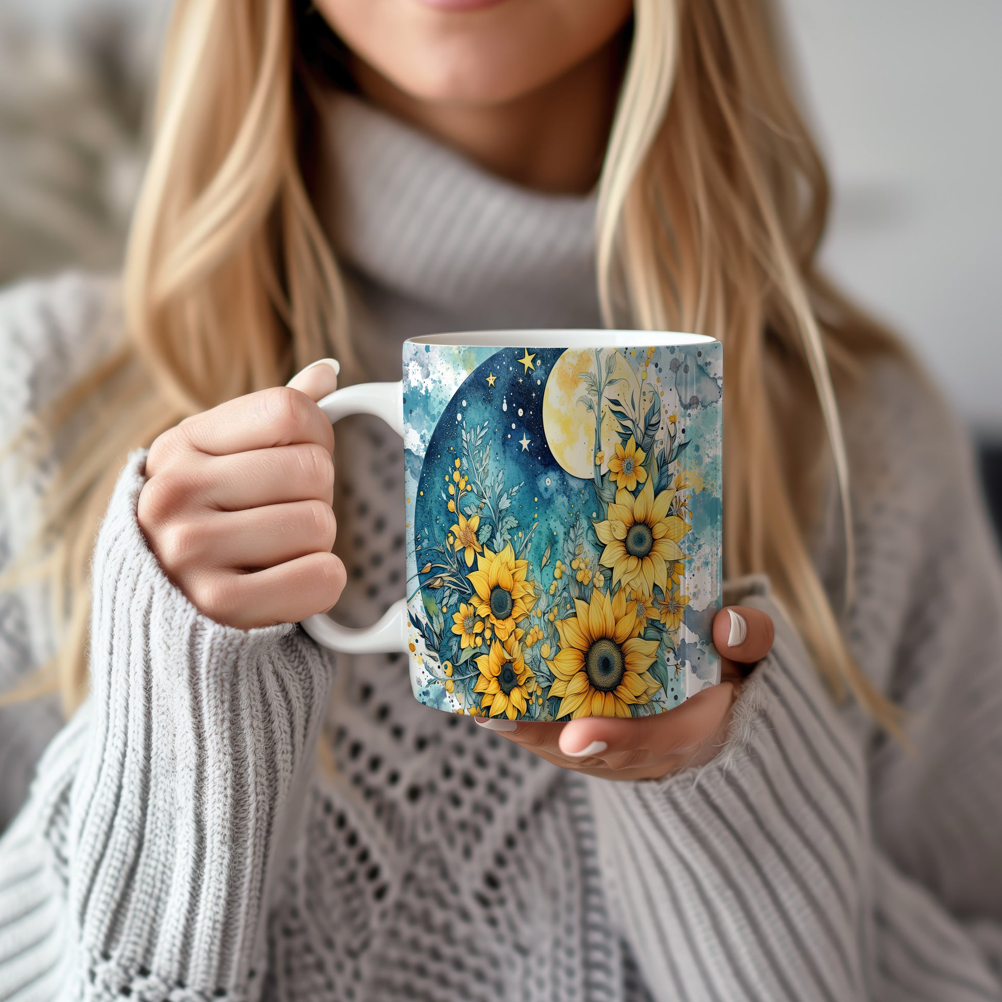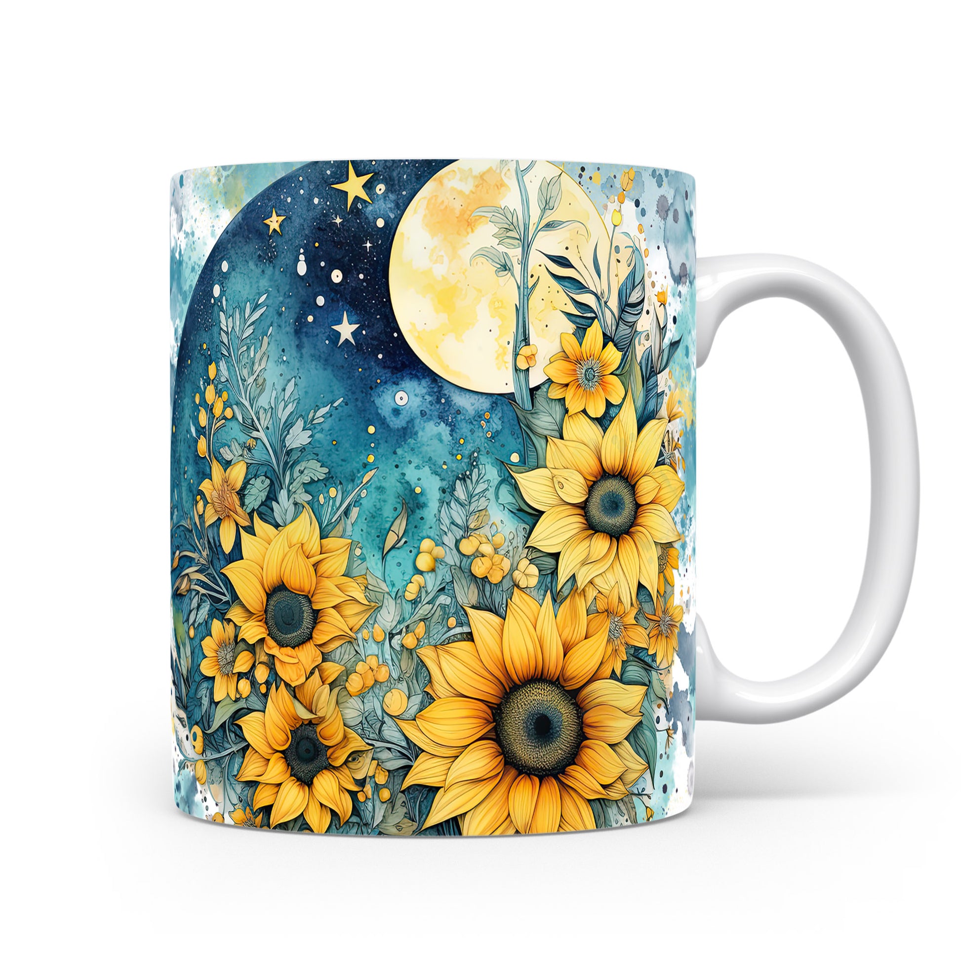 Hrnek s květinovým motivem slunečnic – výrazným designem