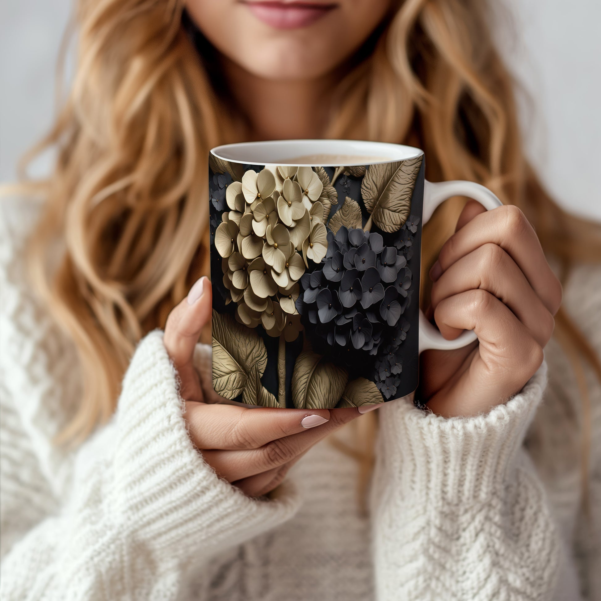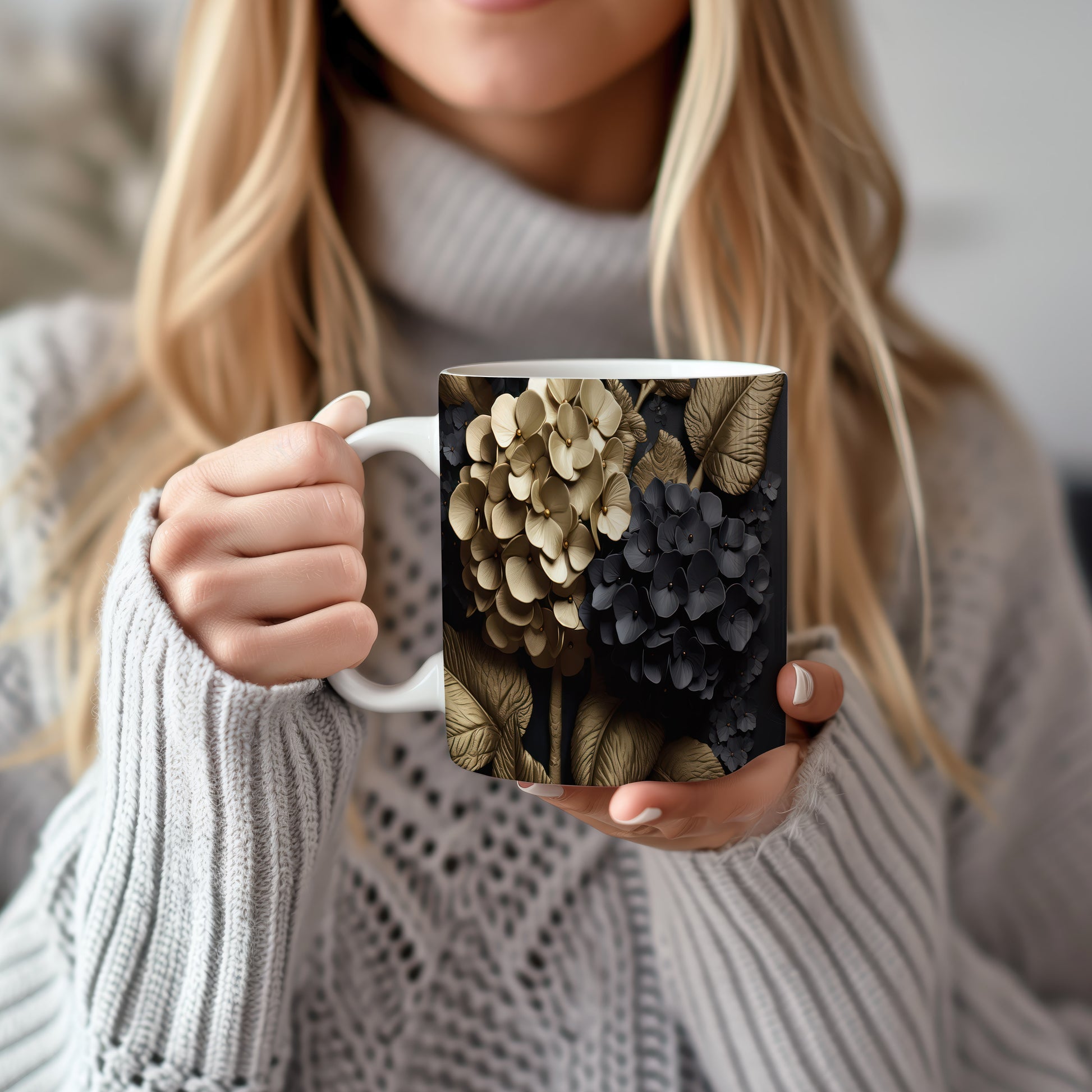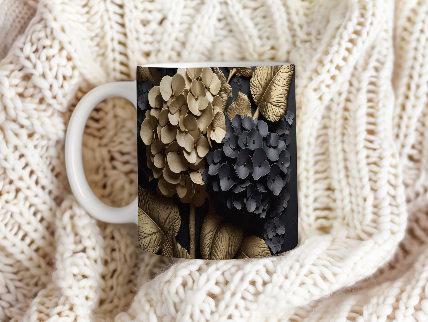 Hrnek s elegantním květinovým motivem, který kombinuje zlaté a černé květy na tmavém pozadí. Tento stylový hrnek je skvělou volbou pro každodenní používání a potěší každého milovníka květin. Je ideálním dárkem pro přátele nebo rodinu. Materiál: keramika. Objem: 330 ml. Vhodné do myčky i mikrovlnky. Užívejte si kávu nebo čaj v krásném designu, který oživí váš den.