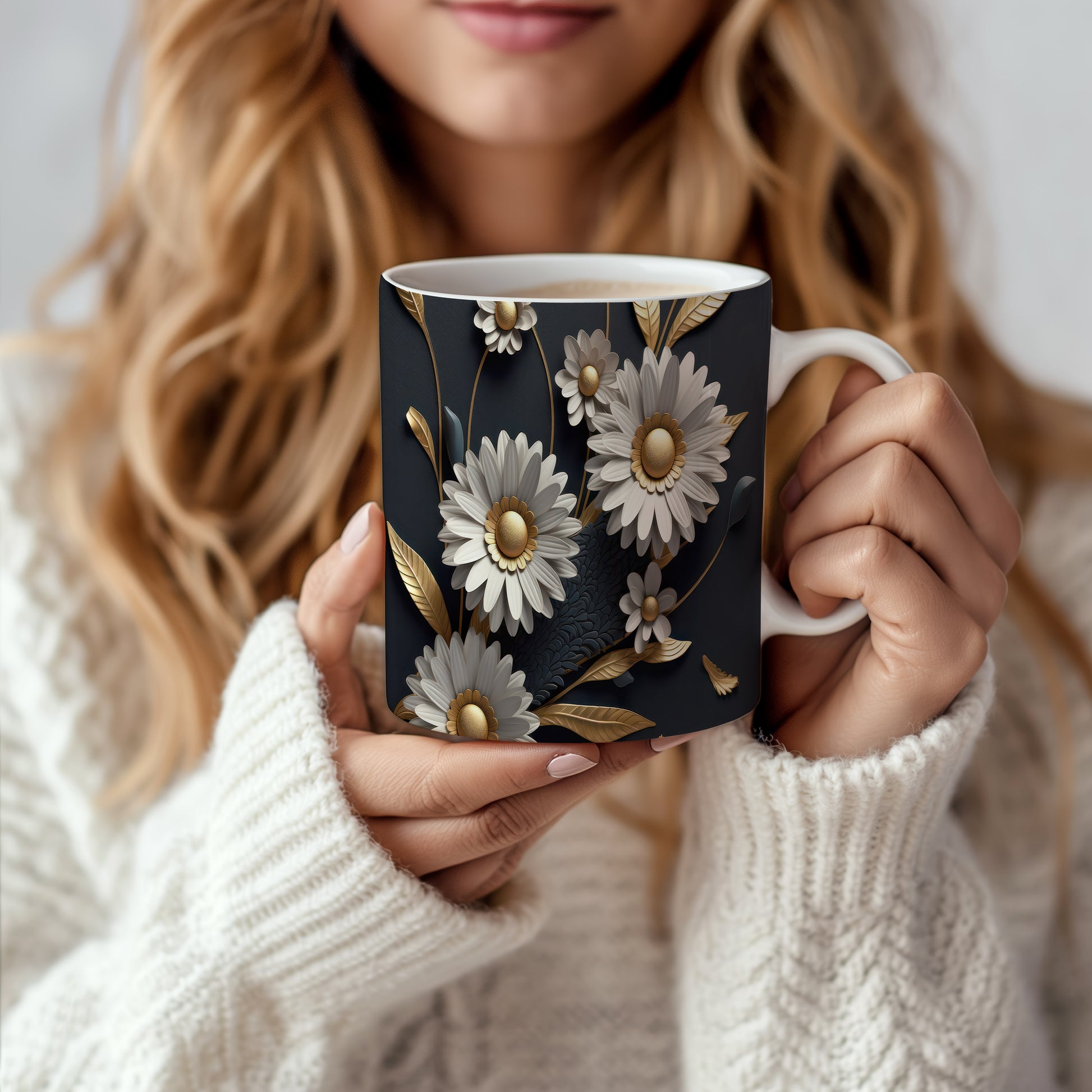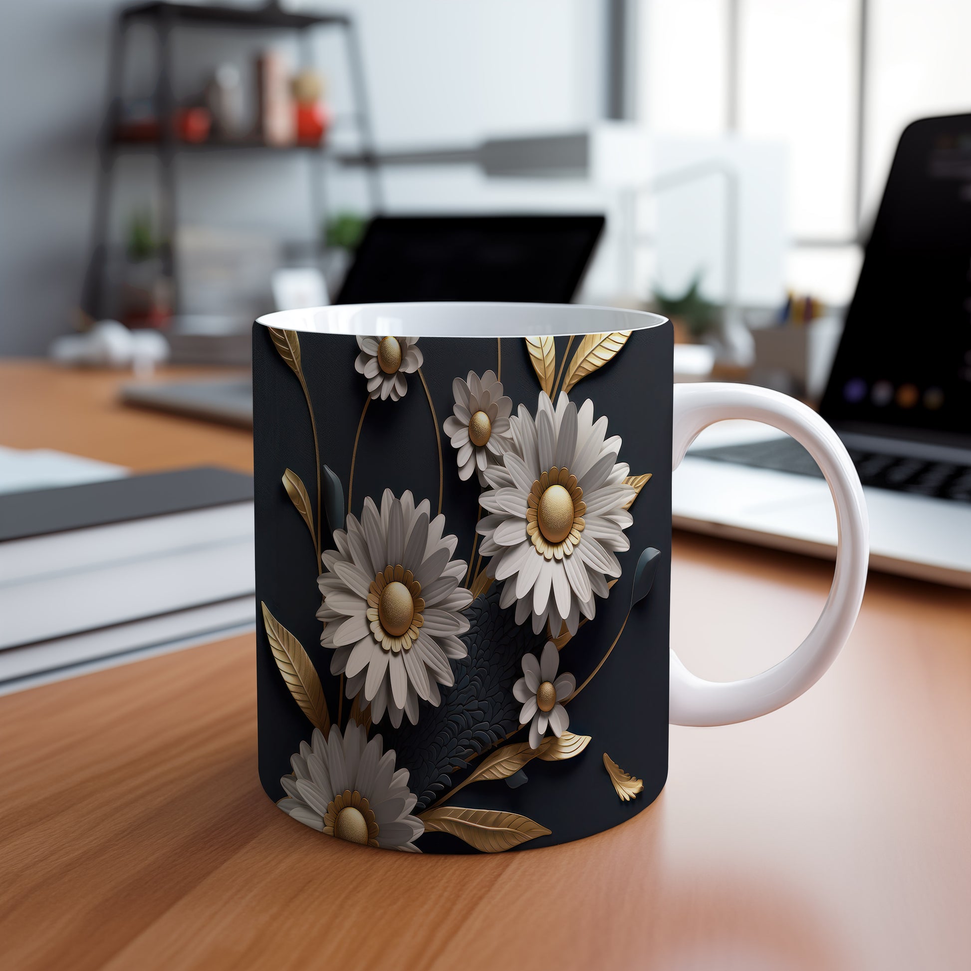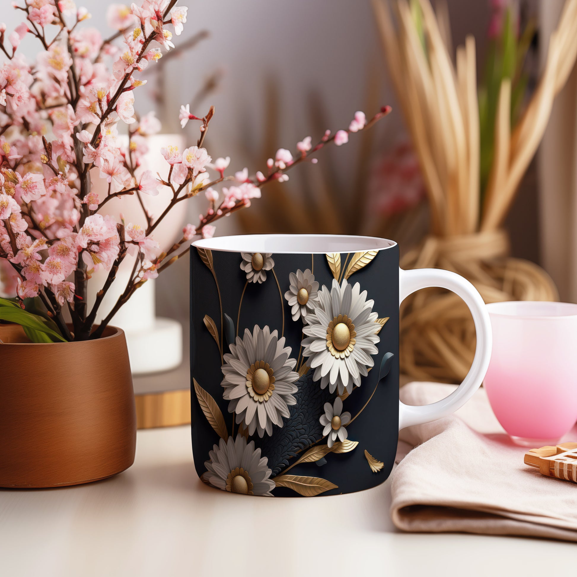 Hrnek s květinovým motivem v 3D efektu