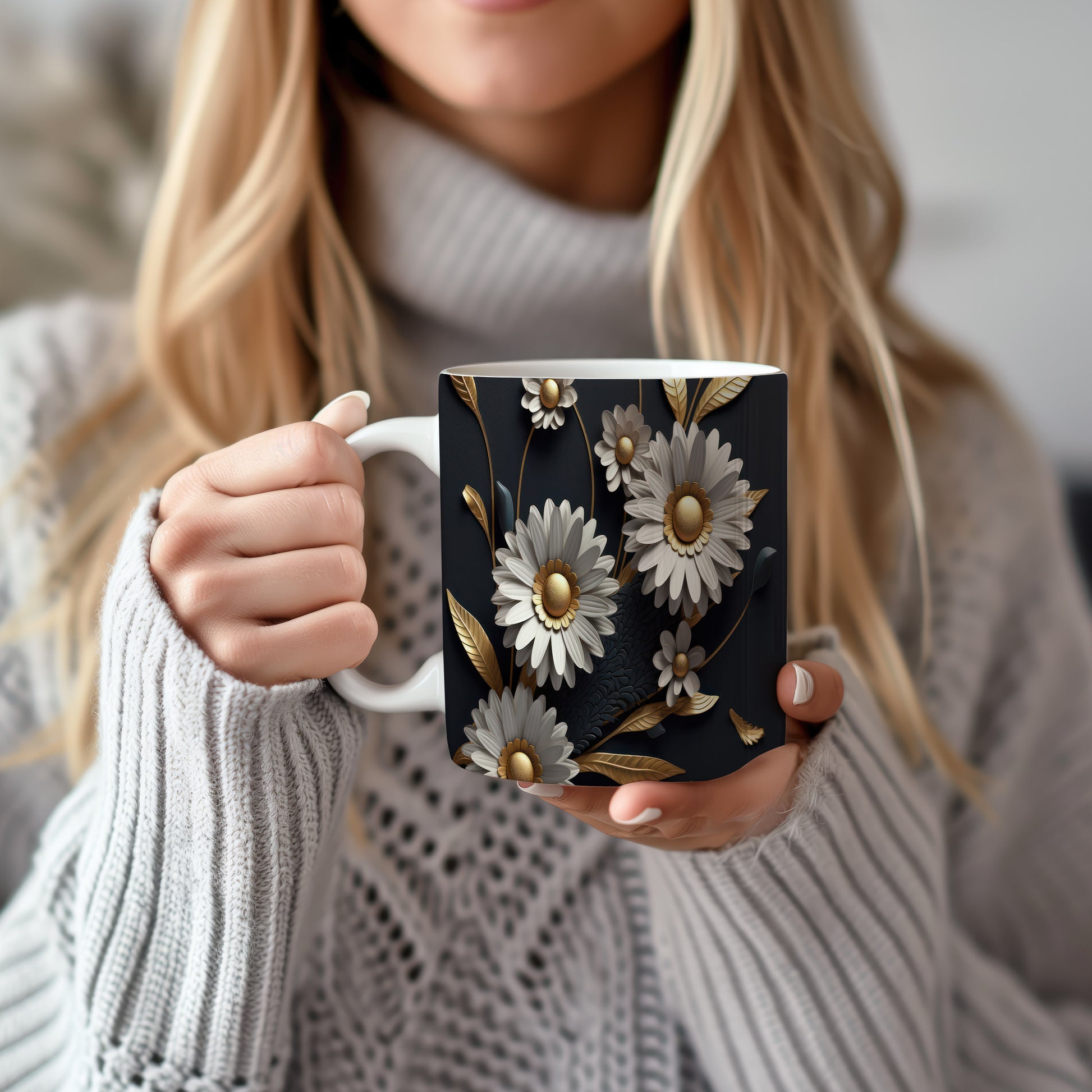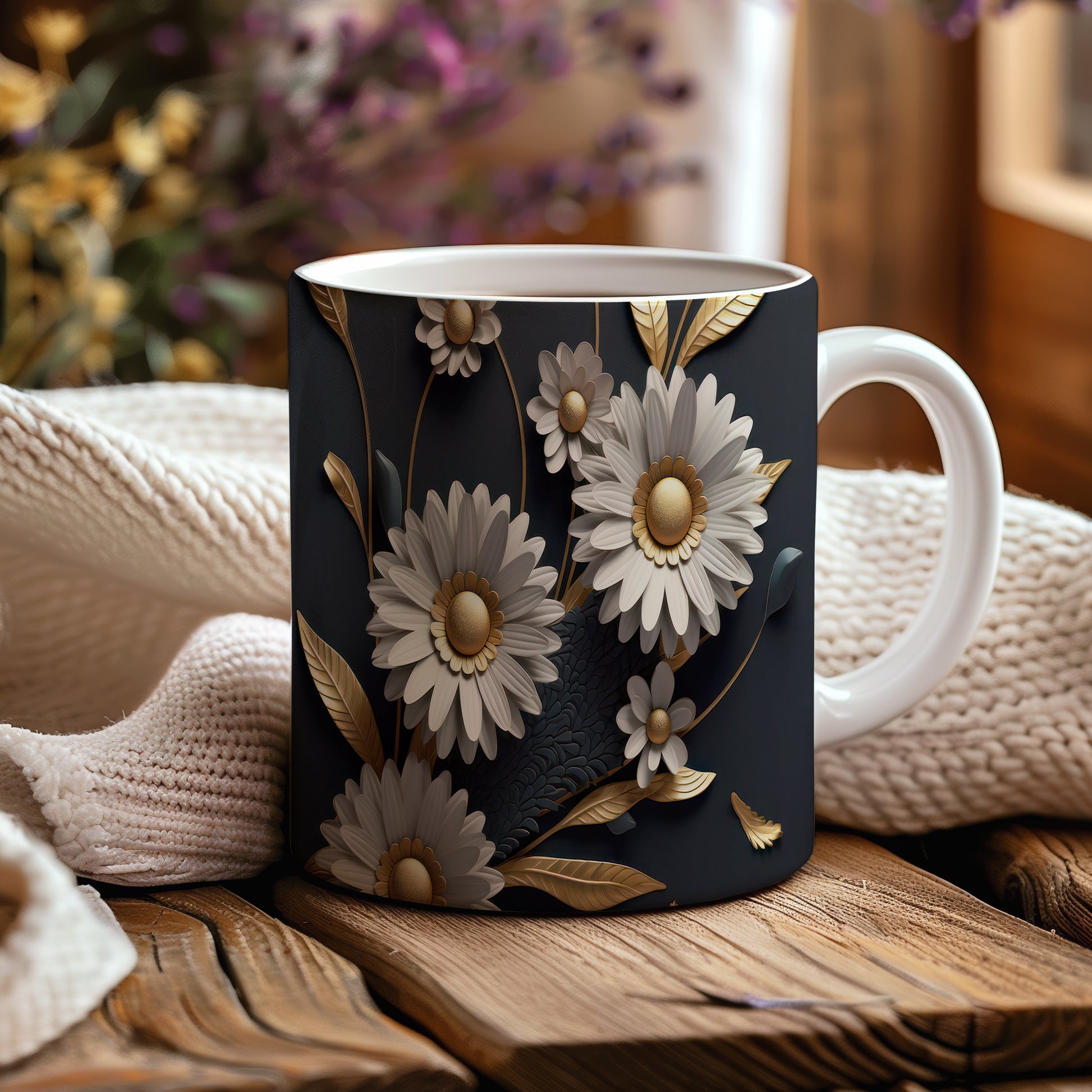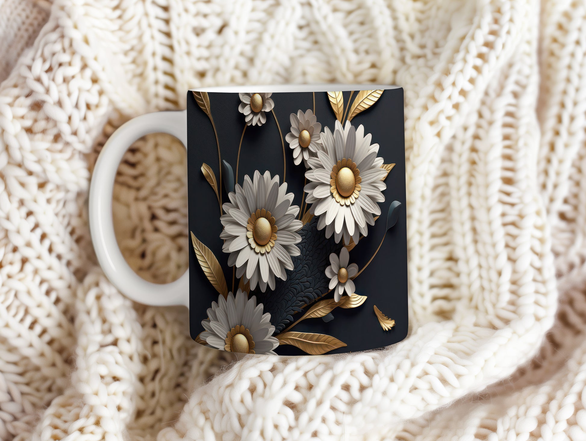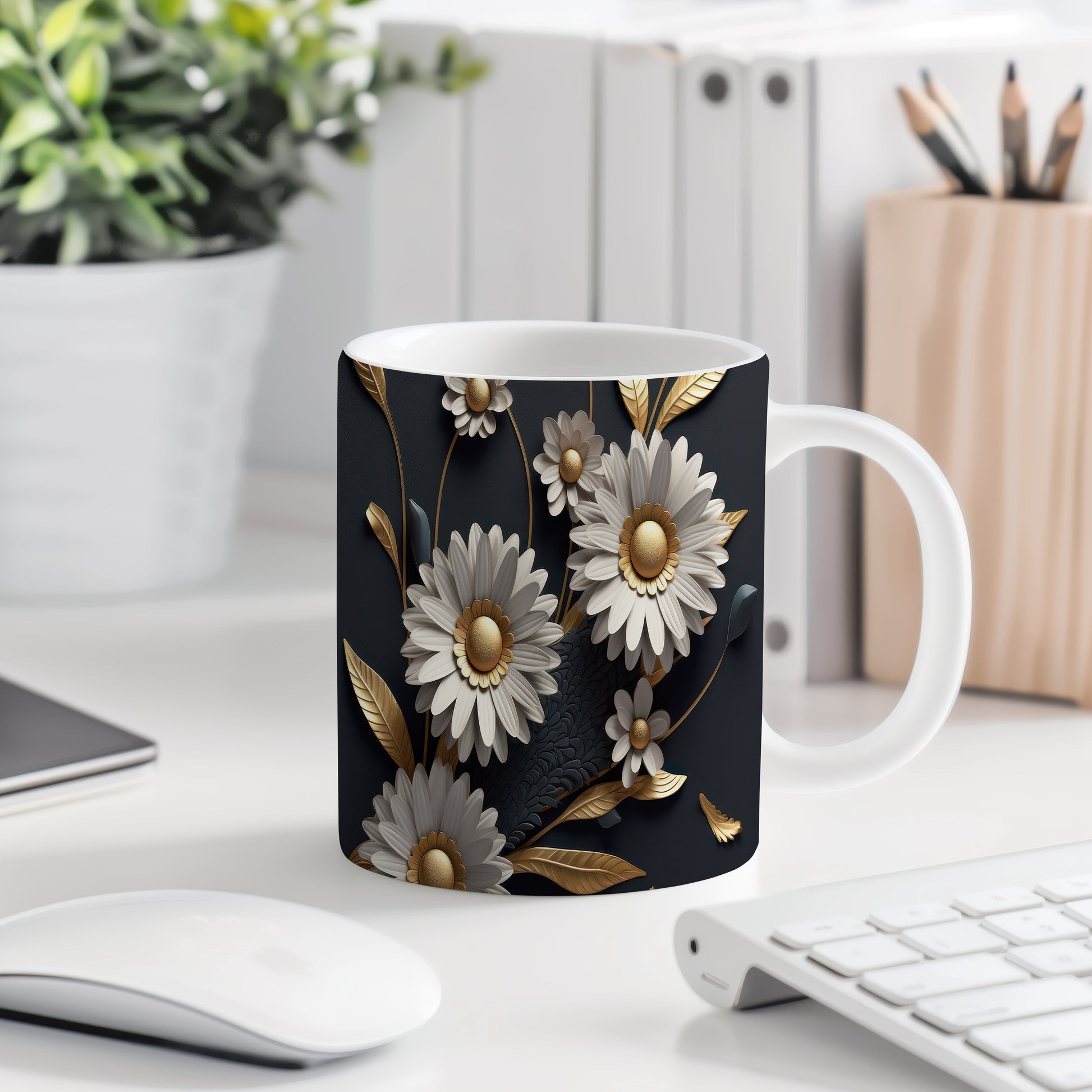 Hrnek s květinovým motivem v 3D efektu