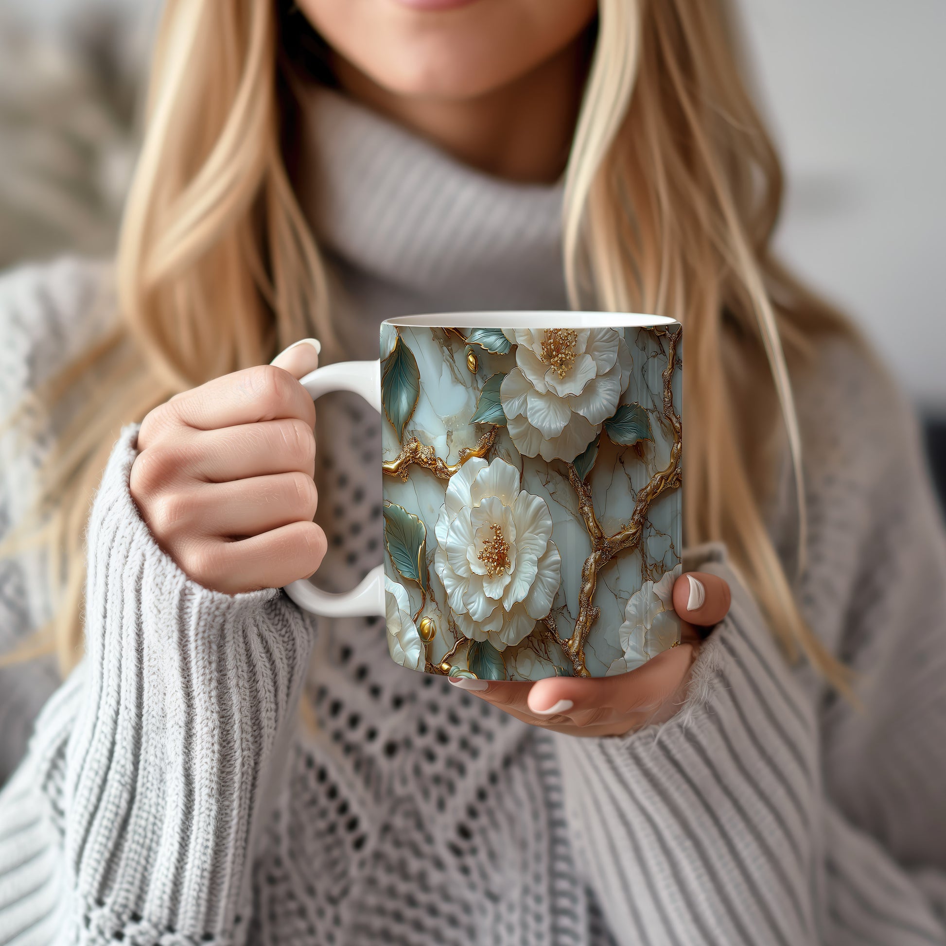 Tento hrnek s elegantním květinovým motivem v bílých tónech a zlatými akcenty je ideální pro milovníky stylového nádobí. Skvělý tip na dárek pro přátele nebo rodinu, kteří ocení krásu a jemnost. Materiál: keramika. Objem: 330 ml. Vhodné do myčky i mikrovlnky. Používání tohoto hrnku přináší radost z každého doušku oblíbeného nápoje.