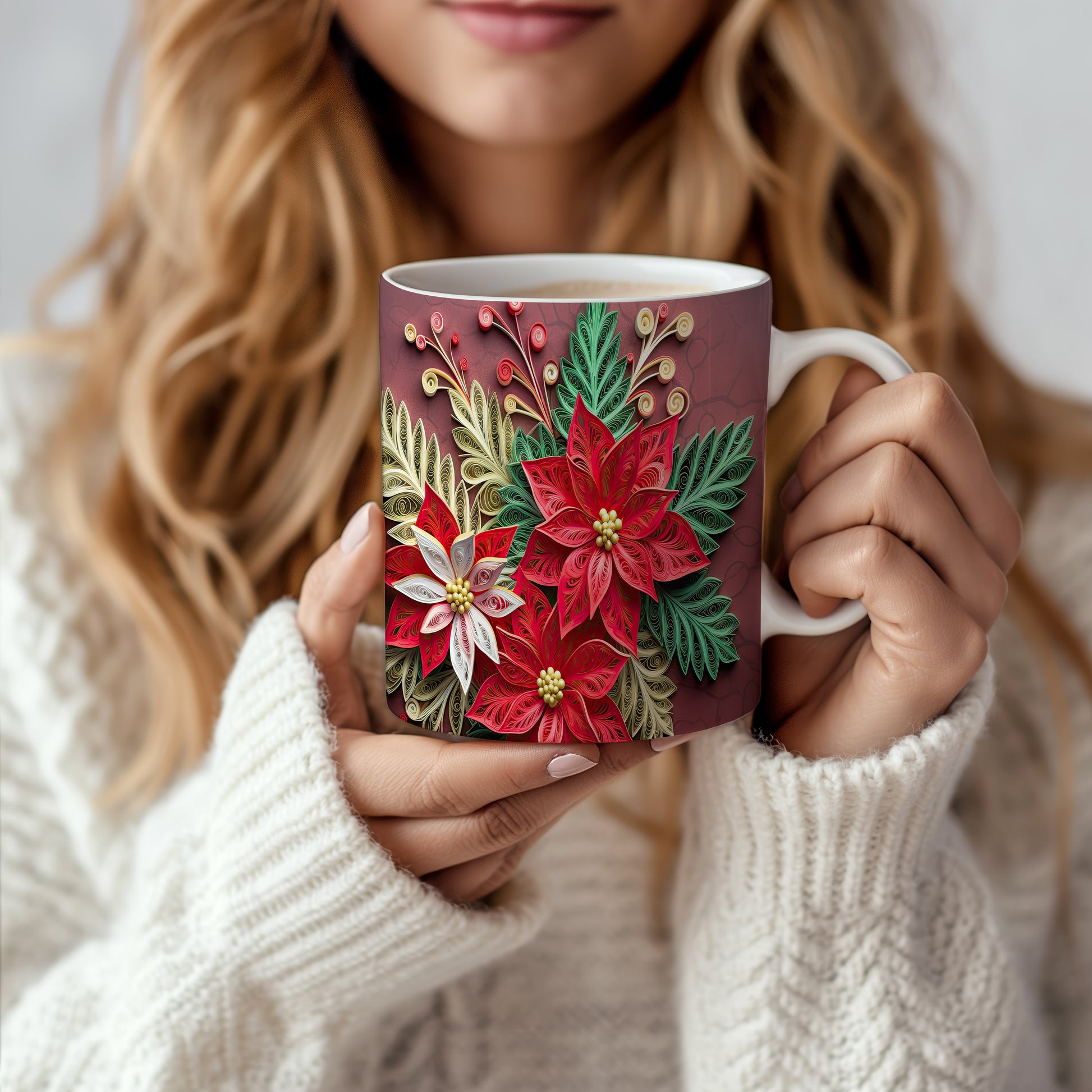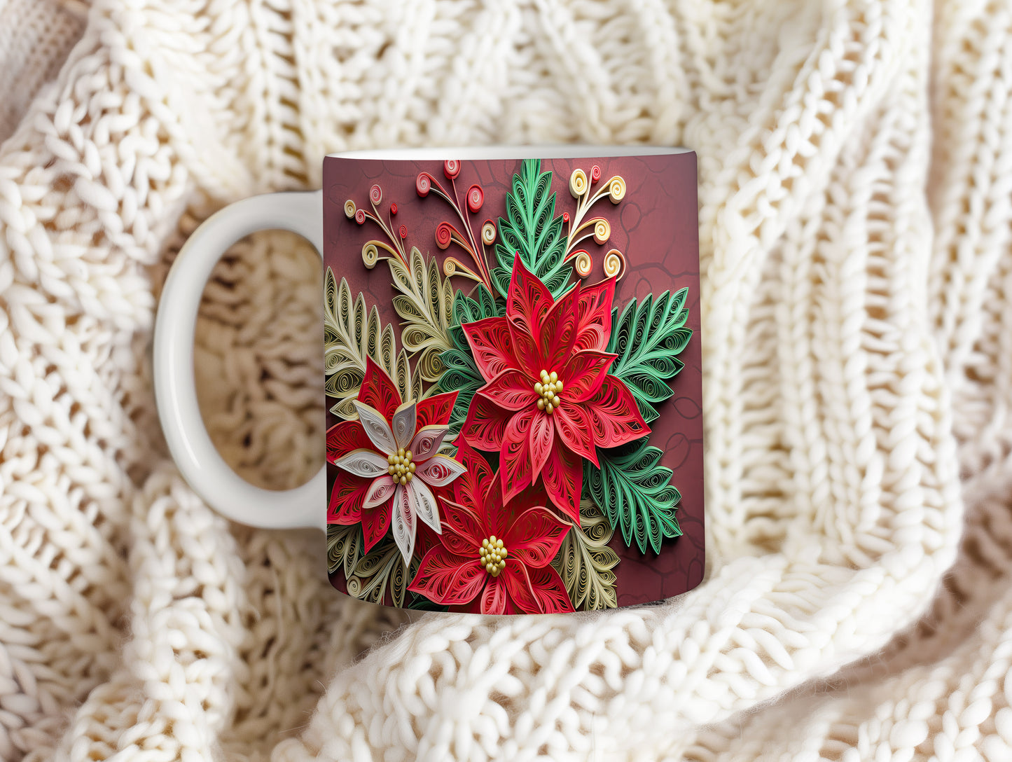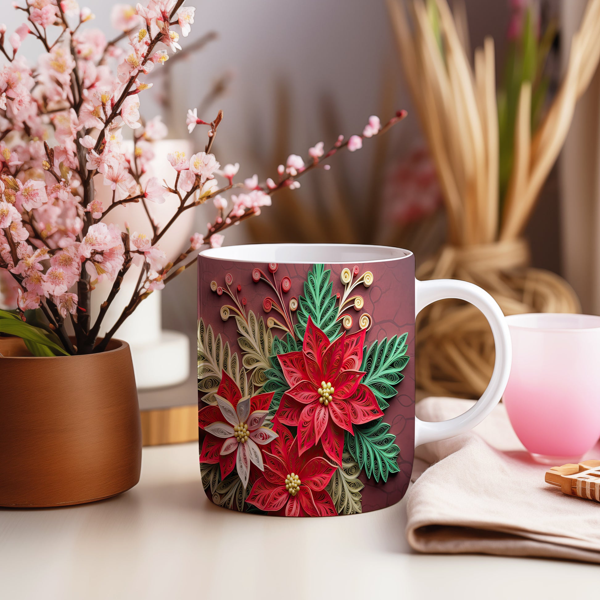 Hrnek s květinovým motivem v červených tónech – malířským vzhledem