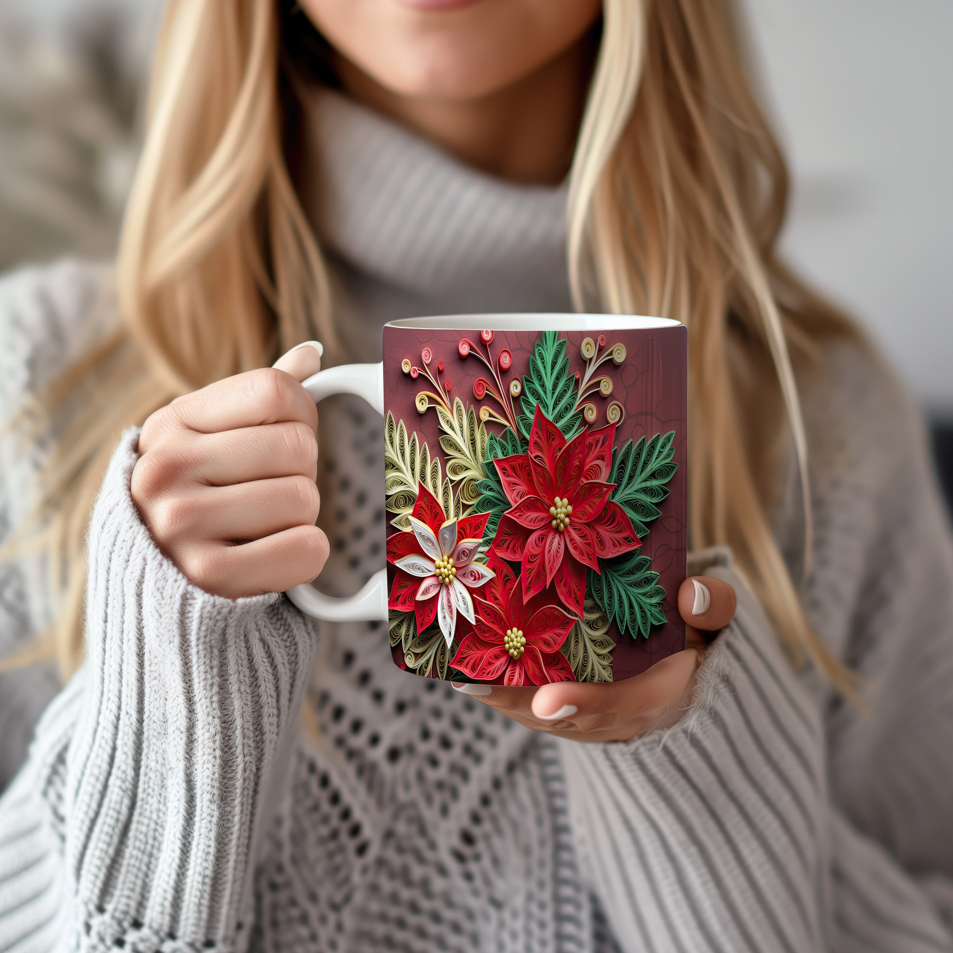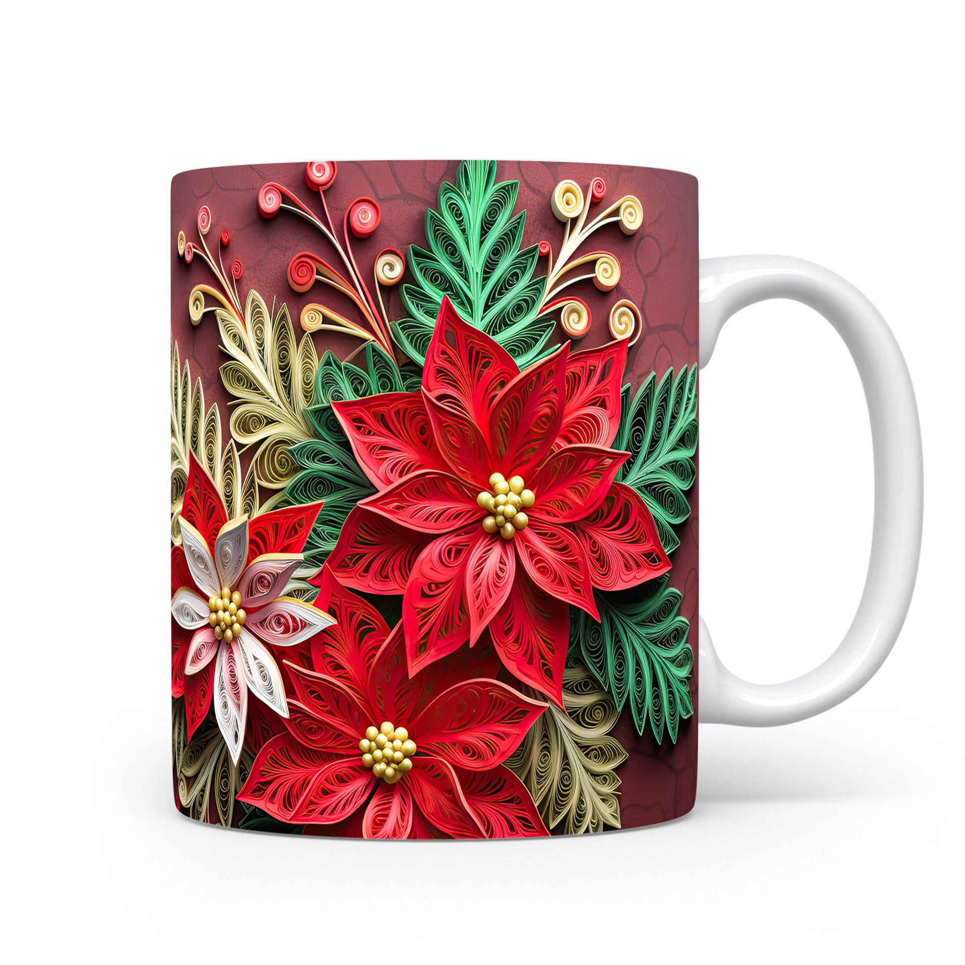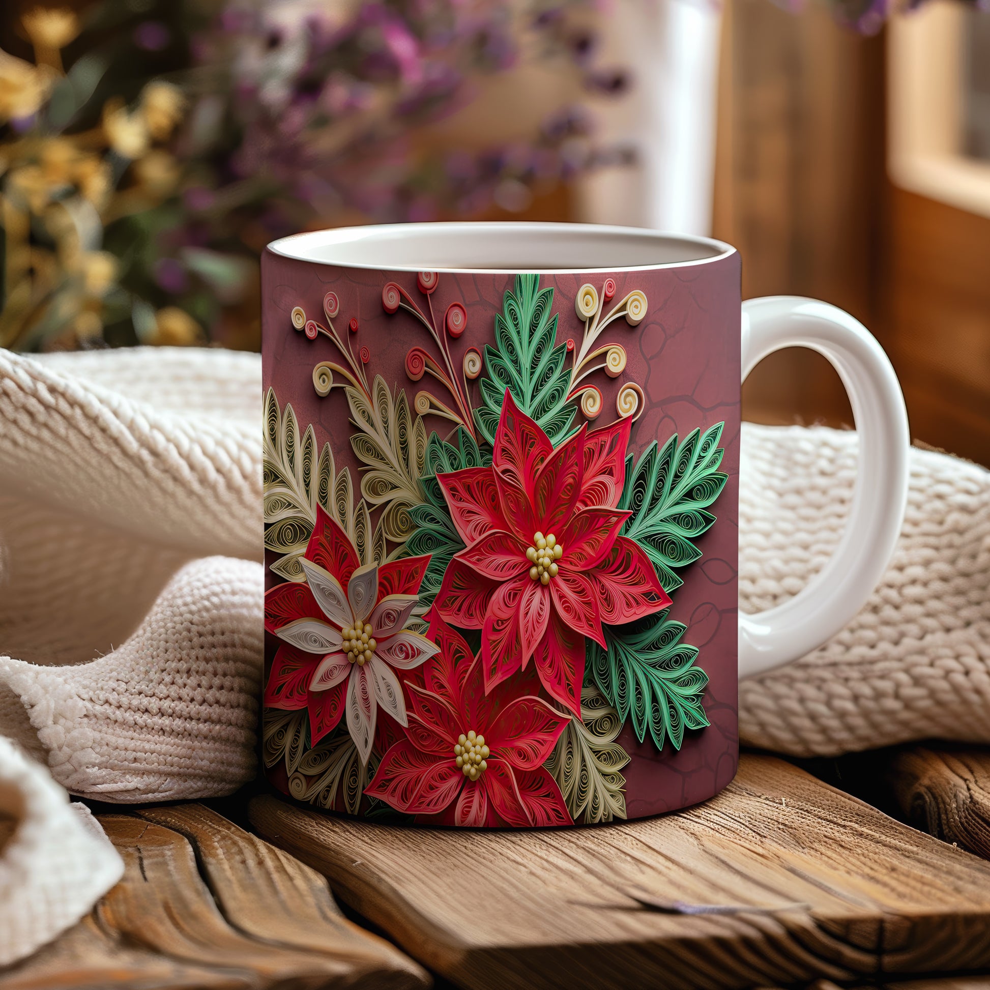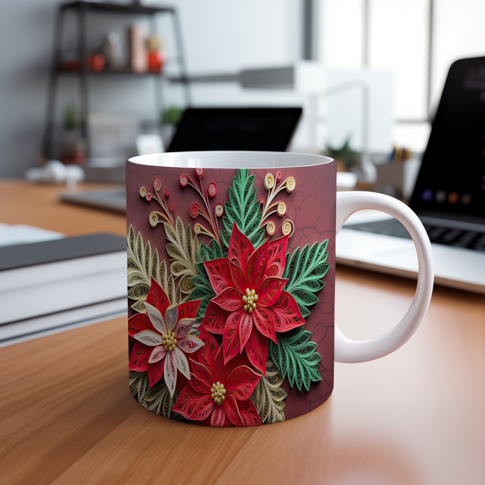 Hrnek s květinovým motivem v červených tónech – malířským vzhledem