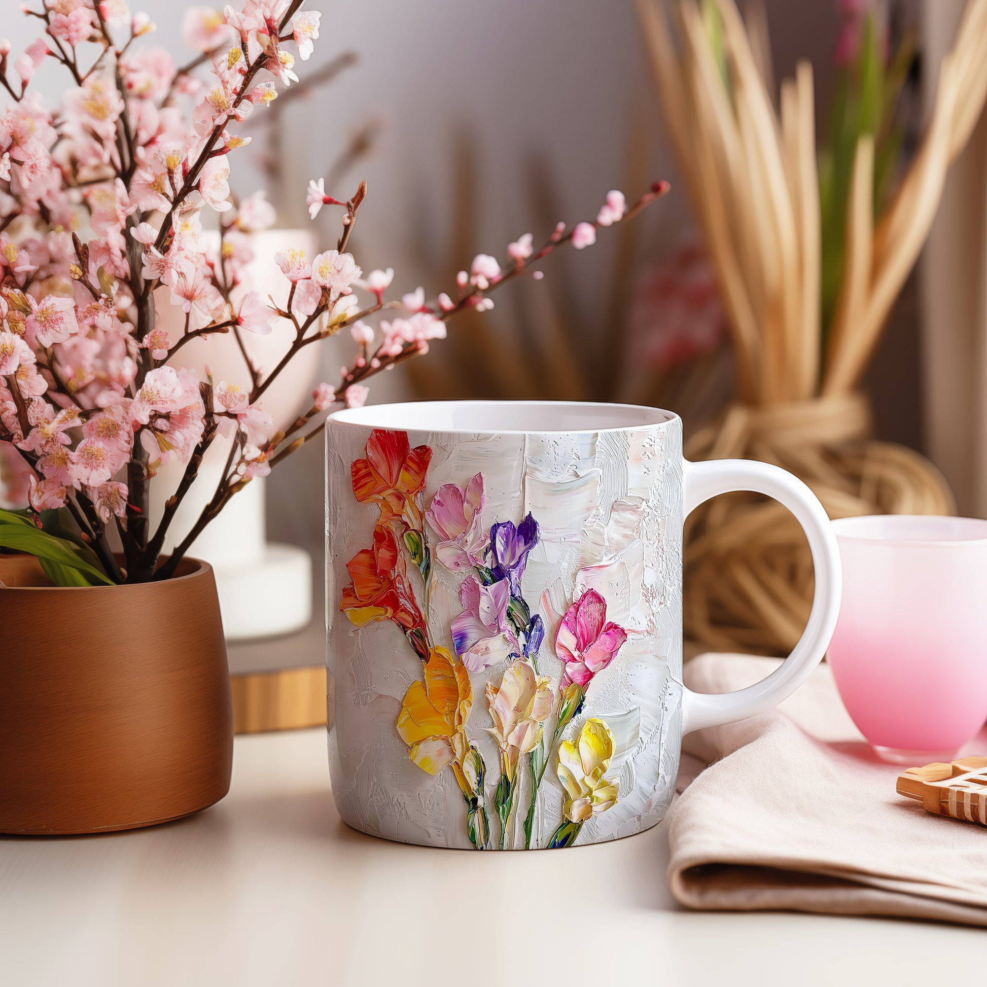 Tento keramický hrnek s květinovým motivem v červených tónech přináší do vašeho domova kousek přírody. Je ideální pro milovníky květin a přírodních vzorů, skvělý tip na dárek pro blízké. Materiál: keramika. Objem: 330 ml. Vhodné do myčky i mikrovlnky. Díky snadné údržbě si můžete užívat svůj oblíbený nápoj bez starostí.