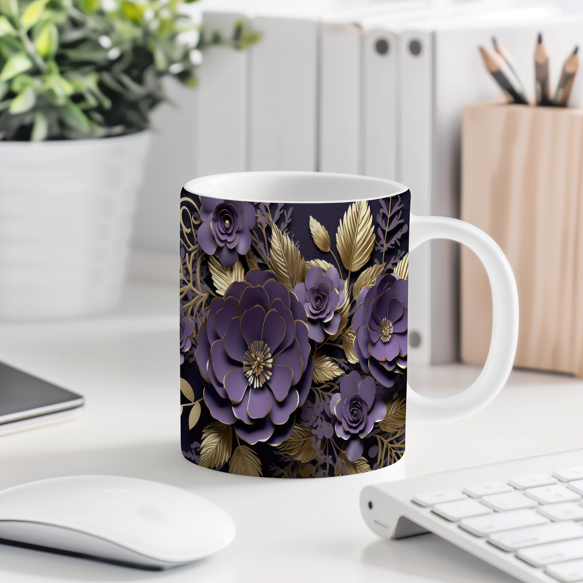 Elegantní hrnek s bohatým květinovým motivem v odstínech fialové. Tento stylový kousek je ideální pro každodenní používání nebo jako dárek pro milovníky květin. Materiál: keramika. Objem: 330 ml. Vhodné do myčky i mikrovlnky. Díky svému designu přináší do vašeho domova příjemnou atmosféru.