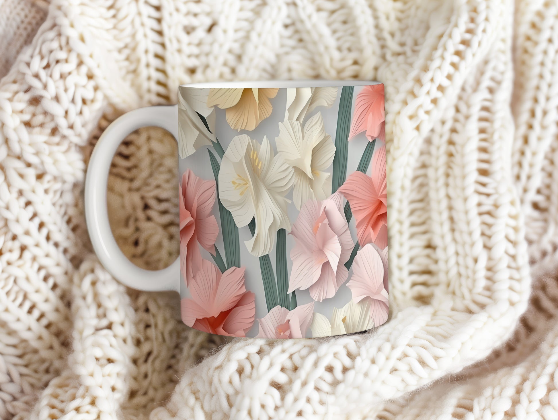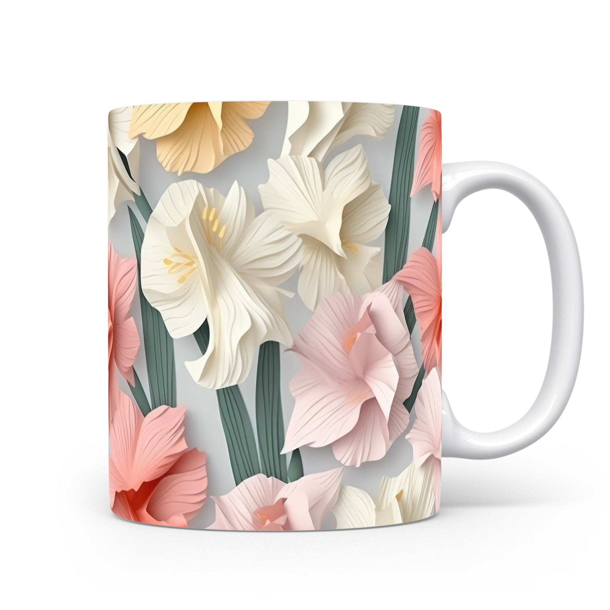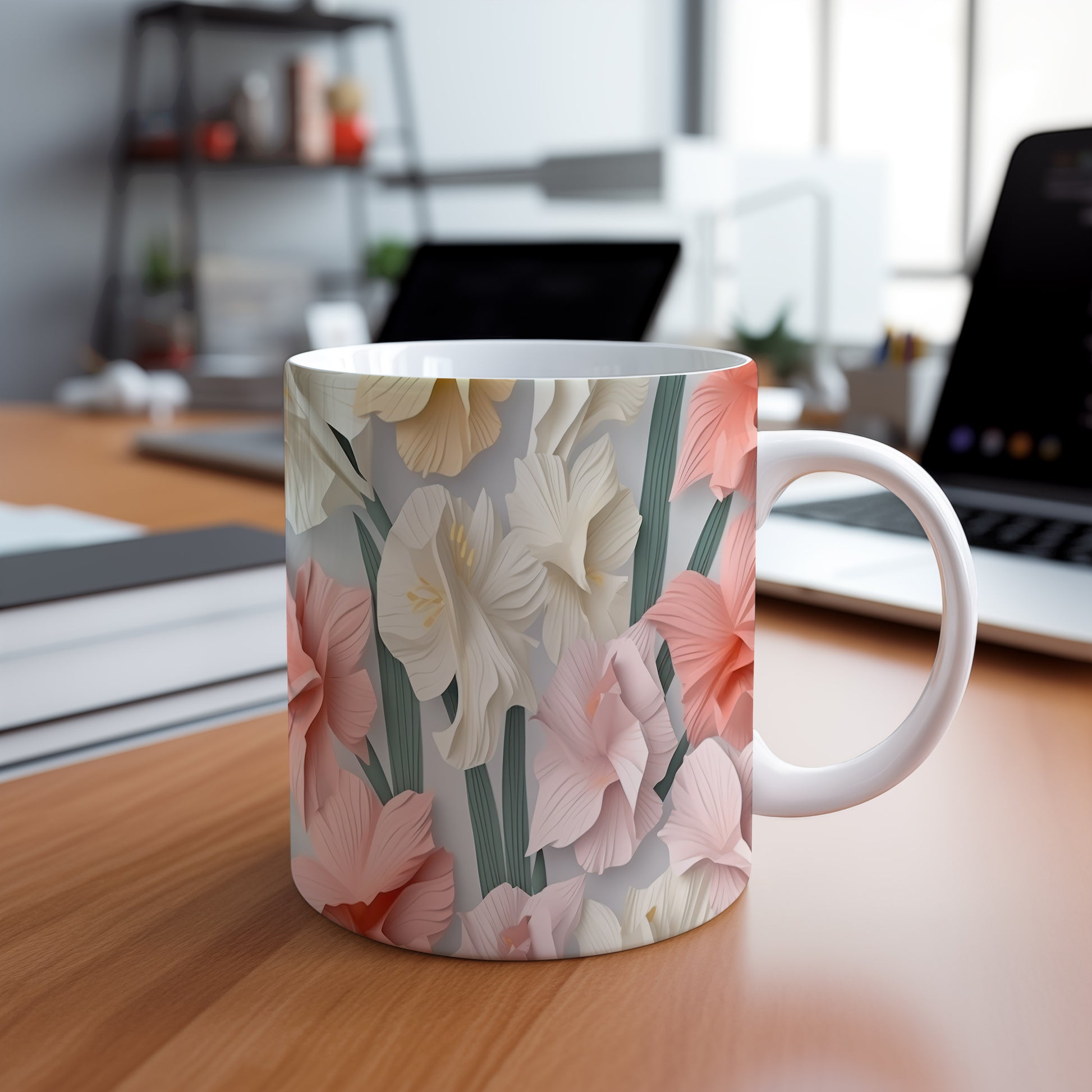 Hrnek s květinovým motivem v jemných barvách – 3D efektem