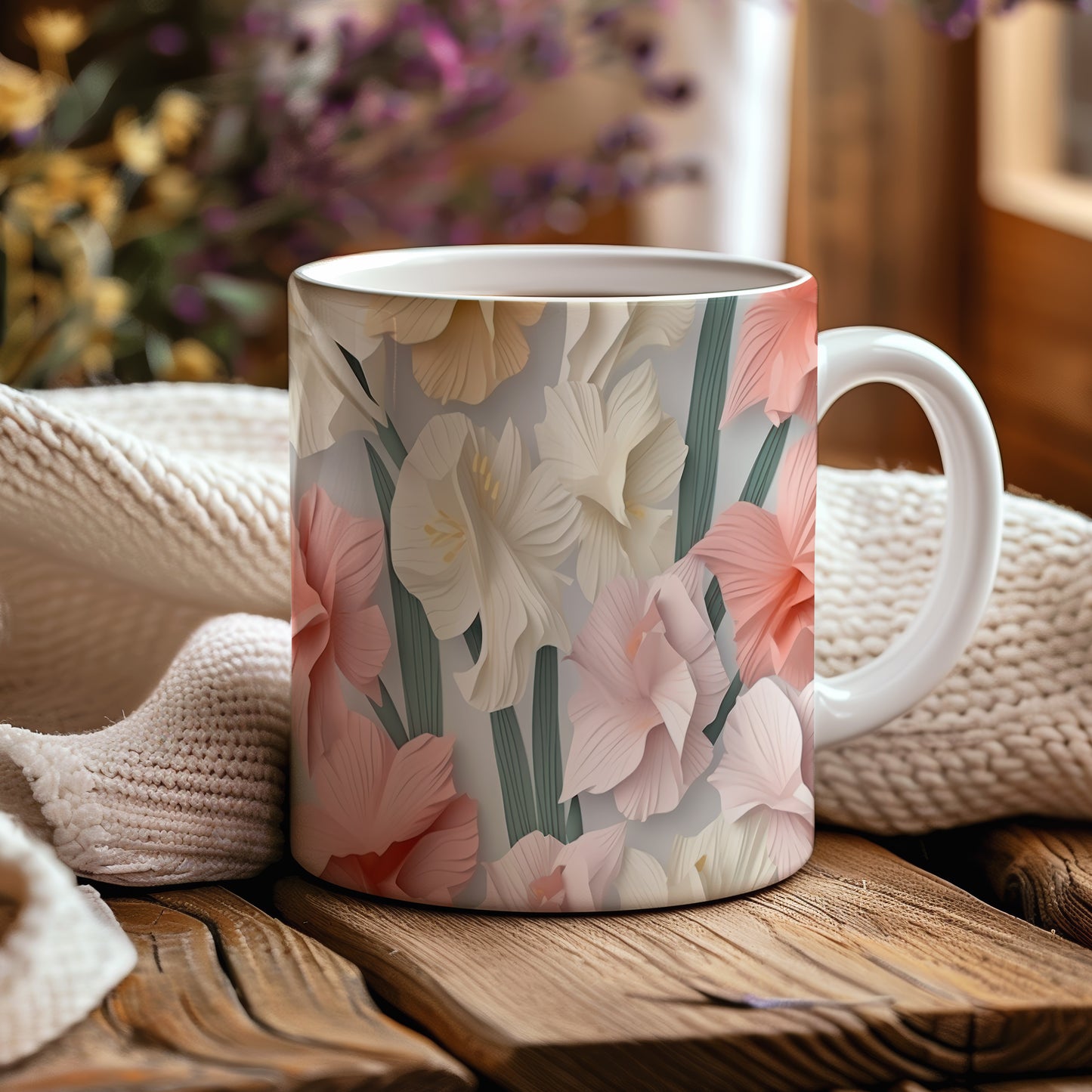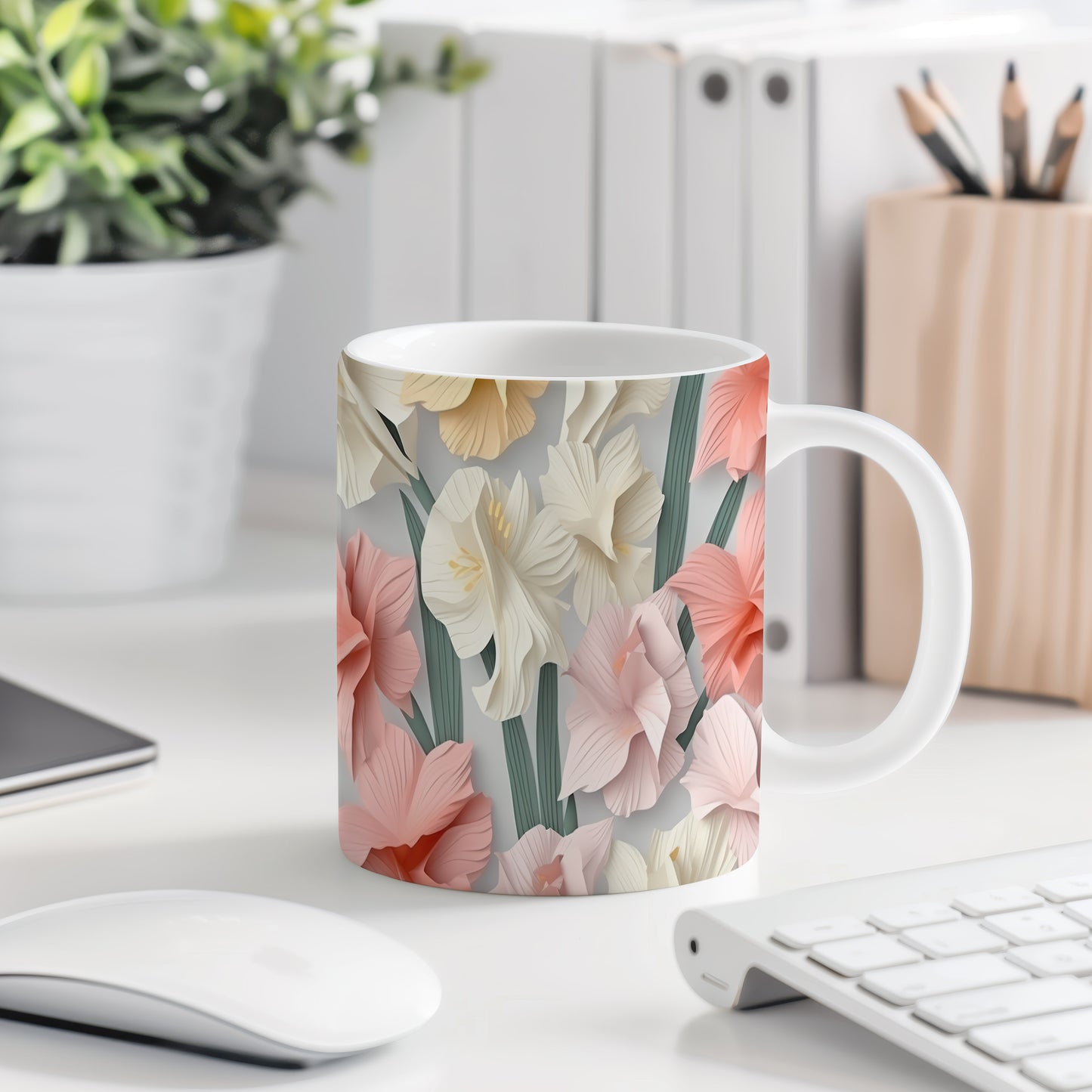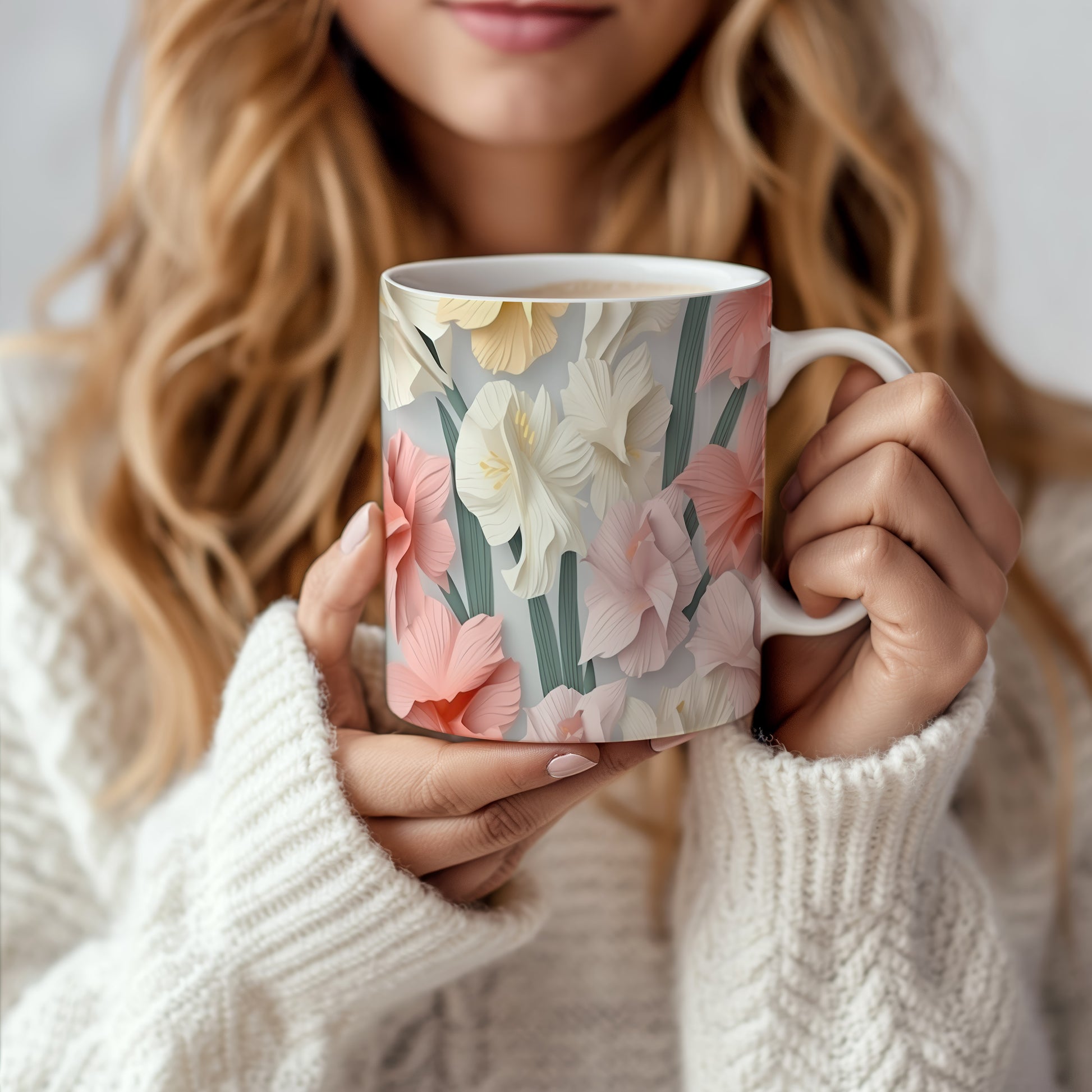 Hrnek s květinovým motivem v jemných barvách – 3D efektem