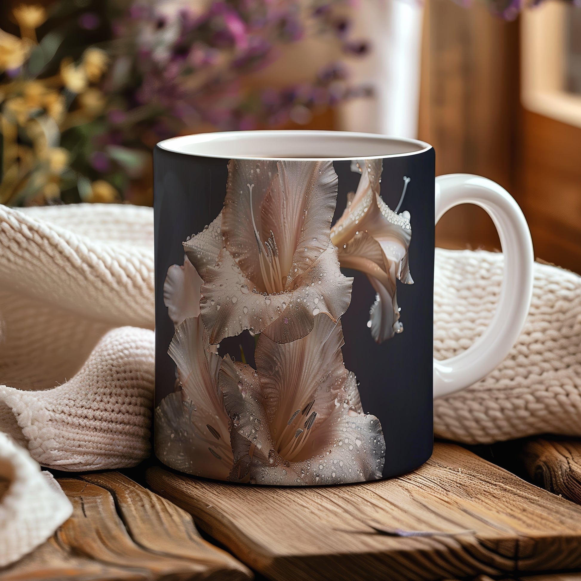 Hrnek s květinovým motivem v jemných barvách – černým akcentem