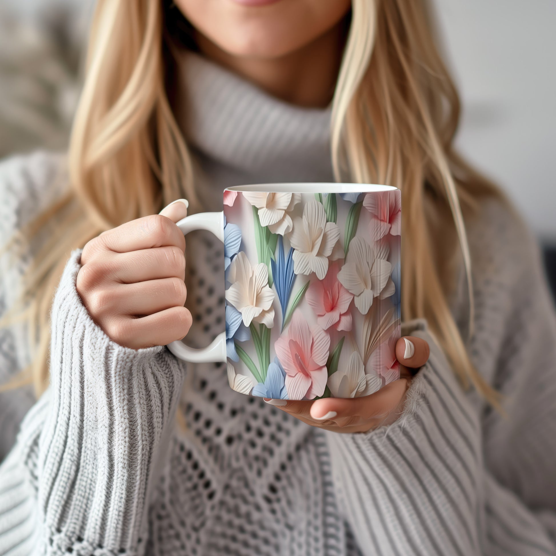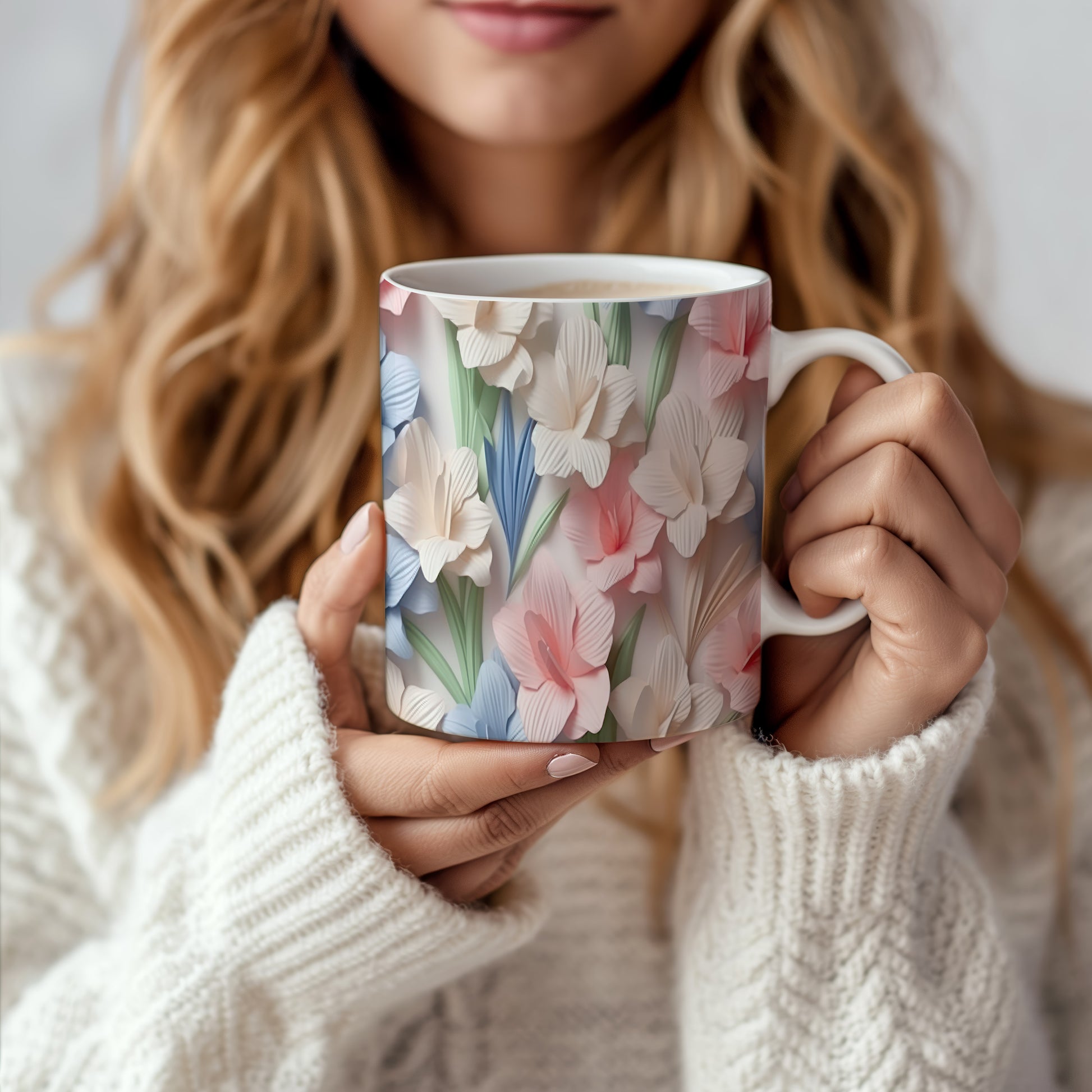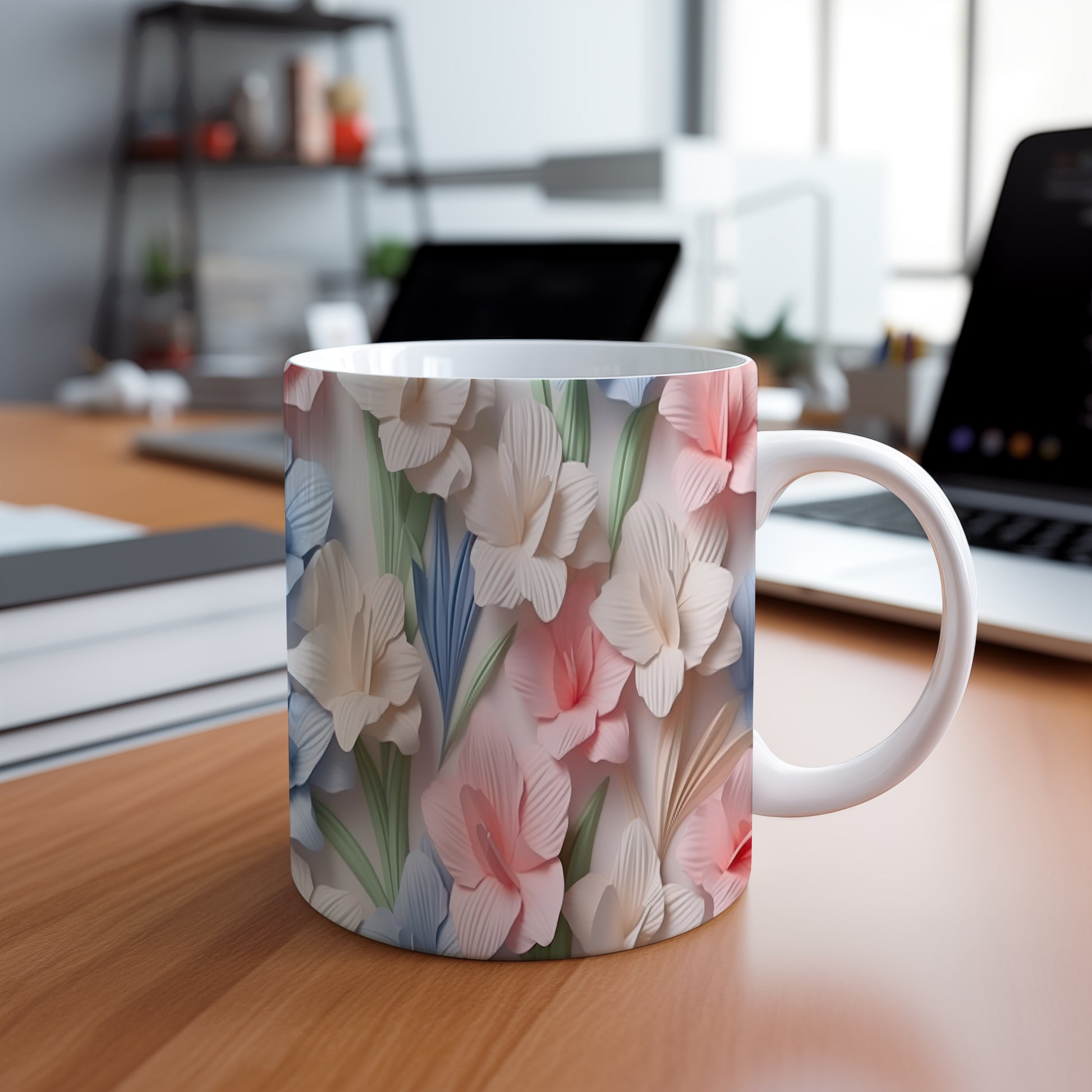Hrnek s květinovým motivem v jemných barvách – originálním motivem