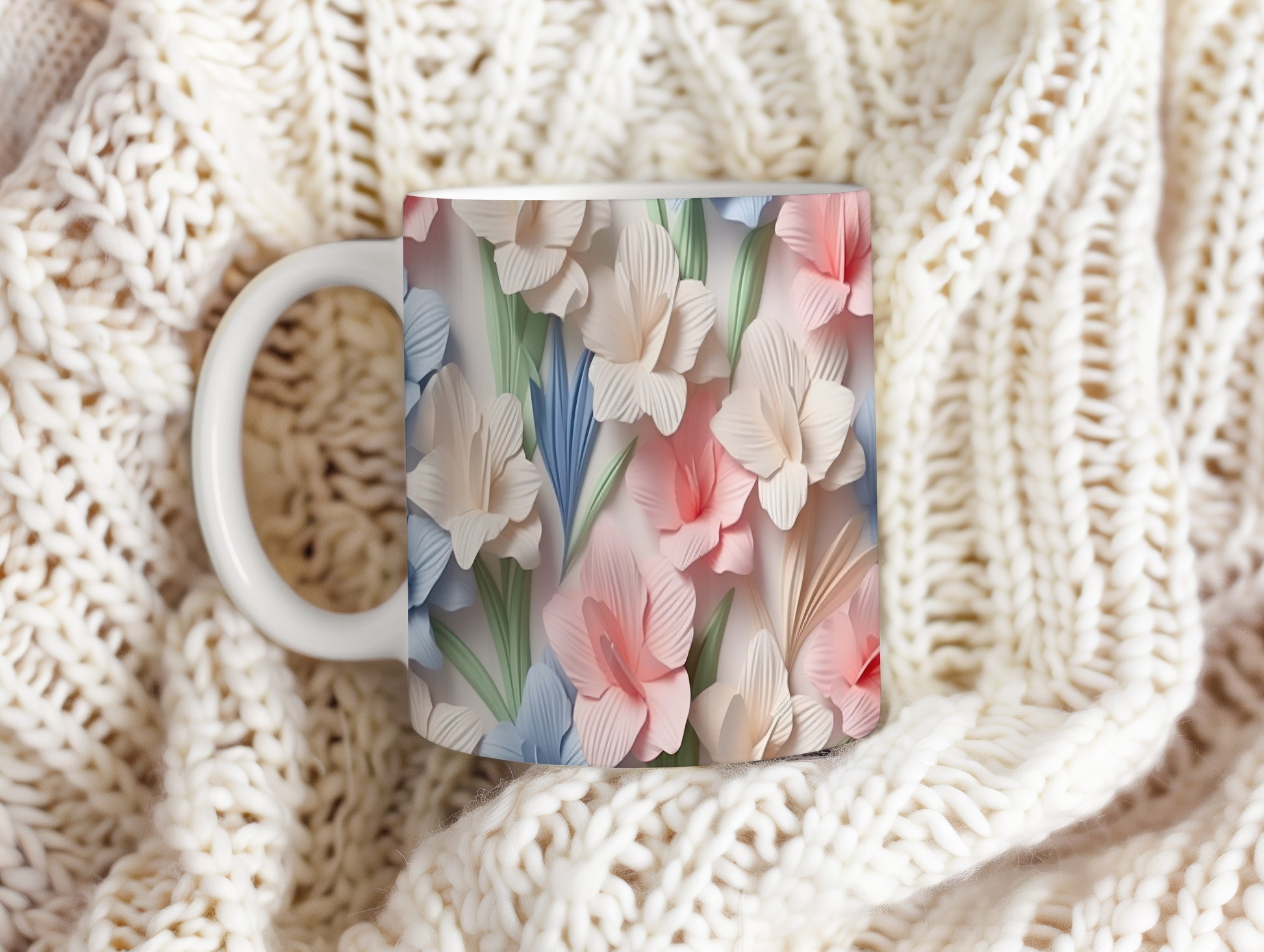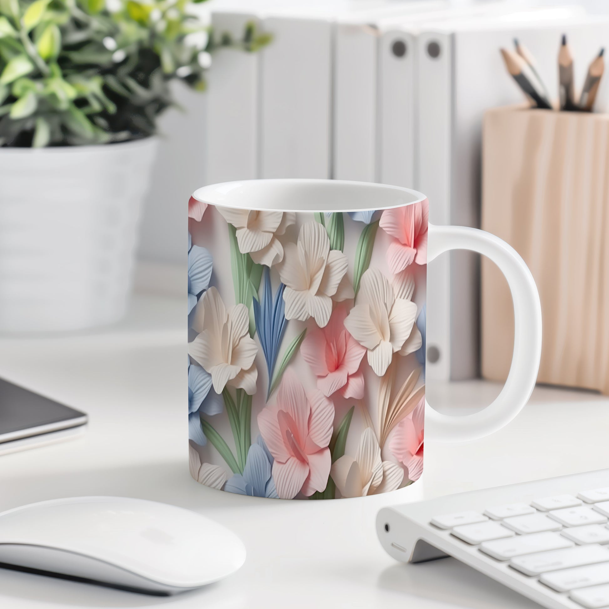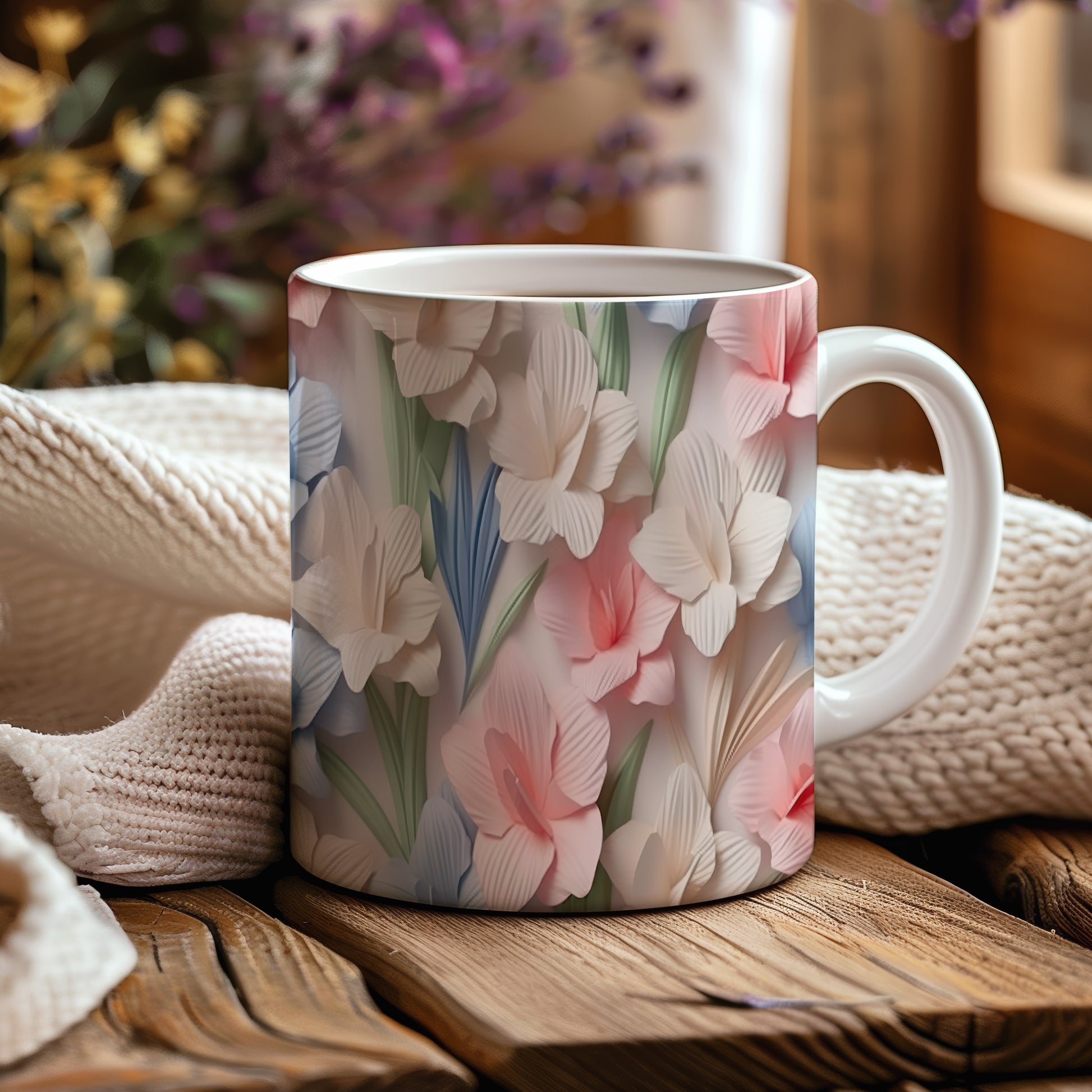 Hrnek s květinovým motivem v jemných barvách – originálním motivem