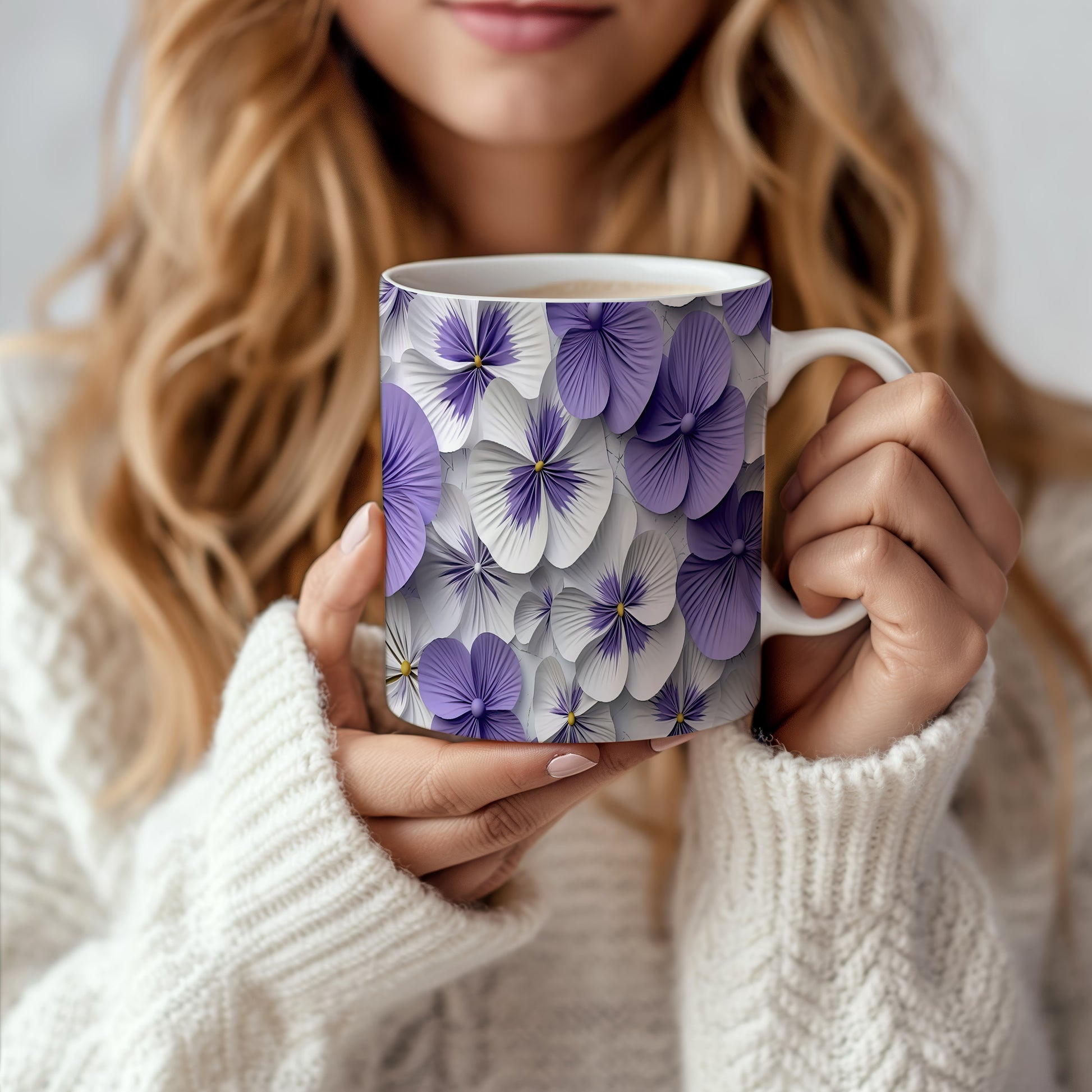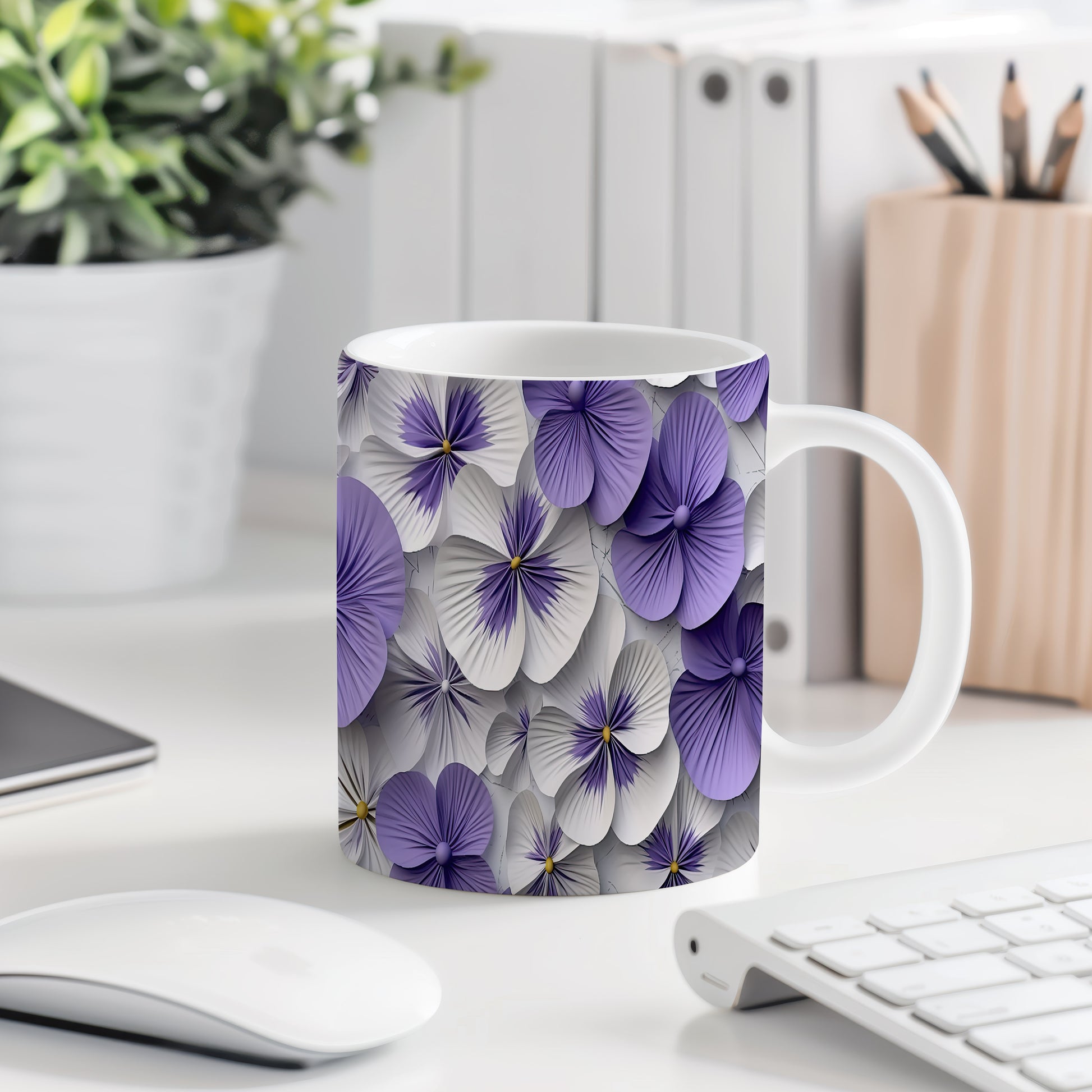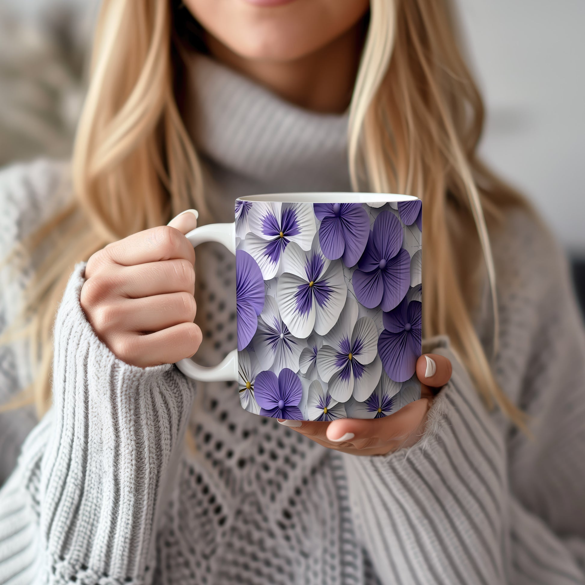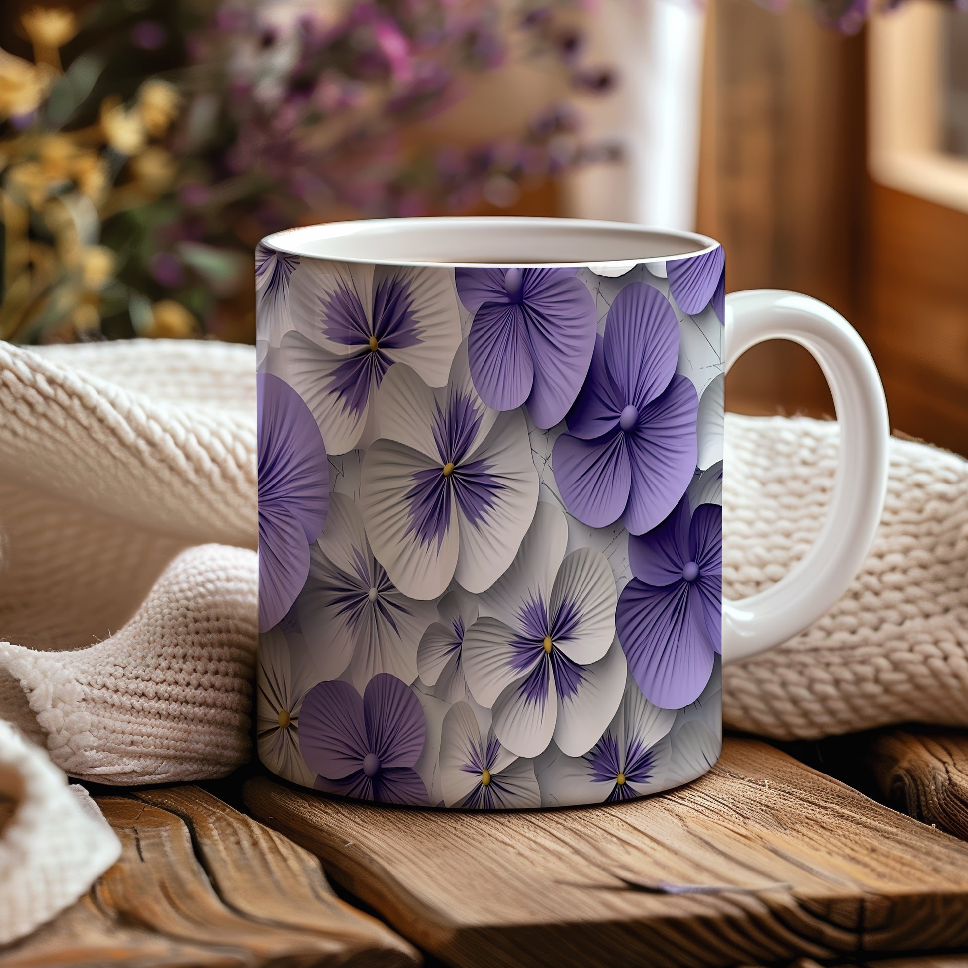 Stylový hrnek s květinovým motivem v bílých a fialových tónech. Tento elegantní kousek je ideální pro milovníky přírody a květin, skvěle se hodí jako dárek pro blízké. Materiál: keramika. Objem: 330 ml. Vhodné do myčky i mikrovlnky. Díky svému designu přináší do každodenního pití radost a pohodu.