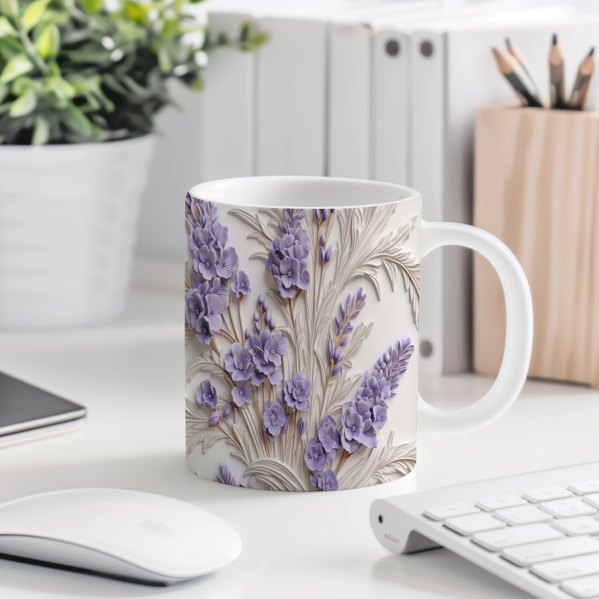 Tento elegantní hrnek s detailním květinovým vzorem v jemných fialových a bílých odstínech je skvělým doplňkem pro každého milovníka květin. Je ideální jako dárek pro přátele nebo rodinu, kteří ocení krásu a jemnost. Materiál: keramika. Objem: 330 ml. Vhodné do myčky i mikrovlnky. Užijte si svůj oblíbený nápoj v tomto stylovém hrnku, který přináší radost do každého dne.
