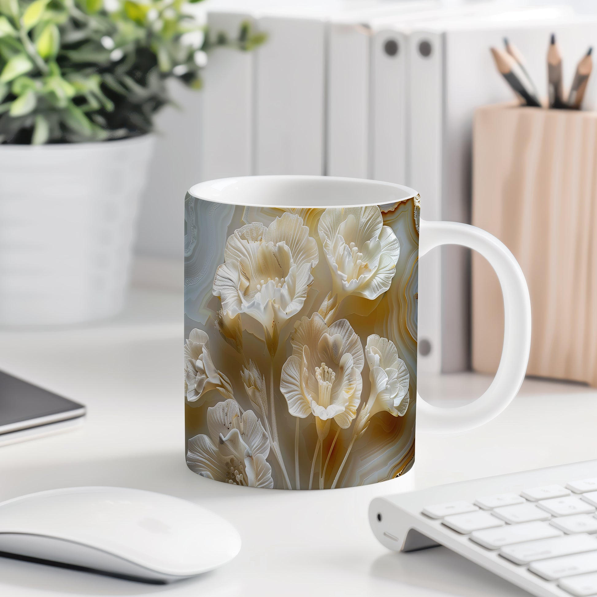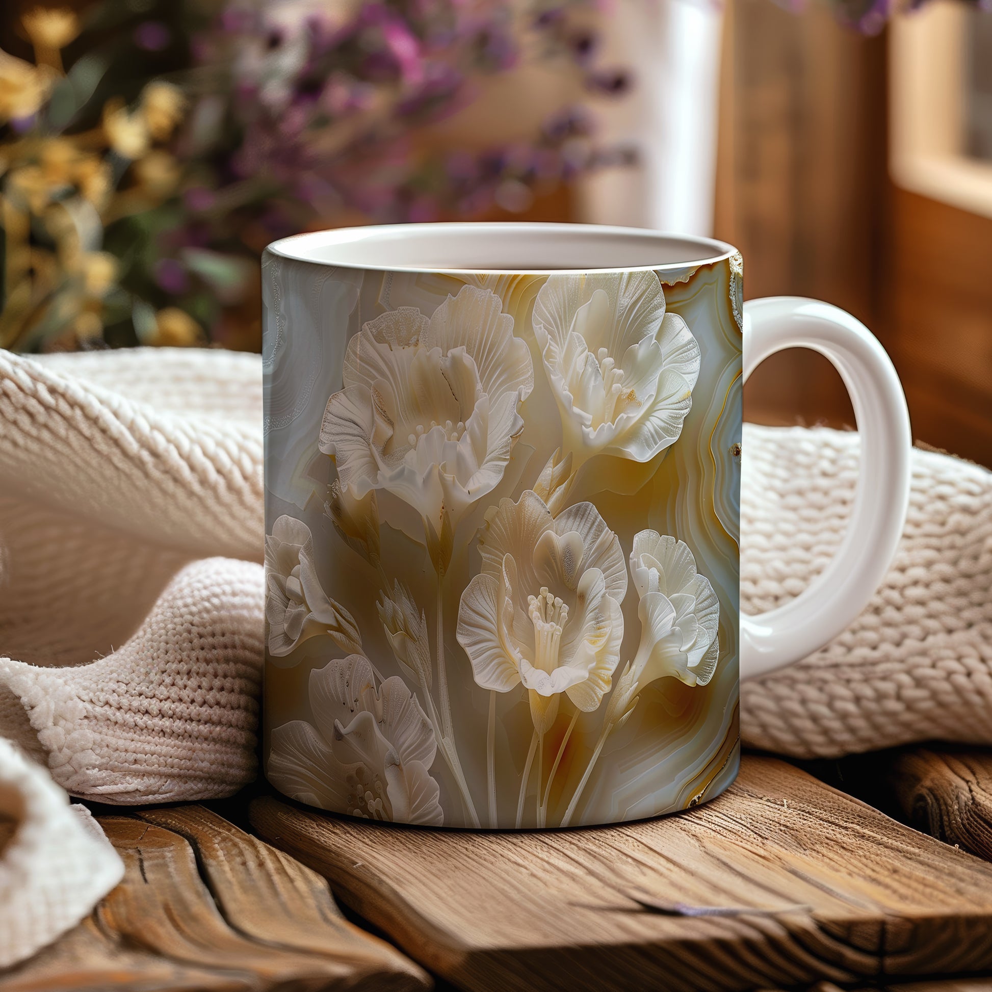 Tento elegantní hrnek s květinovým motivem v jemných odstínech bílé a béžové je ideální volbou pro milovníky přírody. Skvěle se hodí jako dárek pro přátele nebo rodinu, kteří ocení krásu a styl. Materiál: keramika. Objem: 330 ml. Vhodné do myčky i mikrovlnky. Díky svému designu přináší do každodenního pití špetku elegance a pohody.