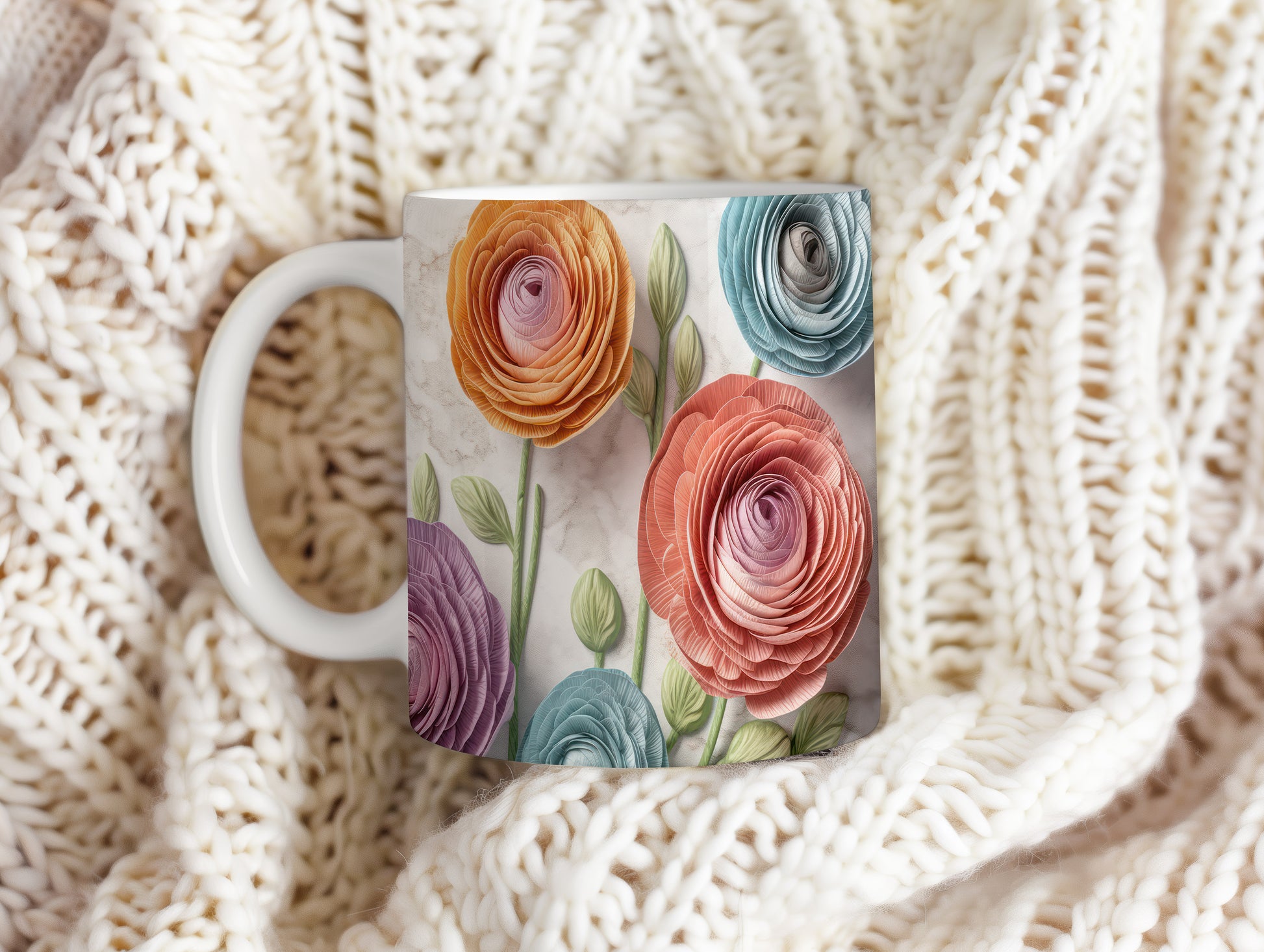 Hrnek s květinovým motivem v jemných pastelových barvách