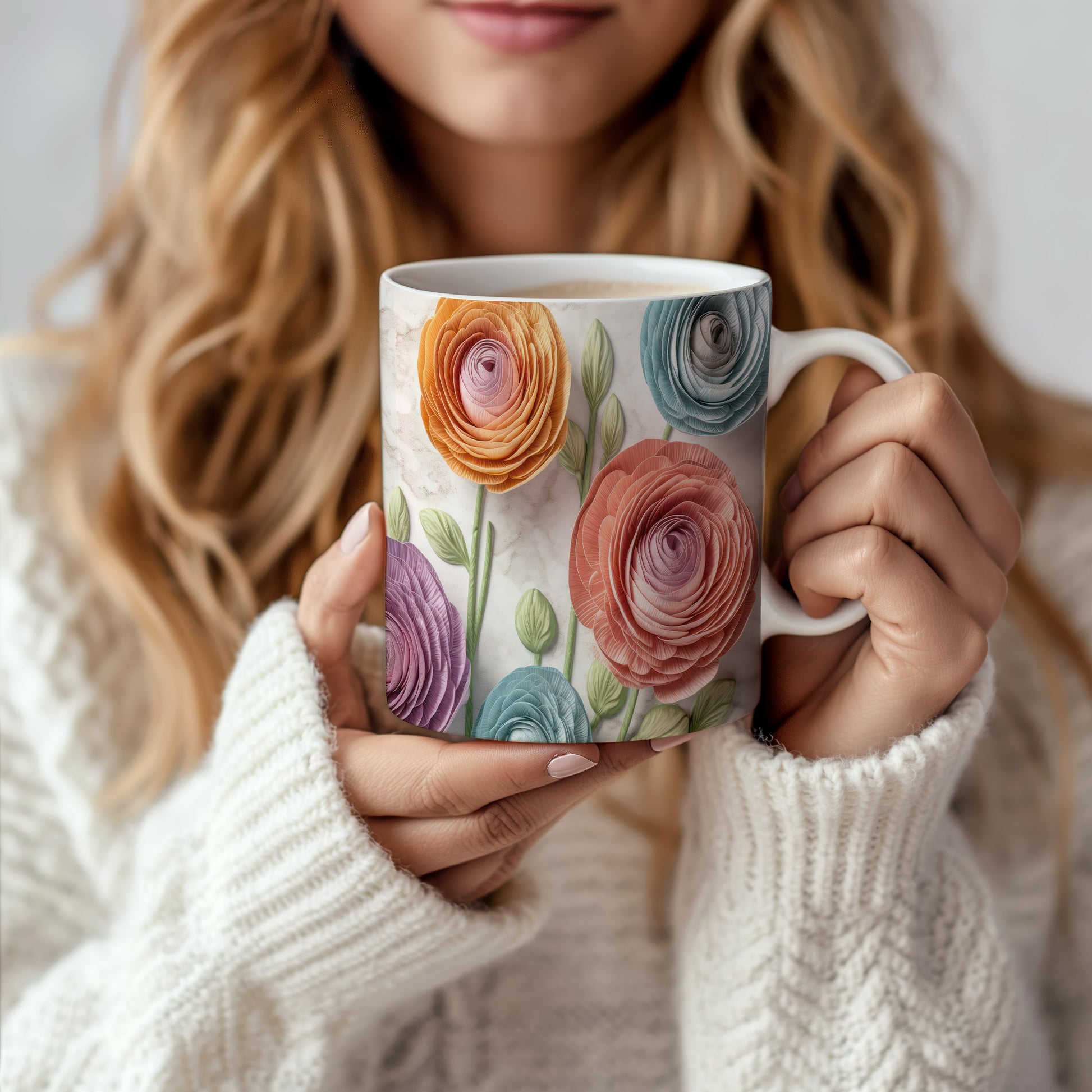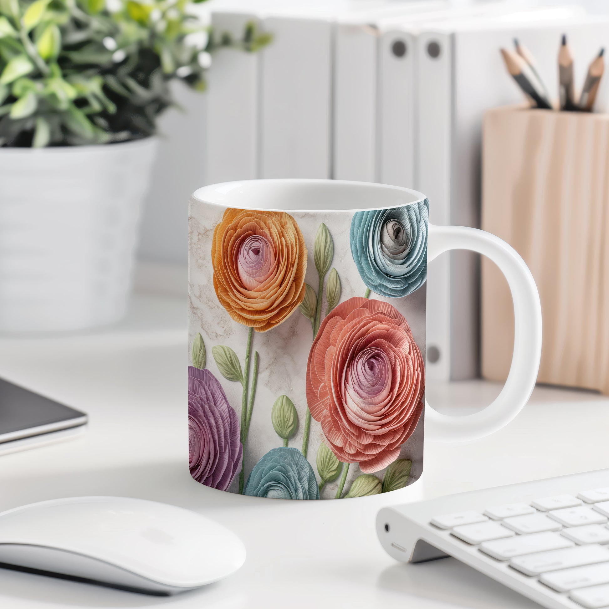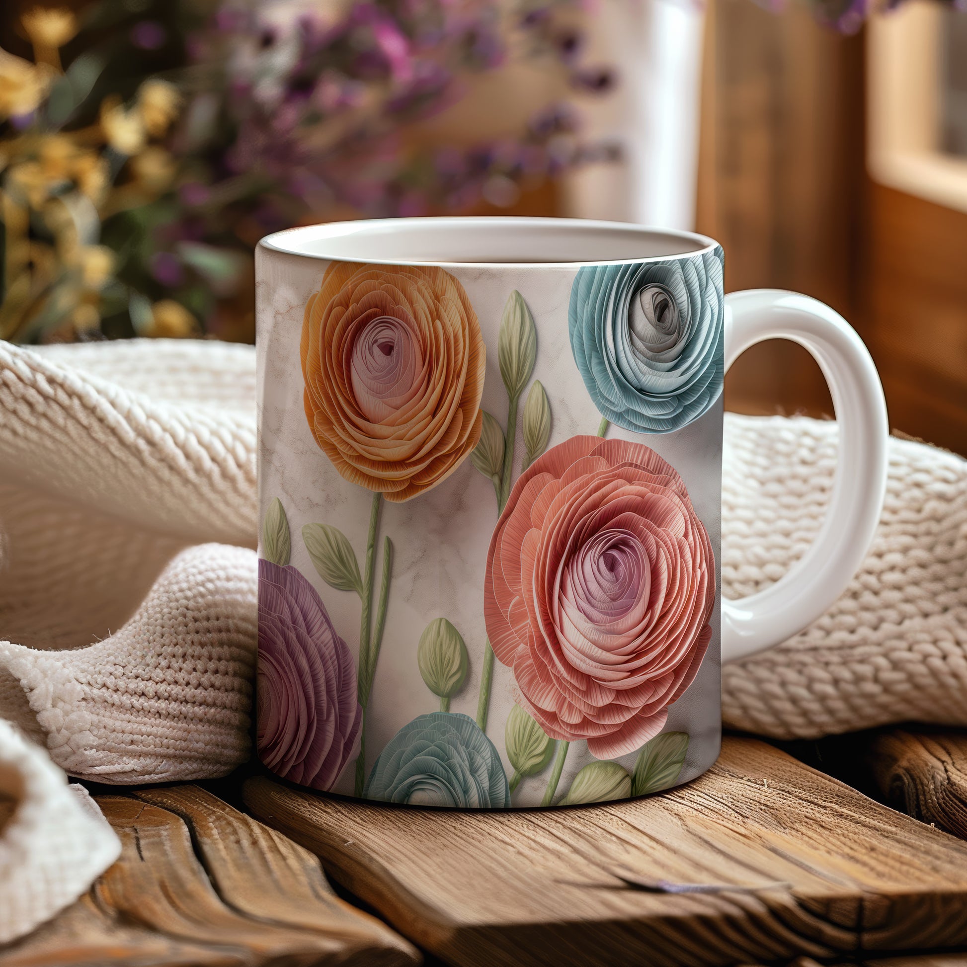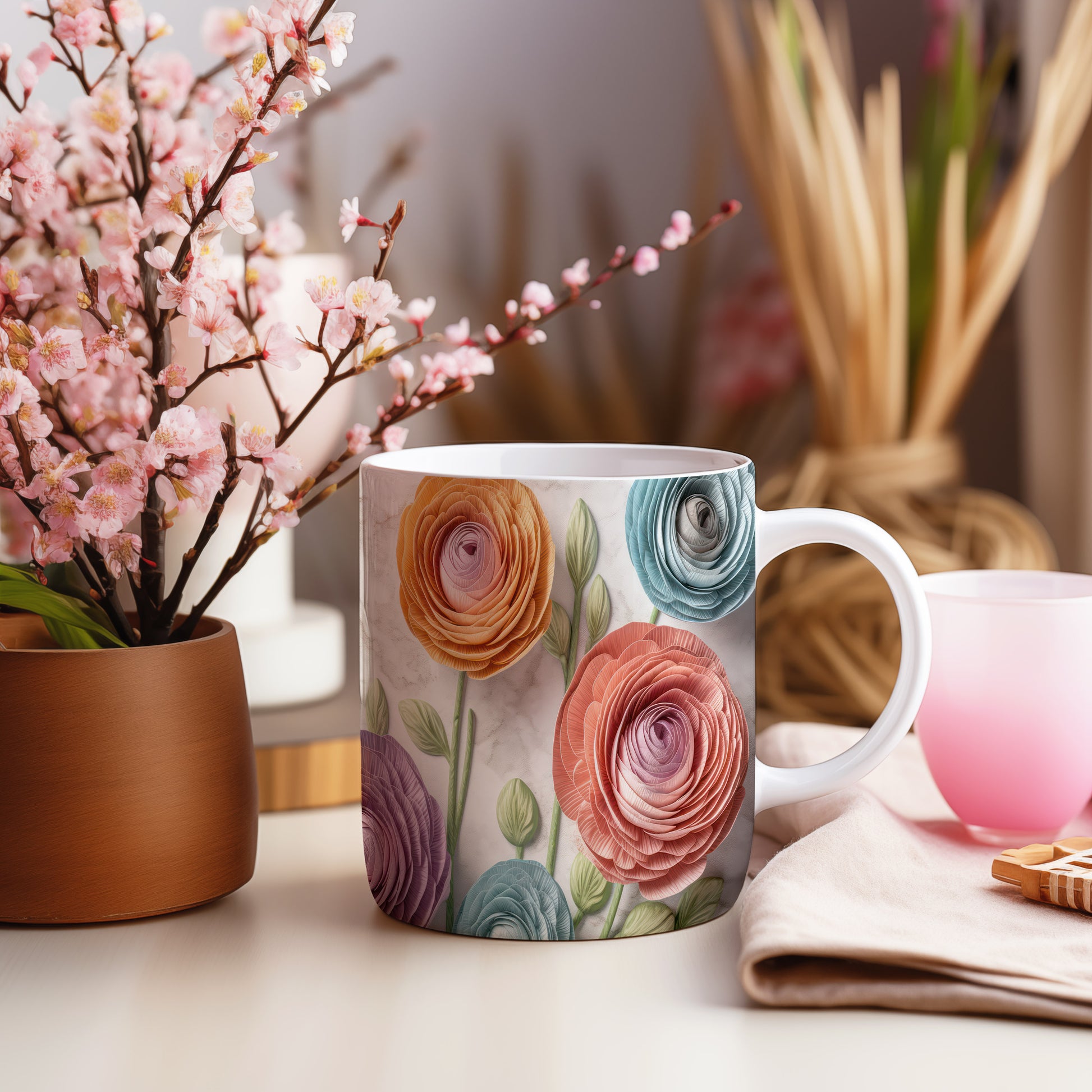 Tento hrnek je ozdoben krásnými květinami v jemných pastelových barvách. Je ideální pro milovníky přírody a skvělým dárkem pro každého, kdo si rád vychutná čaj nebo kávu. Materiál: keramika. Objem: 330 ml. Vhodné do myčky i mikrovlnky. Používání tohoto hrnku přináší radost a oživí každý okamžik pití.