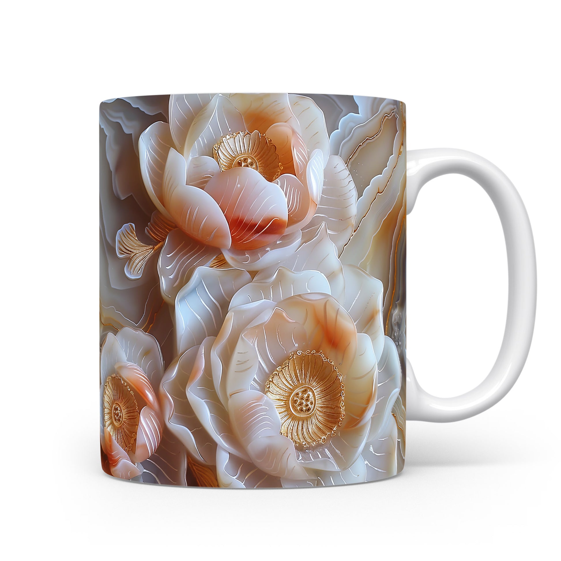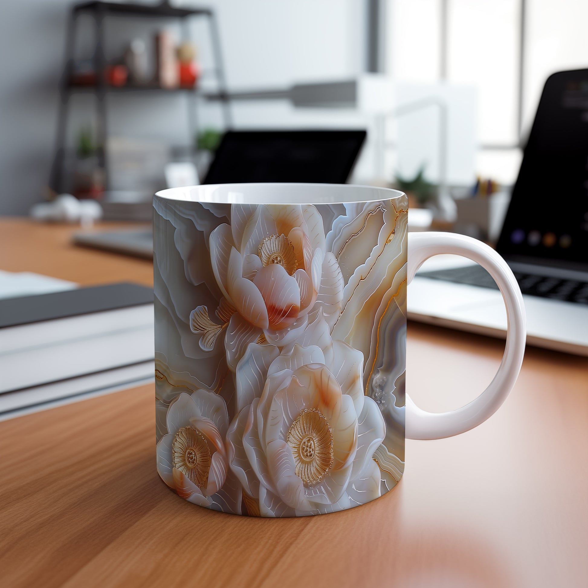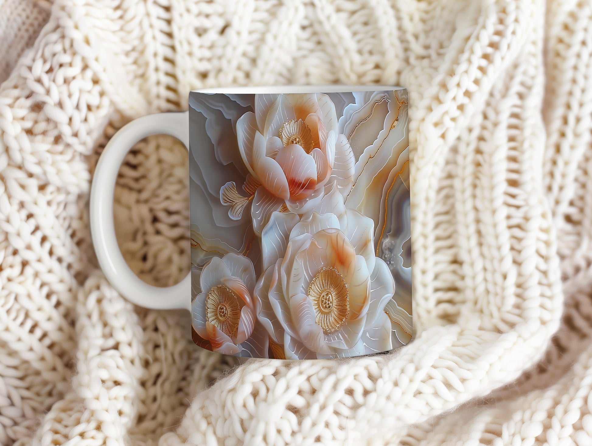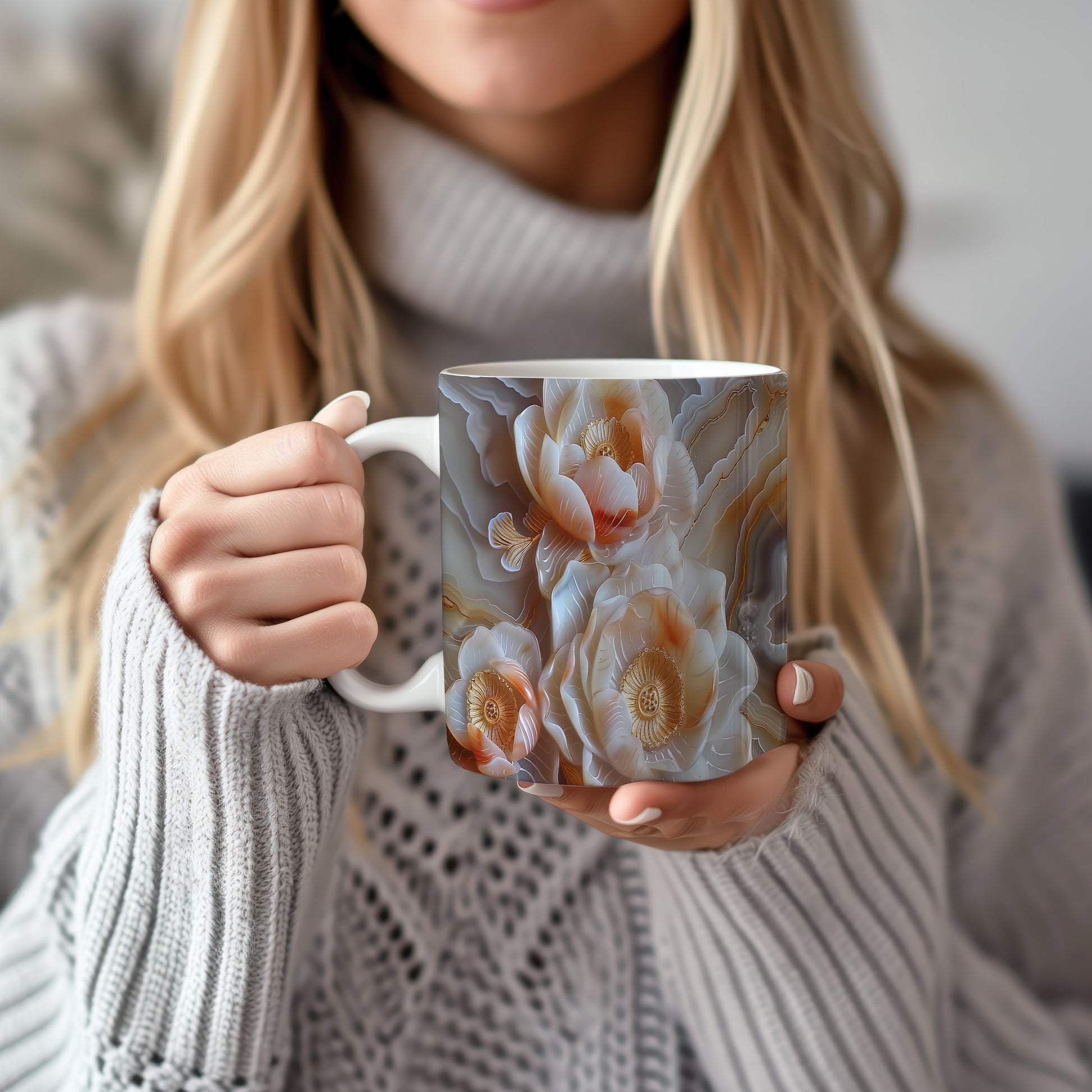 Hrnek s květinovým motivem v jemných tónech – malířským vzhledem