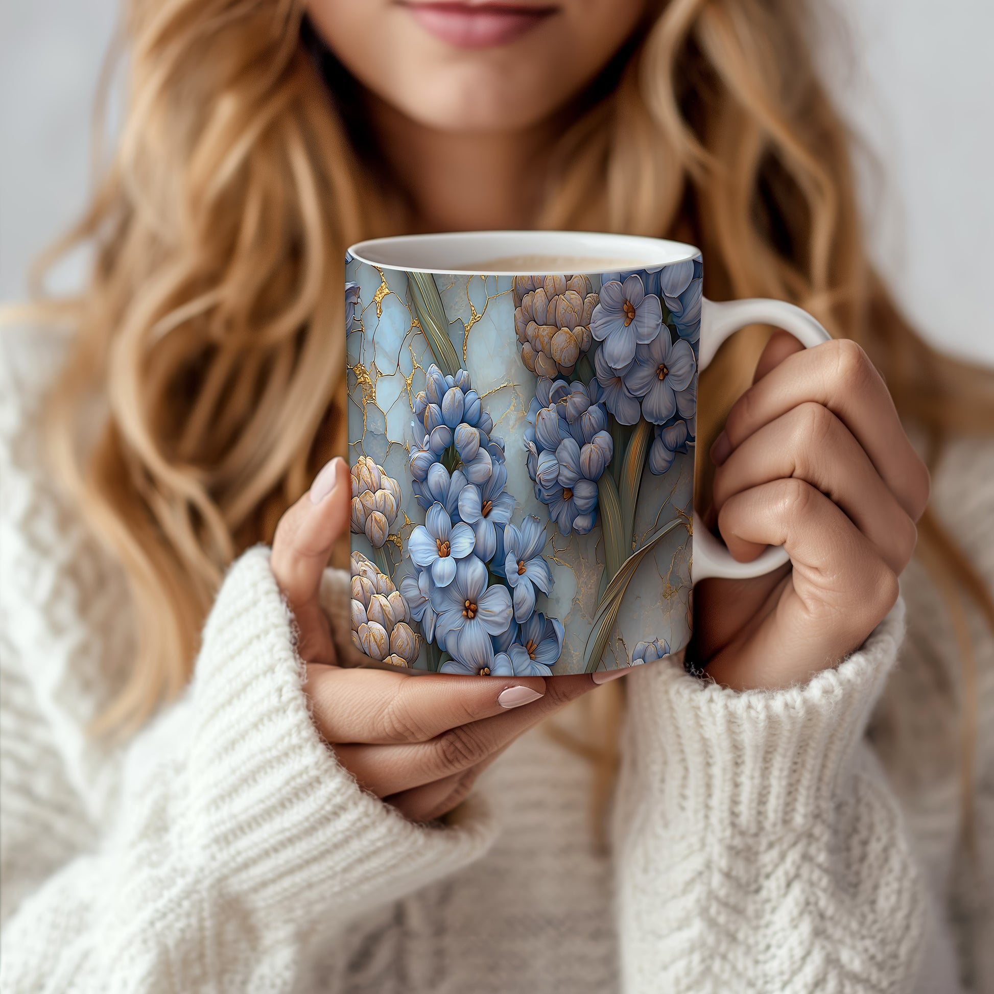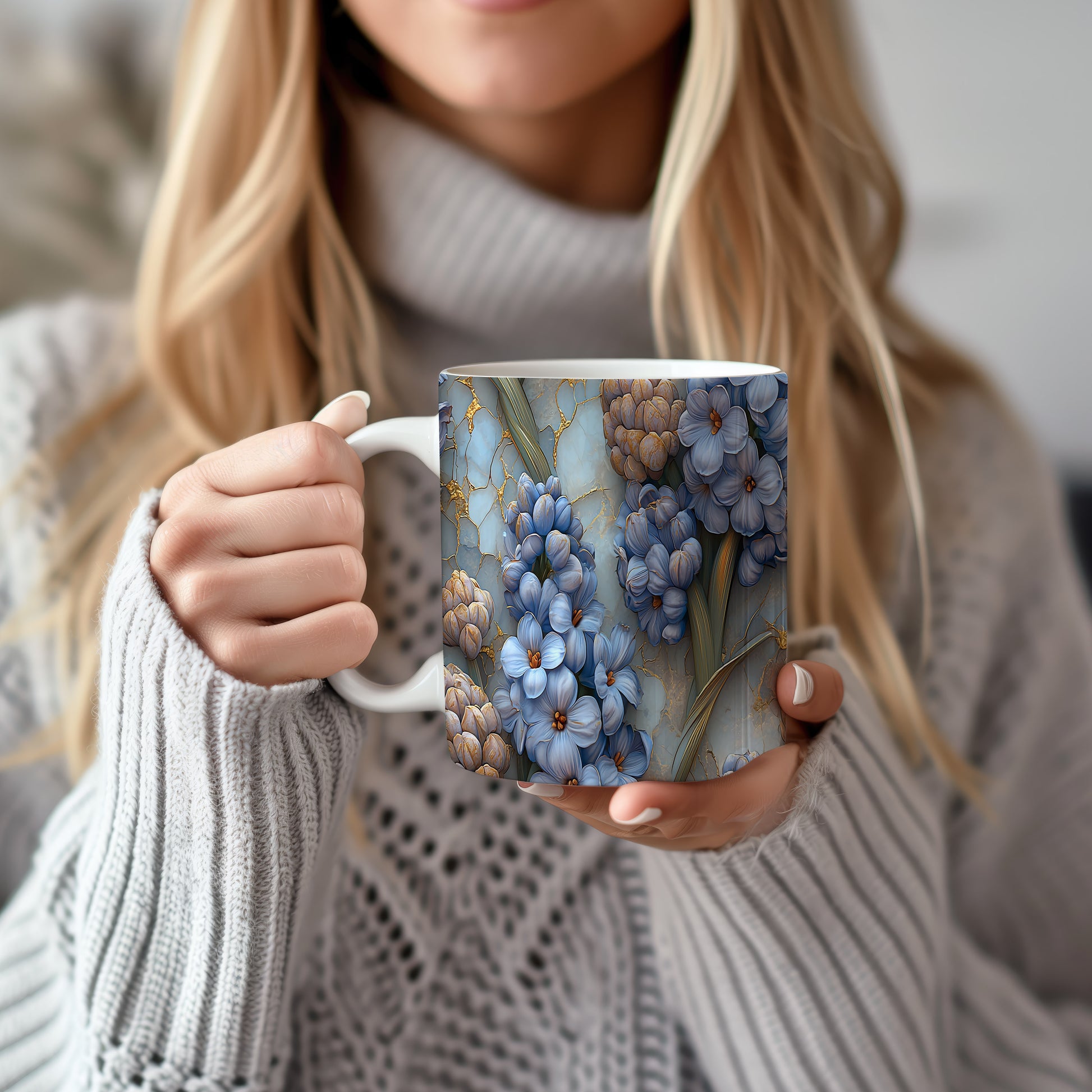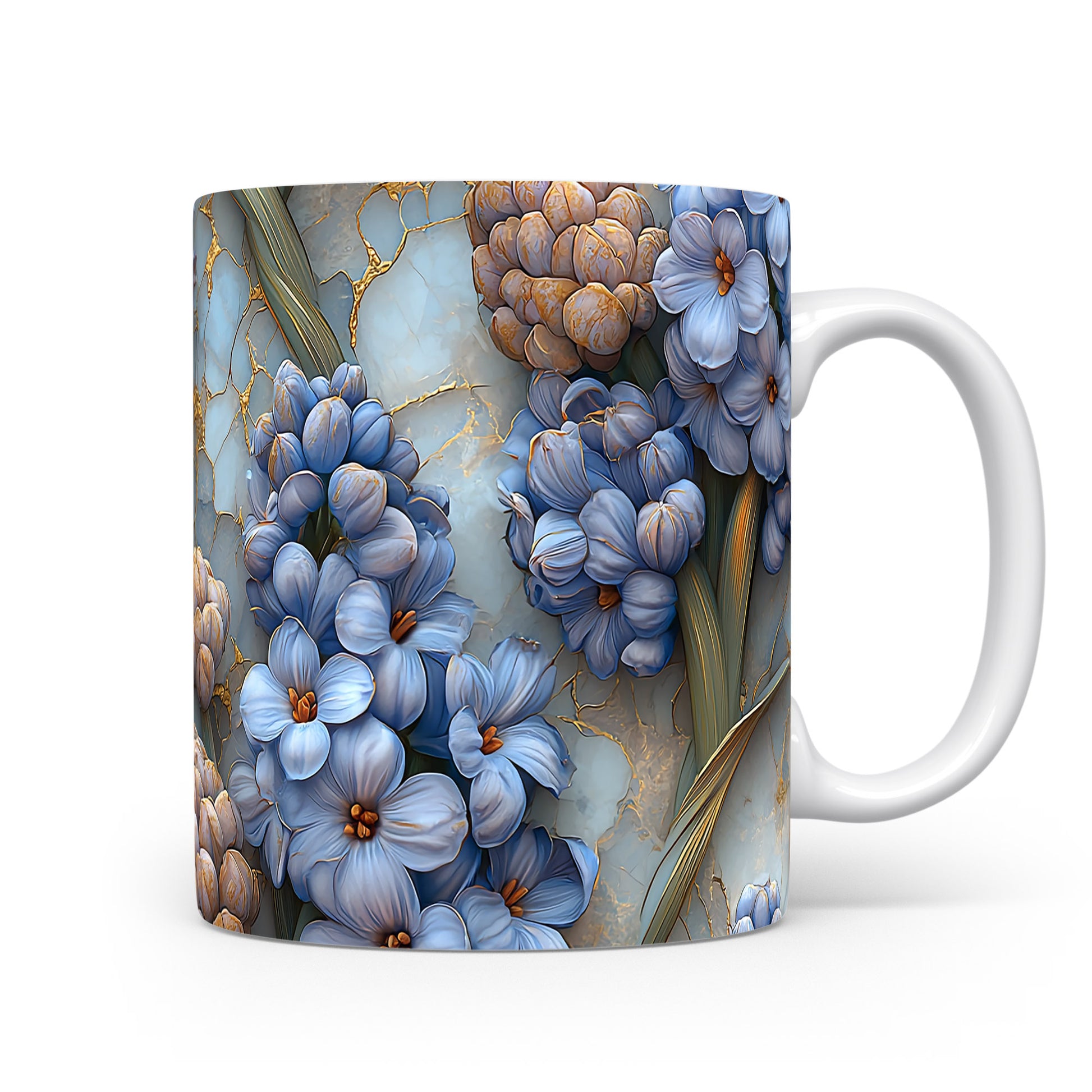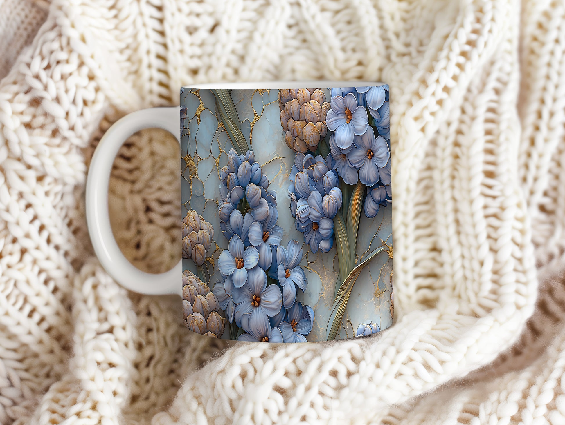 Hrnek s květinovým motivem v modré barvě