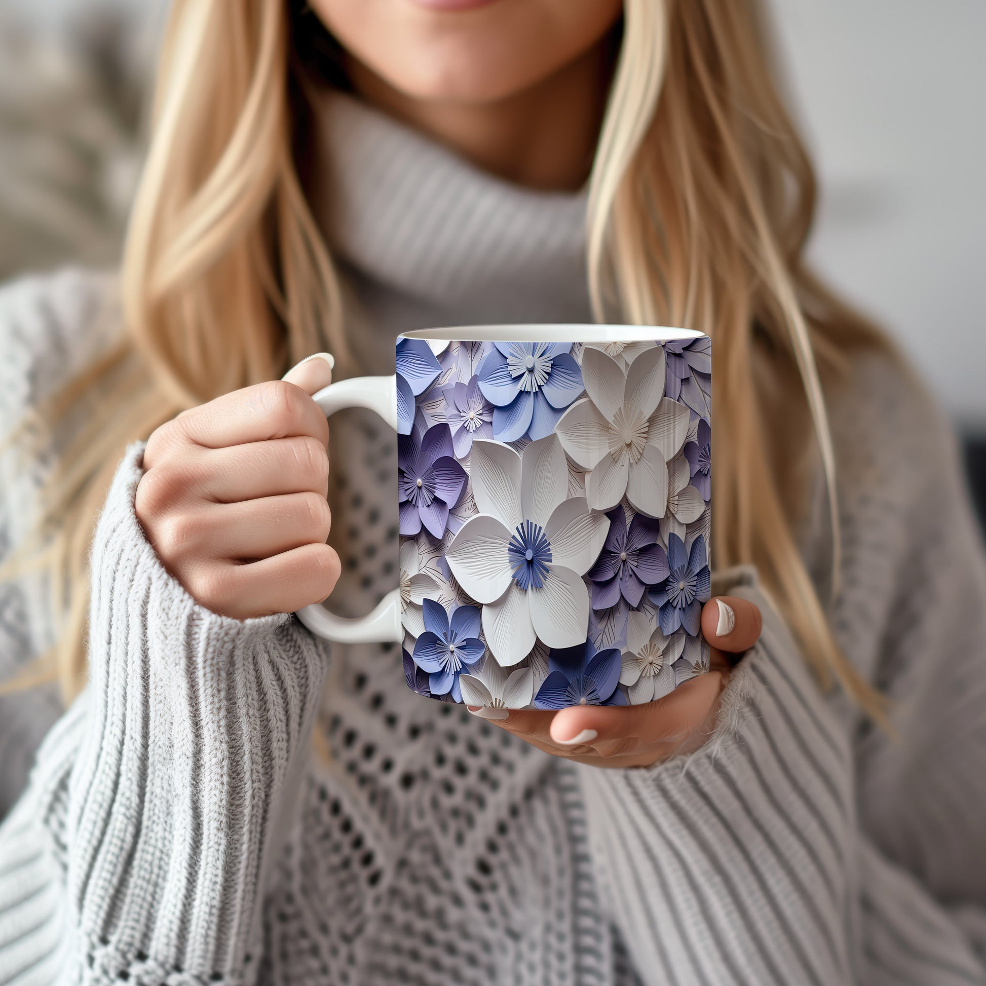 Hrnek s květinovým motivem v modrých tónech – malířským vzhledem