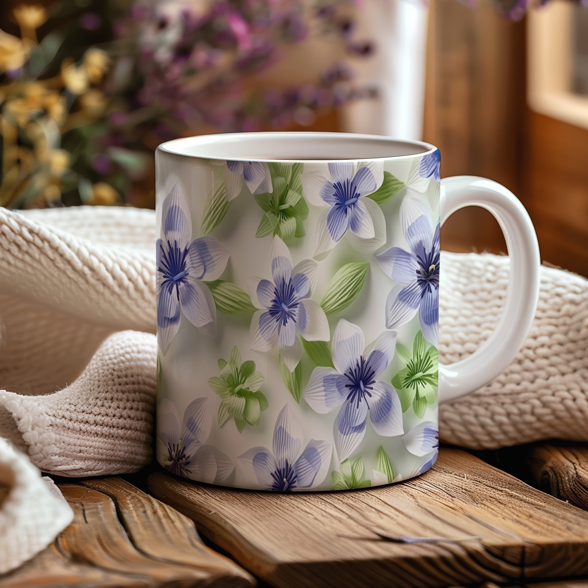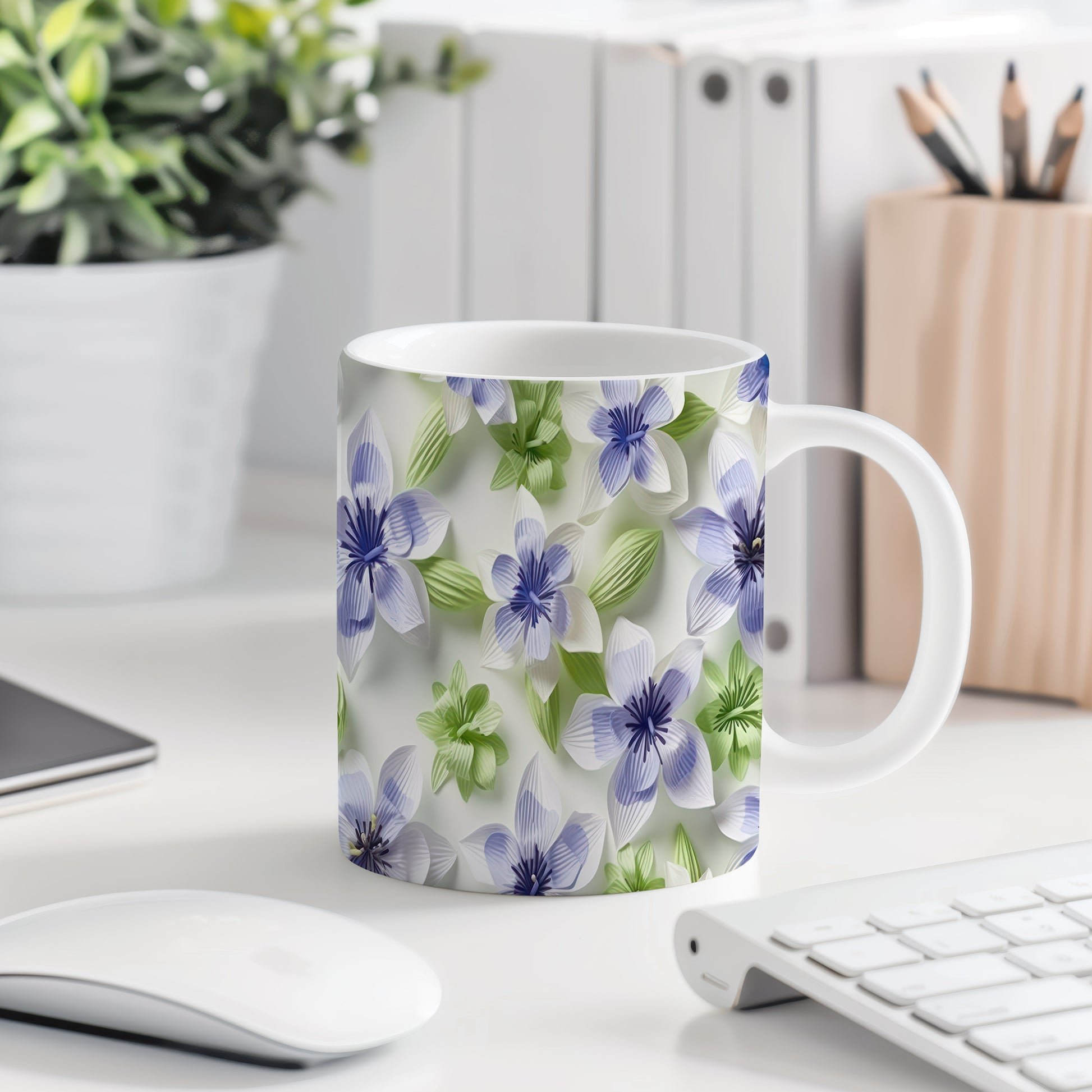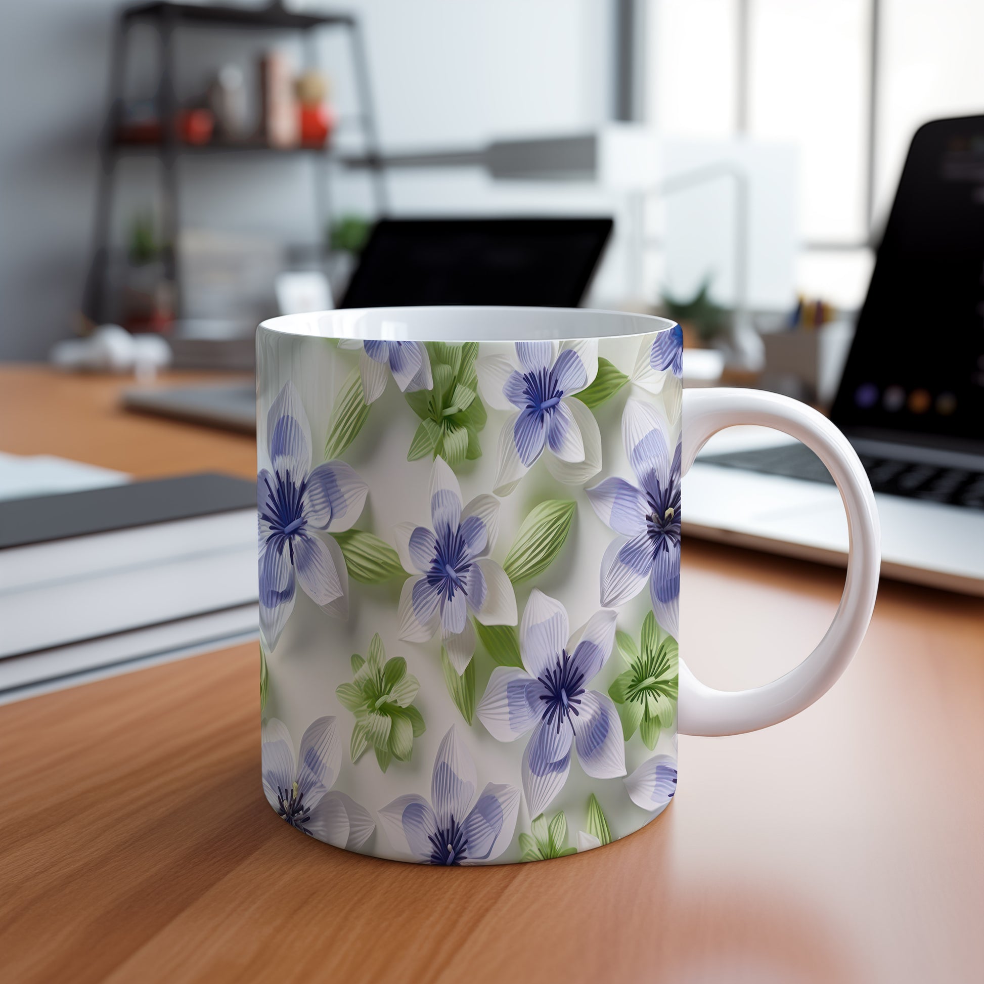 Tento hrnek zdobí elegantní květinový motiv v modrých a zelených odstínech. Je ideální pro milovníky přírody a skvělým dárkem pro každého, kdo ocení krásu květin. Materiál: keramika. Objem: 330 ml. Vhodné do myčky i mikrovlnky. Díky kvalitnímu zpracování si hrnek zachovává svou krásu a funkčnost po dlouhou dobu.