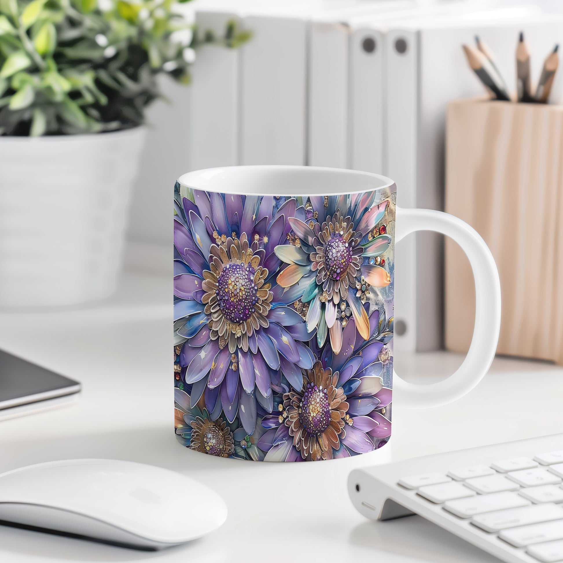 Tento hrnek s květinovým motivem v jemných modrých a fialových odstínech je ideální pro milovníky přírody a elegance. Skvělý tip na dárek pro přátele nebo rodinu, kteří ocení krásu v každodenním životě. Materiál: keramika. Objem: 330 ml. Vhodné do myčky i mikrovlnky. Používáním tohoto hrnku si zpříjemníte každé ráno s šálkem oblíbeného nápoje.
