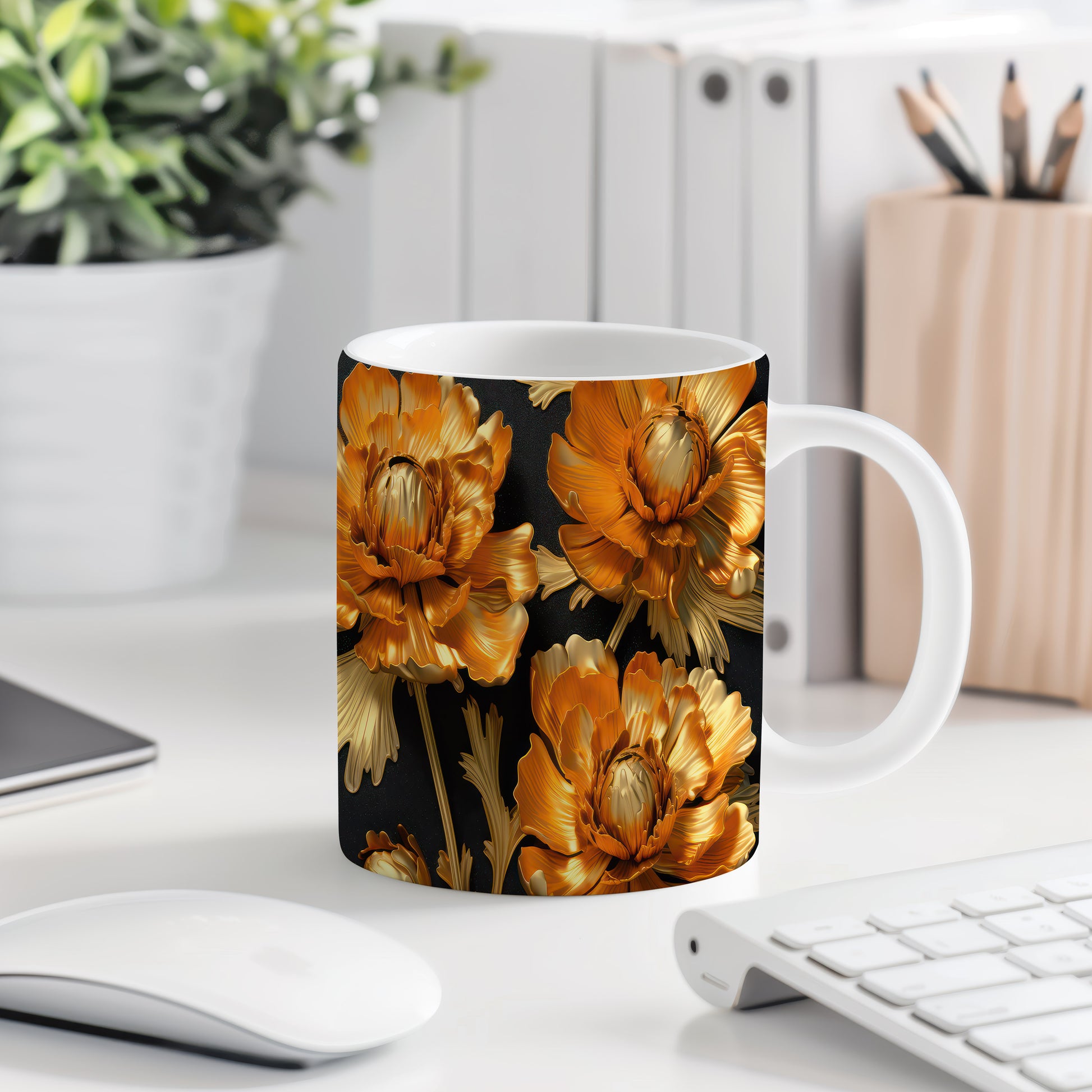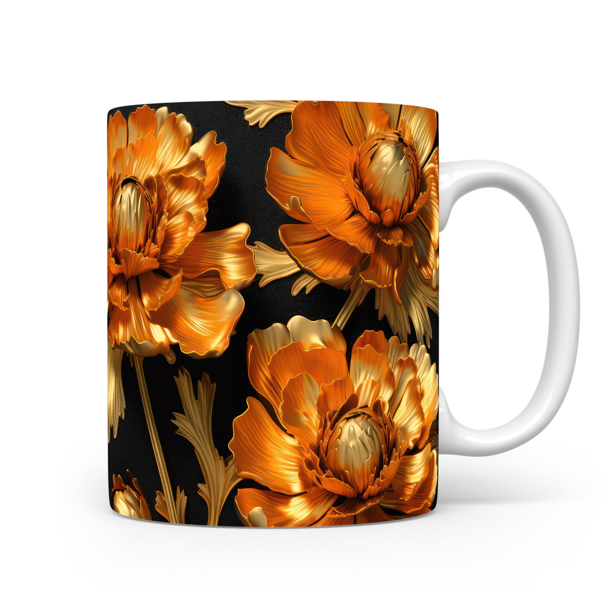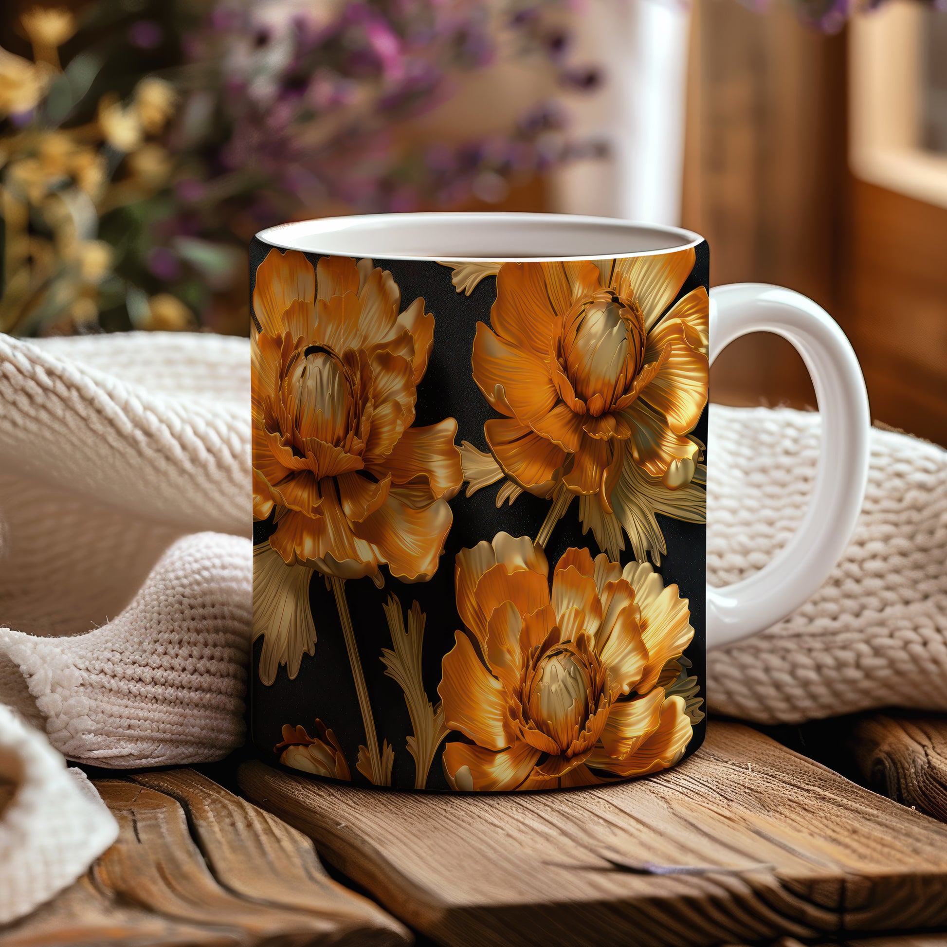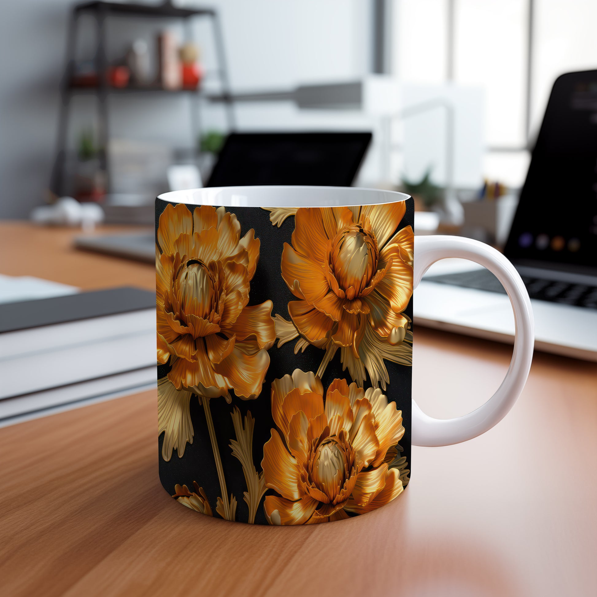 Elegantní hrnek s krásnými oranžovými květinami na černém pozadí. Tento stylový kousek potěší každého milovníka květin a přírody, skvělý tip na dárek pro blízké. Materiál: keramika. Objem: 330 ml. Vhodné do myčky i mikrovlnky. Užijte si kávu nebo čaj v tomto jedinečném hrnku, který přináší radost do každého dne.