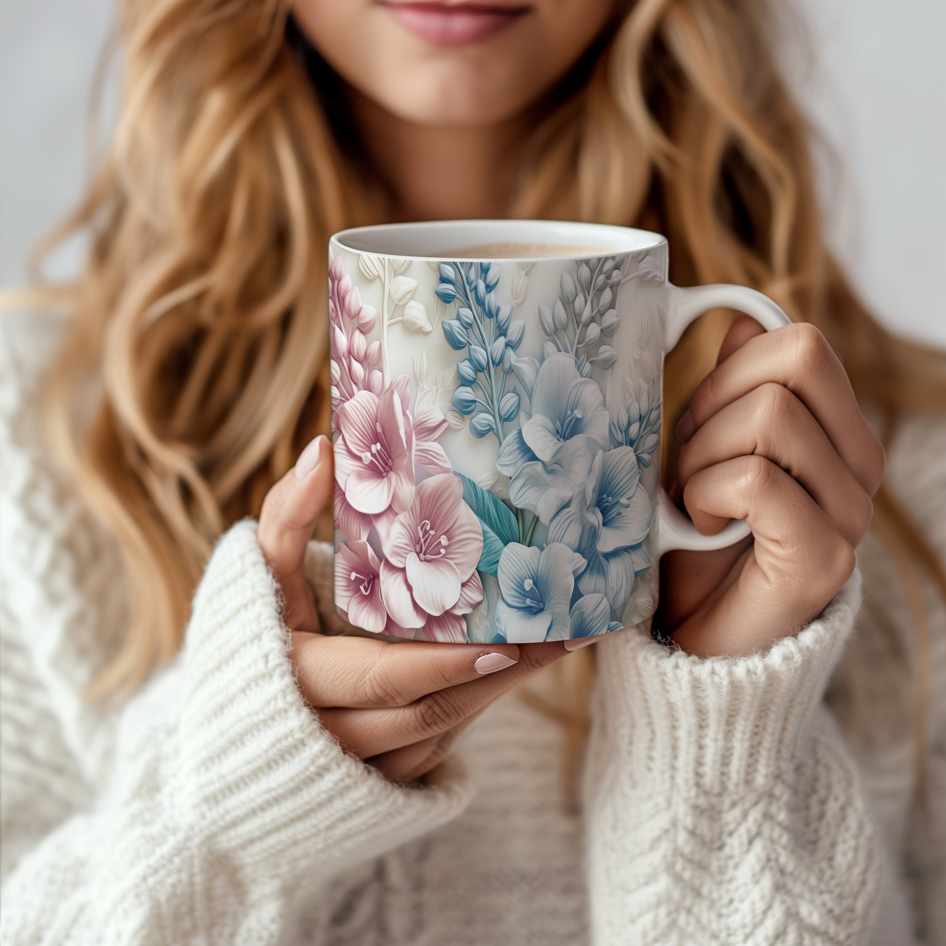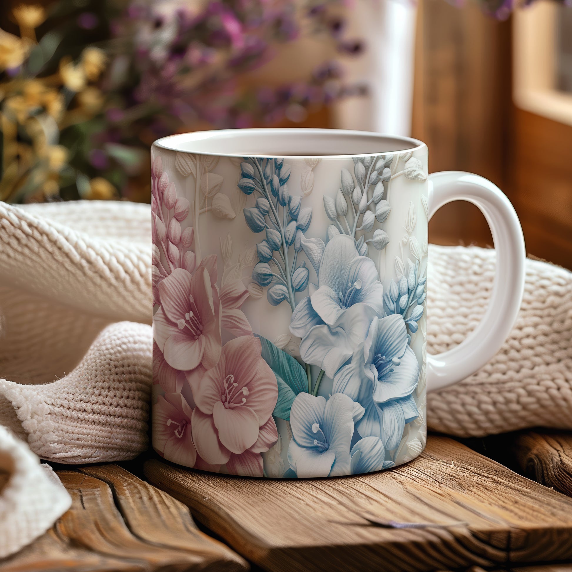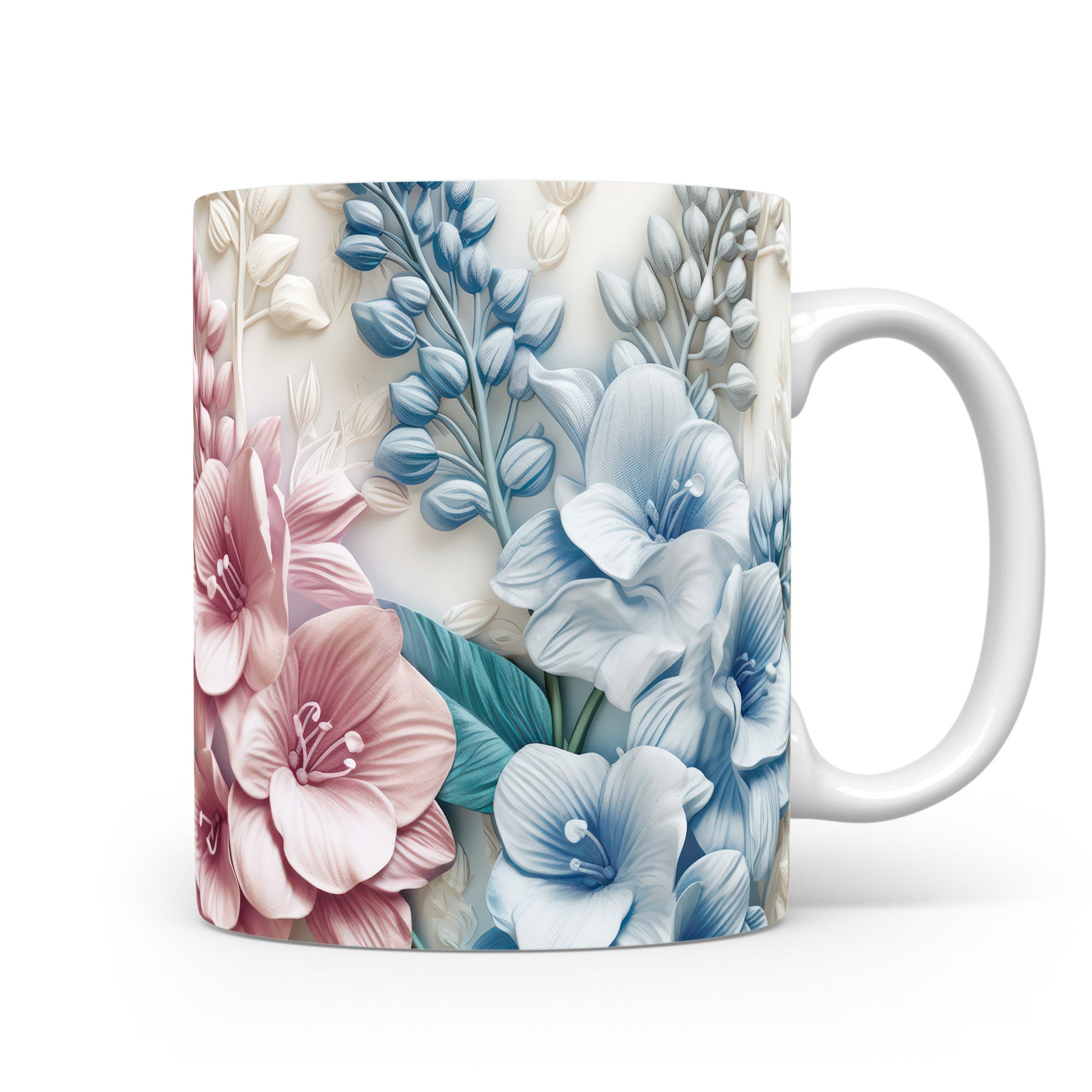 Hrnek s květinovým motivem v pastelových barvách – 3D efektem