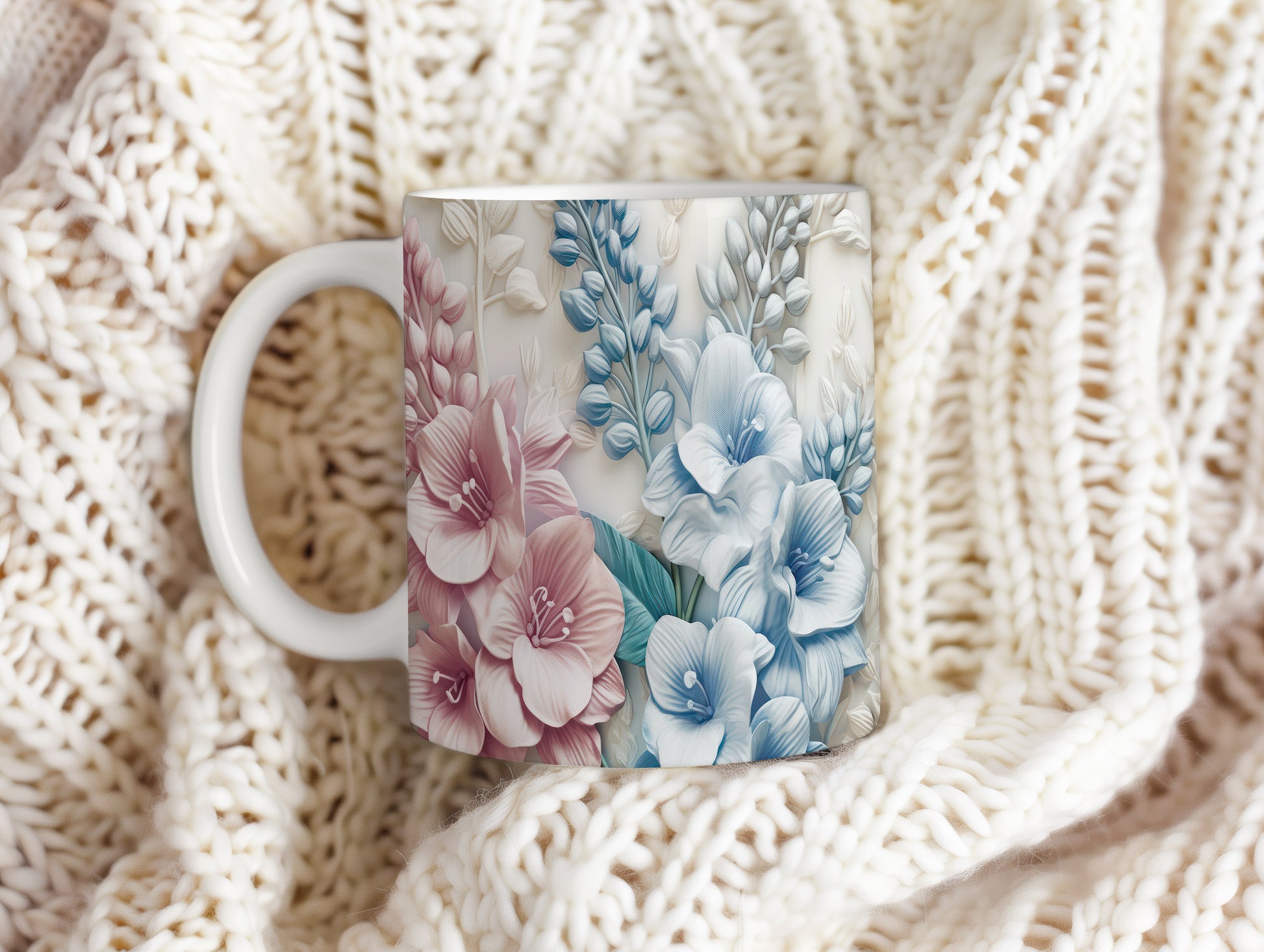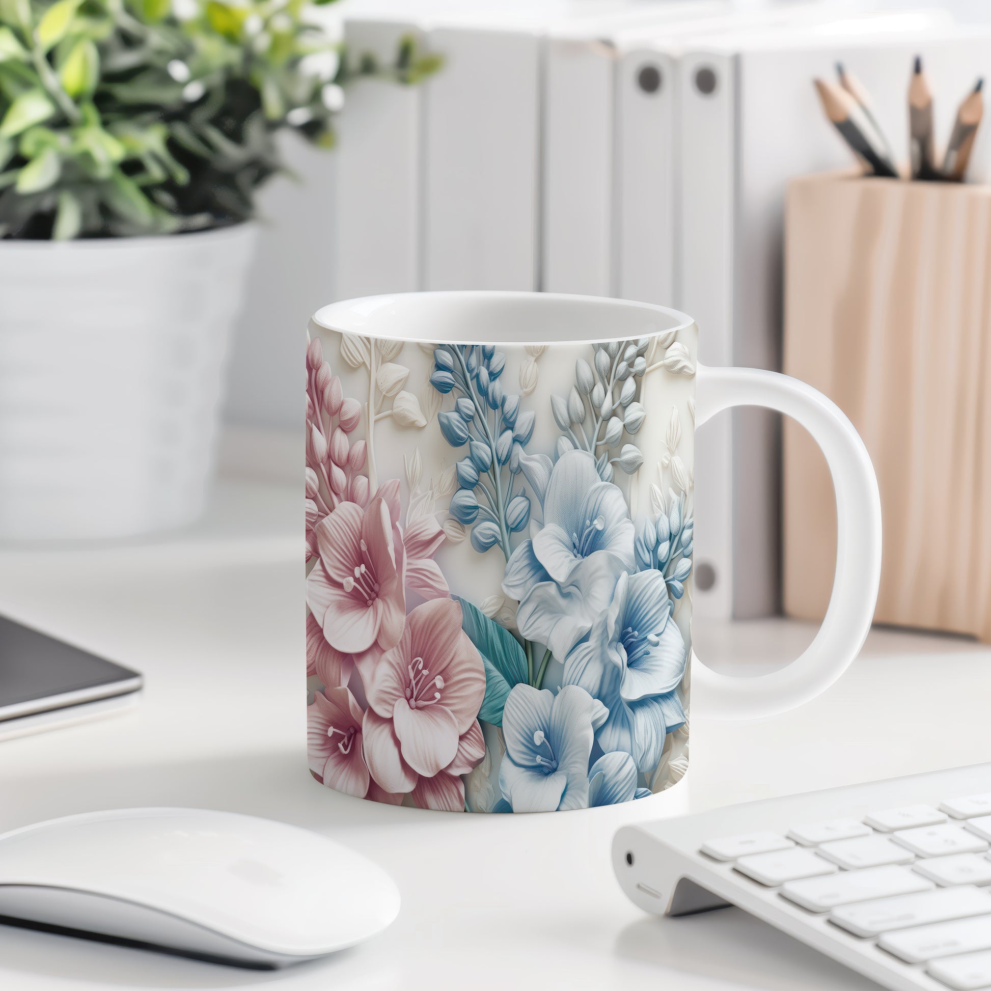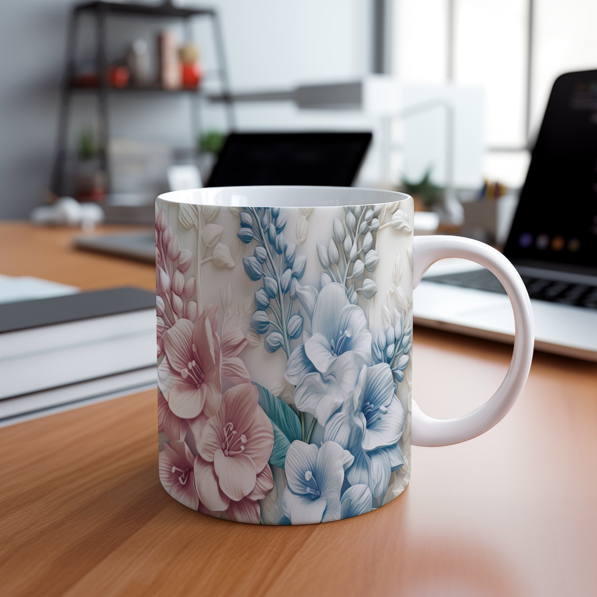 Hrnek s květinovým motivem v pastelových barvách – 3D efektem