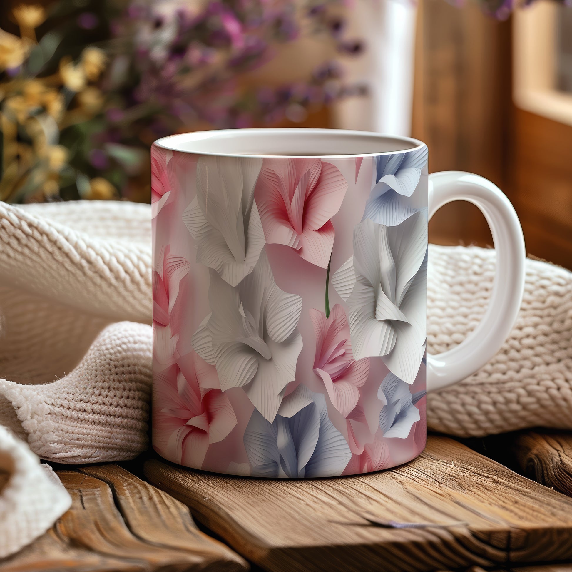 Keramický hrnek s elegantním 3D květinovým motivem v jemných pastelových tónech. Tento hrnek je ideální pro milovníky přírody a skvělým dárkem pro každého, kdo ocení krásu květin. Materiál: keramika. Objem: 330 ml. Vhodné do myčky i mikrovlnky. Používání tohoto hrnku přináší radost z každého doušku vašeho oblíbeného nápoje.