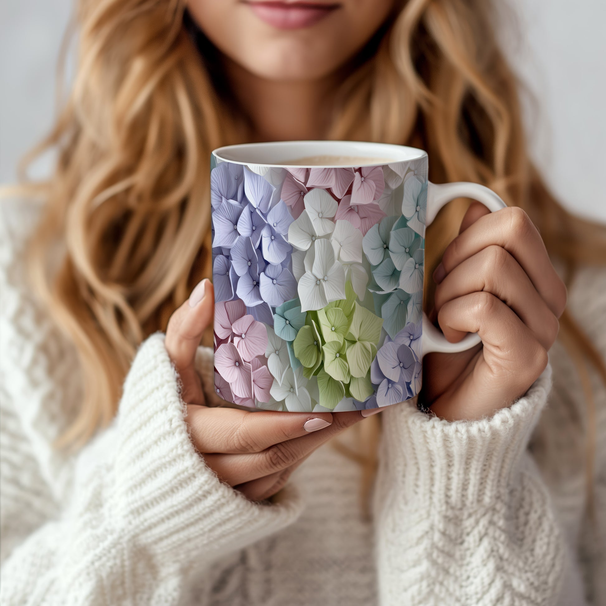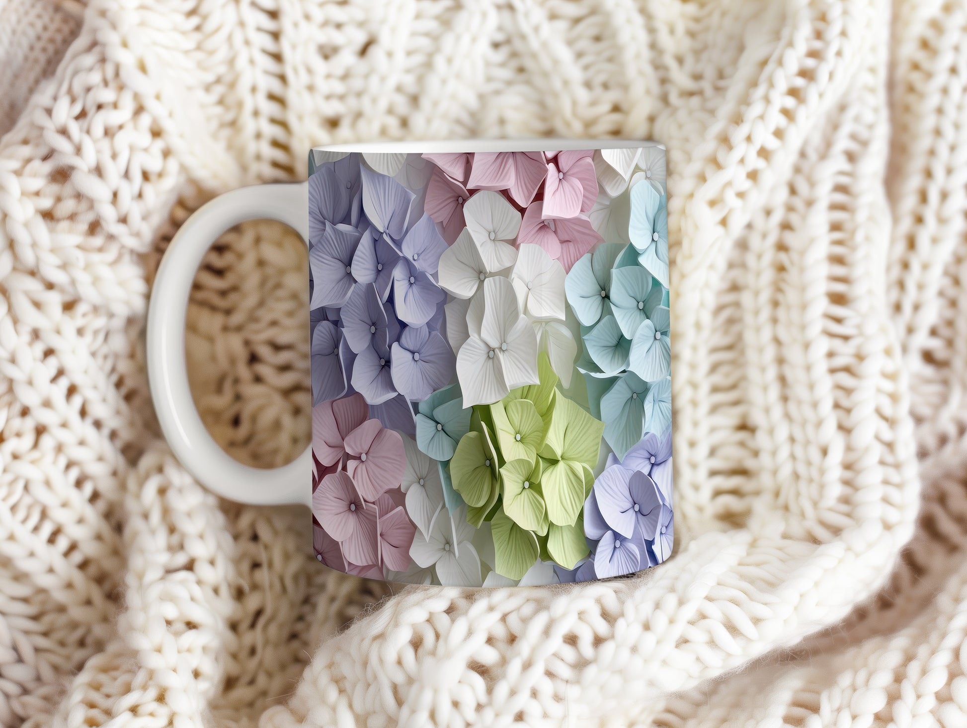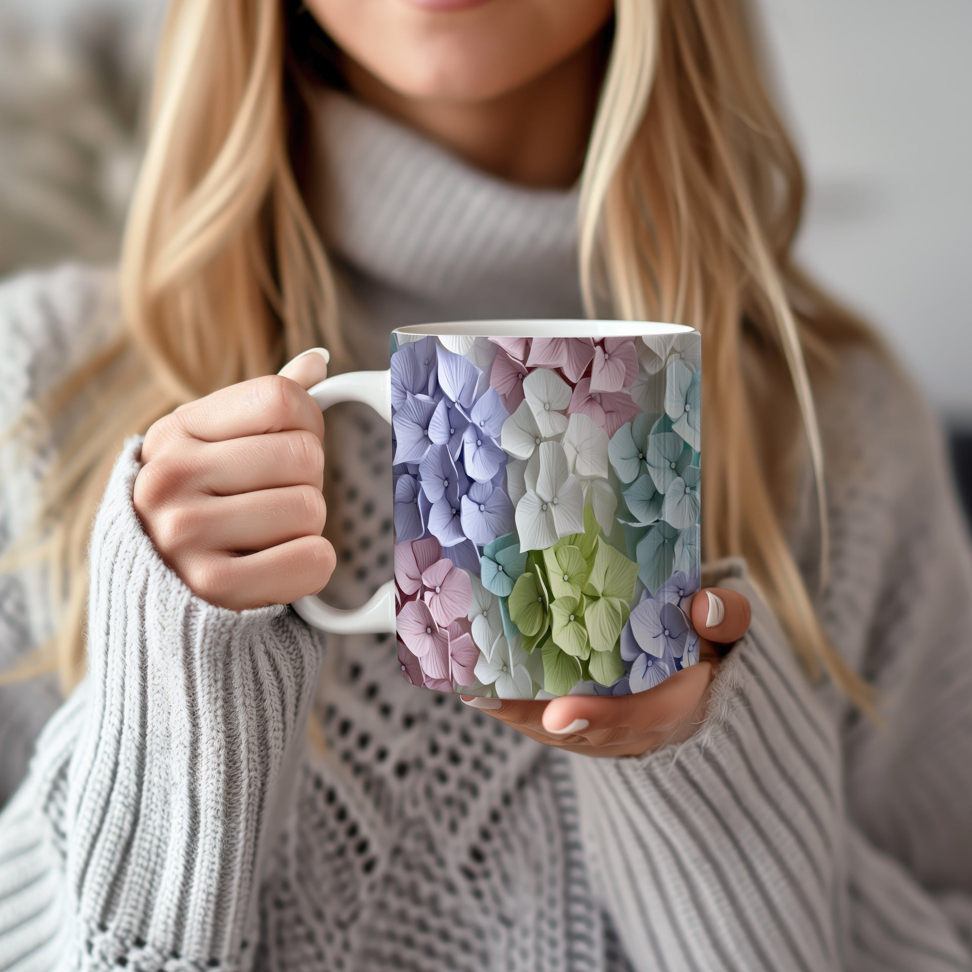 Hrnek s květinovým motivem v pastelových barvách – roztomilým motivem