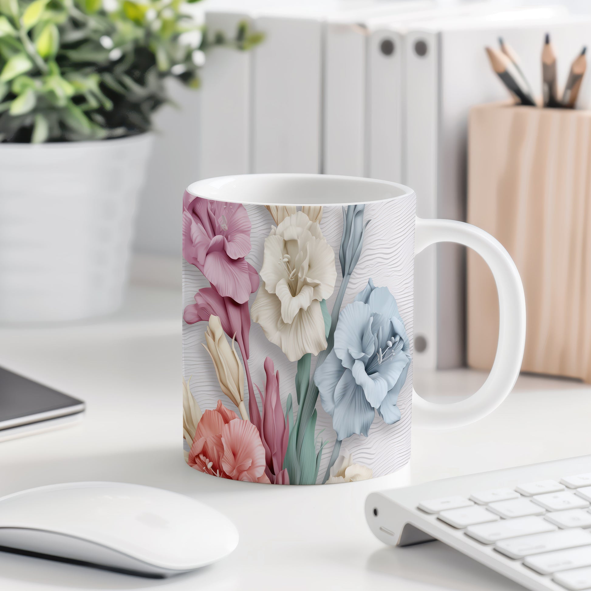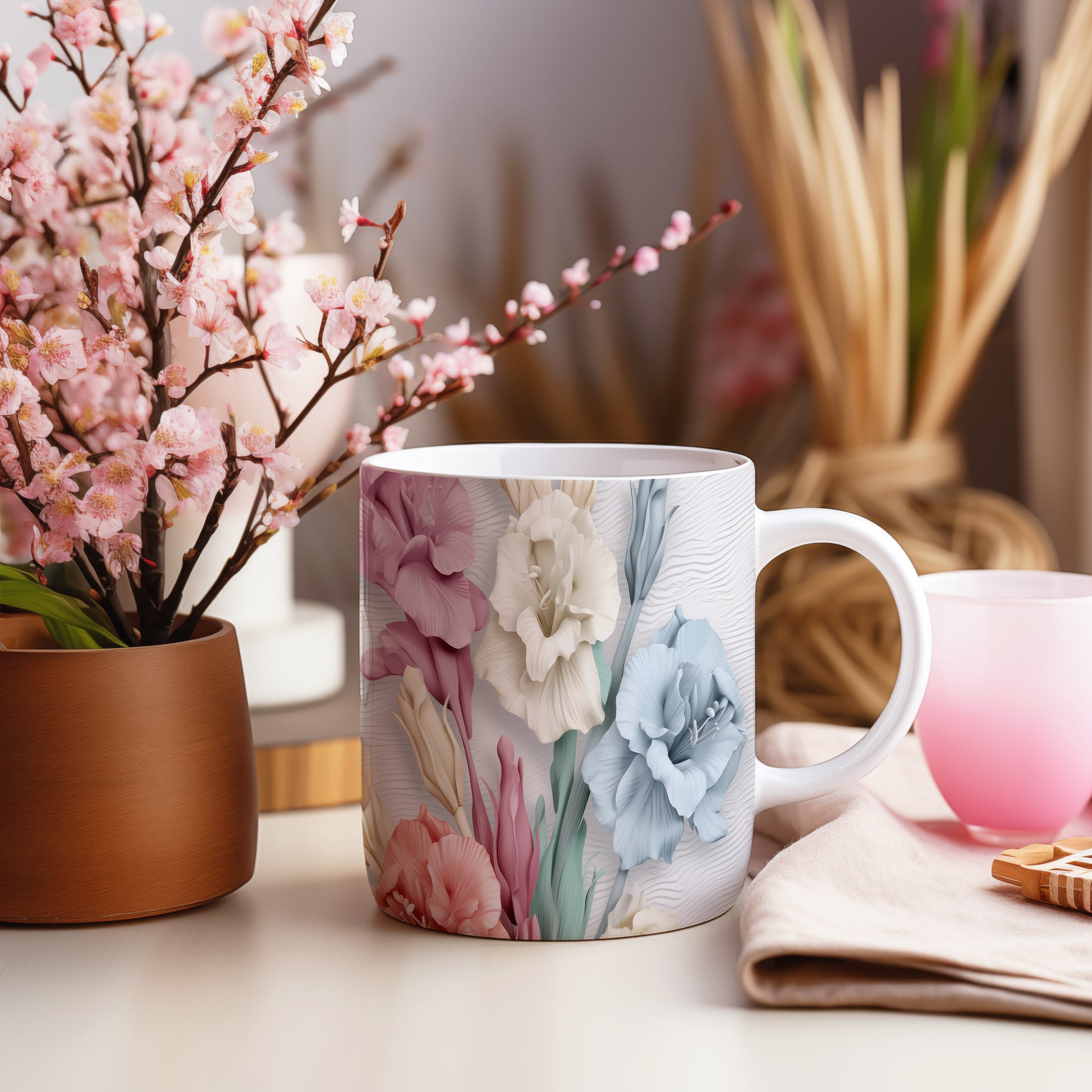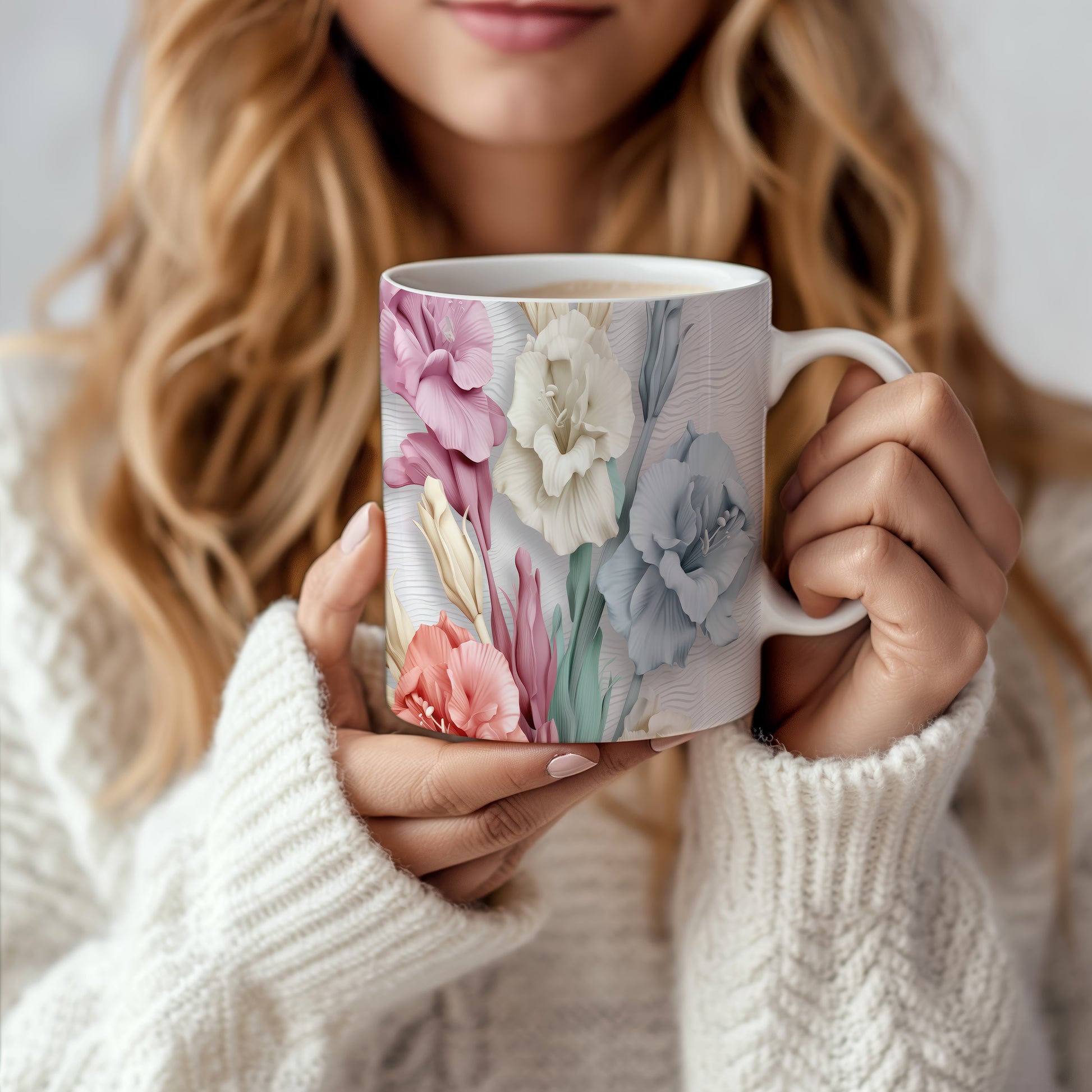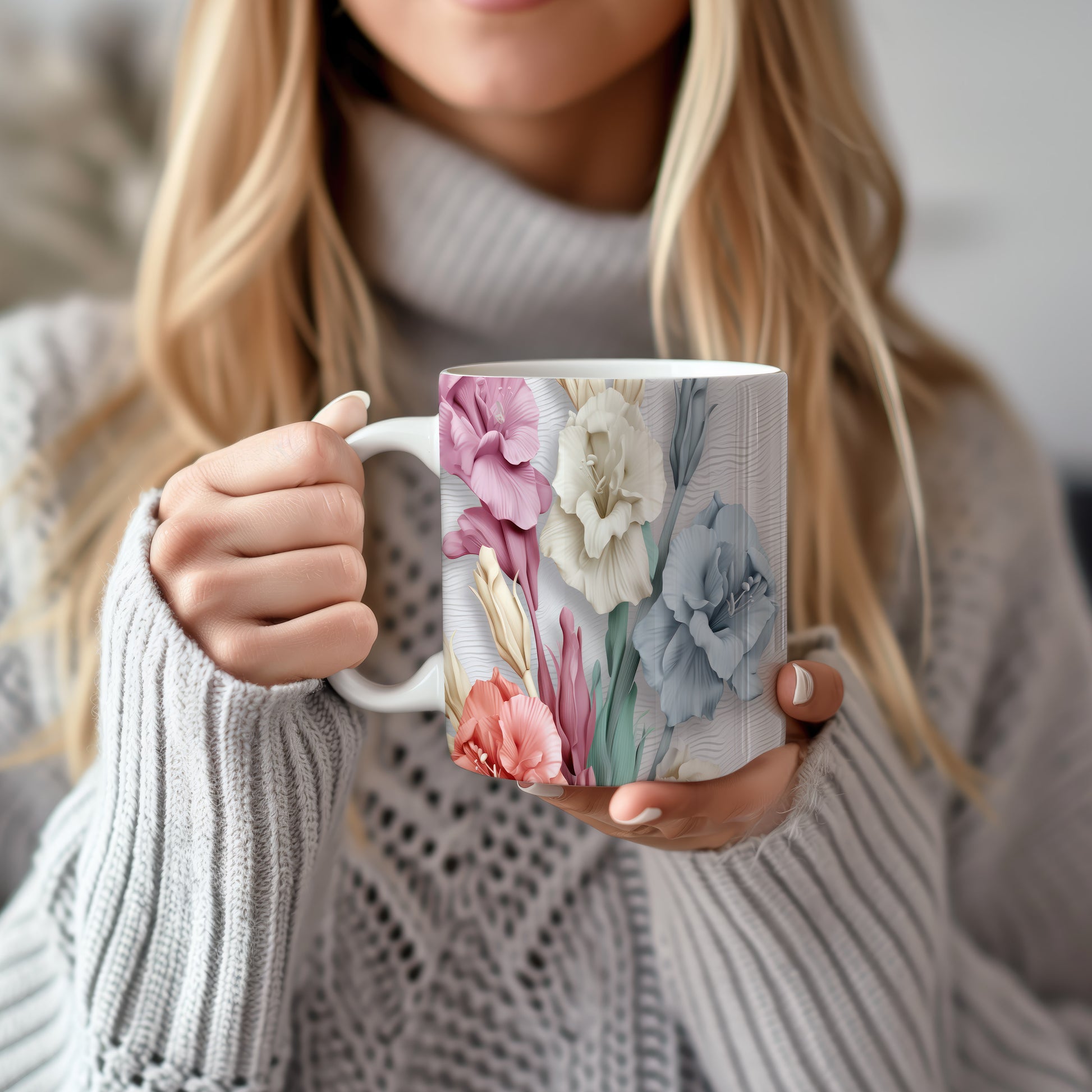 Hrnek s květinovým motivem v pastelových barvách – výrazným designem