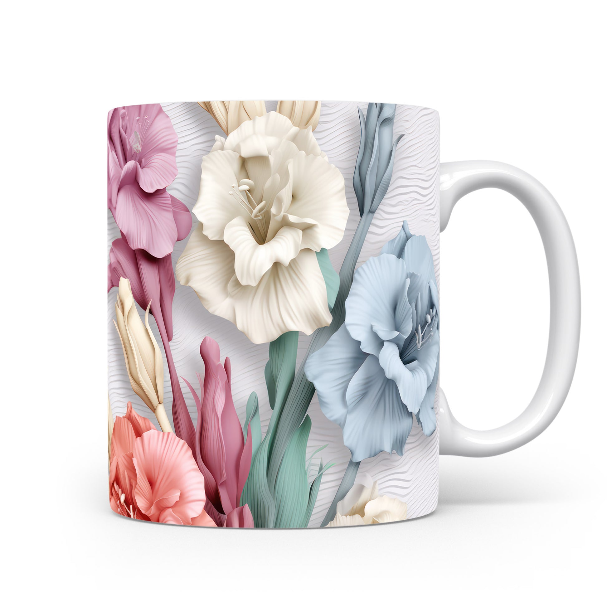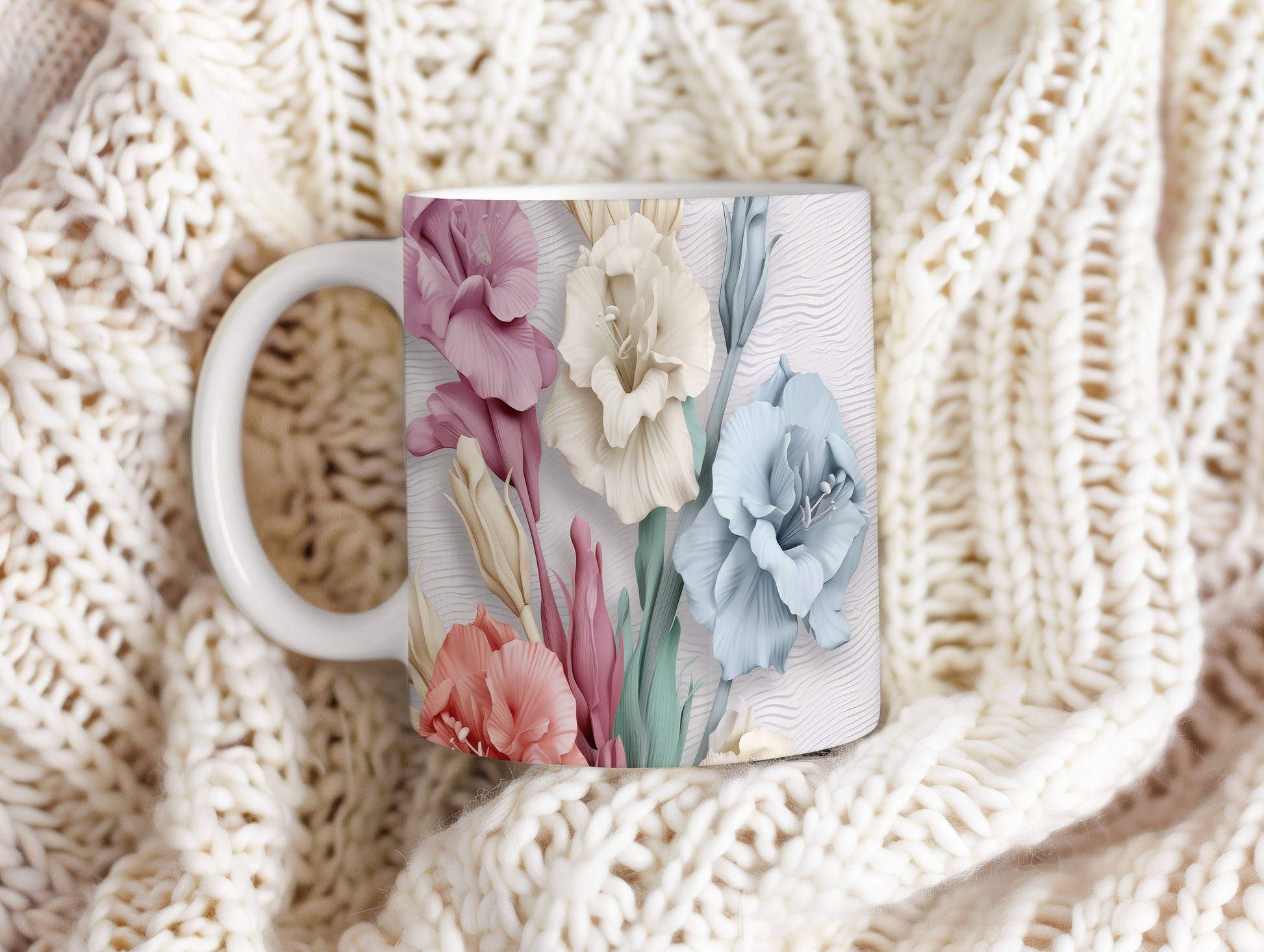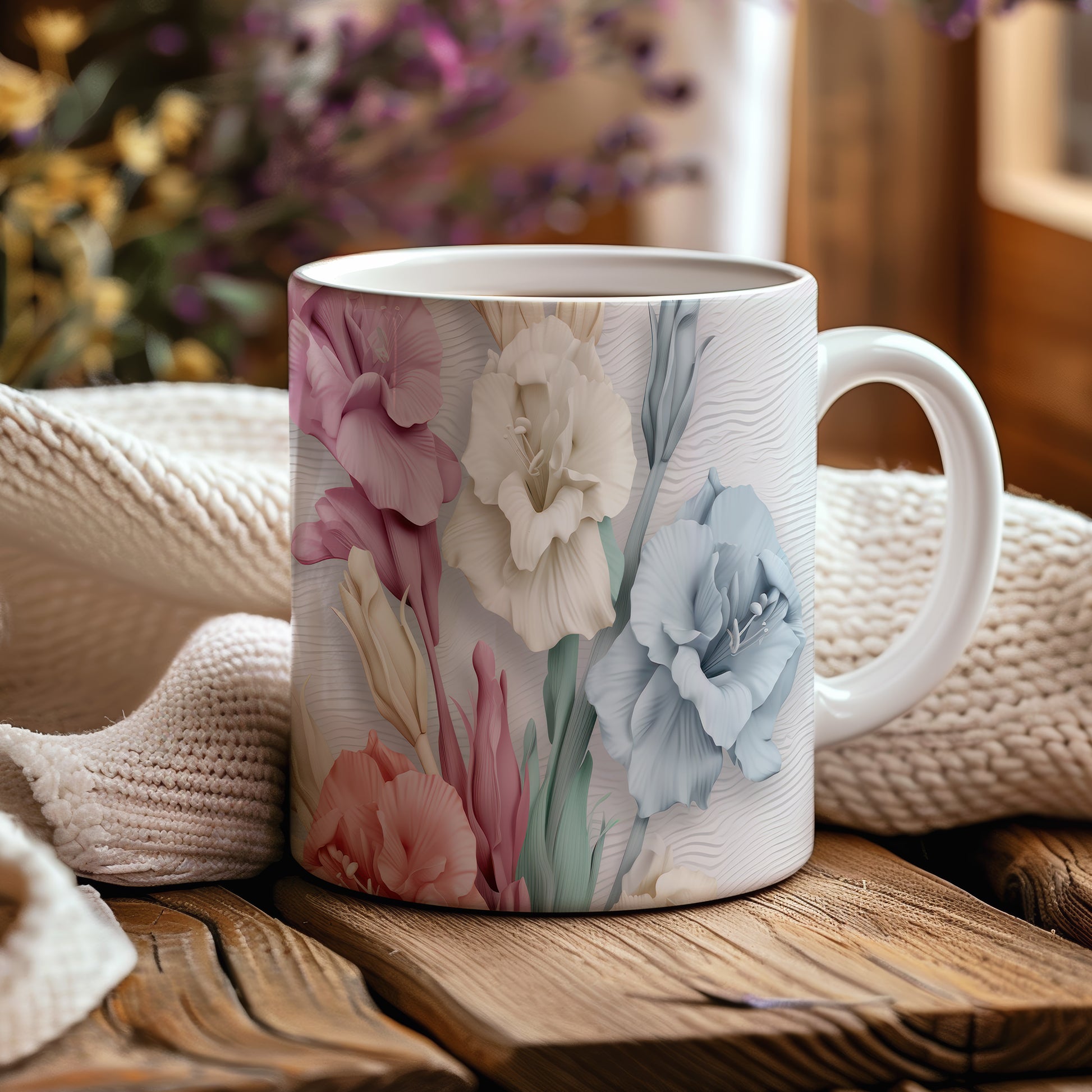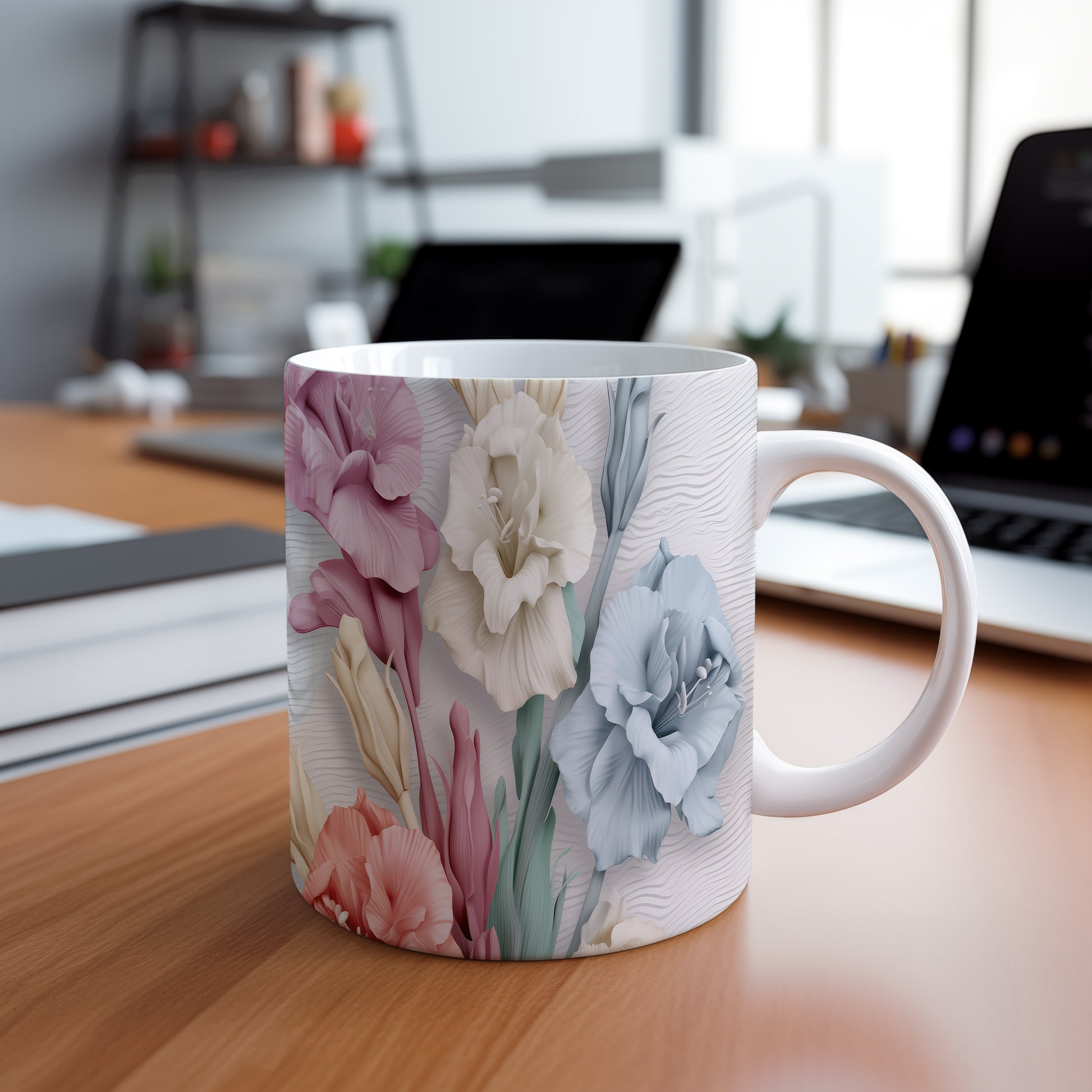 Hrnek s květinovým motivem v pastelových barvách – výrazným designem