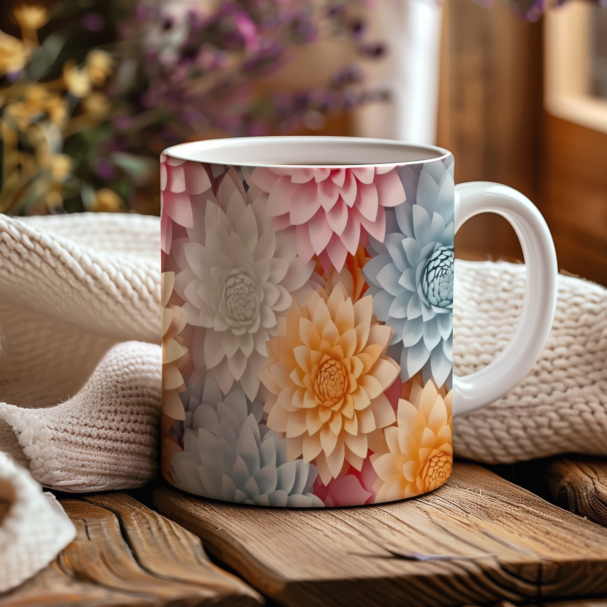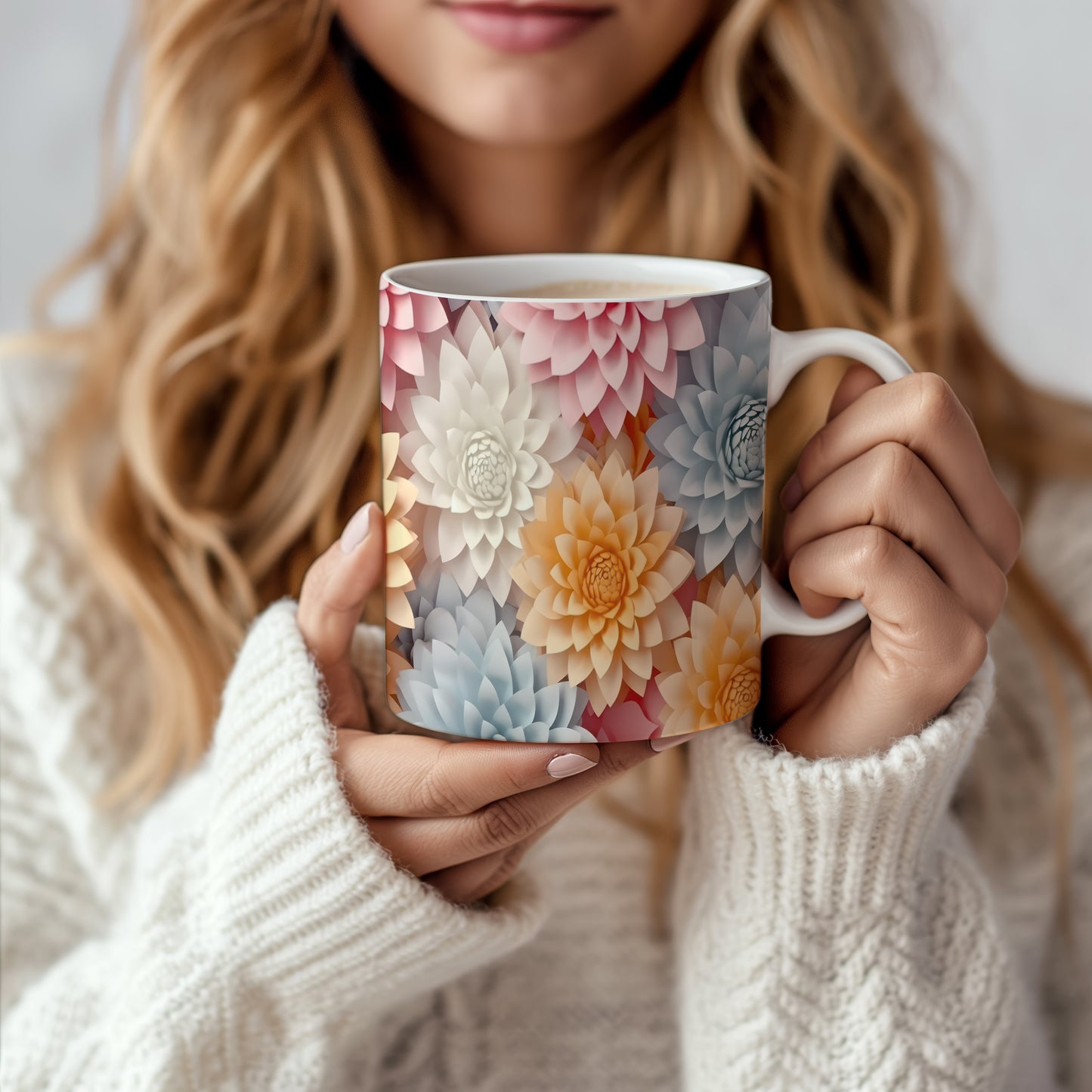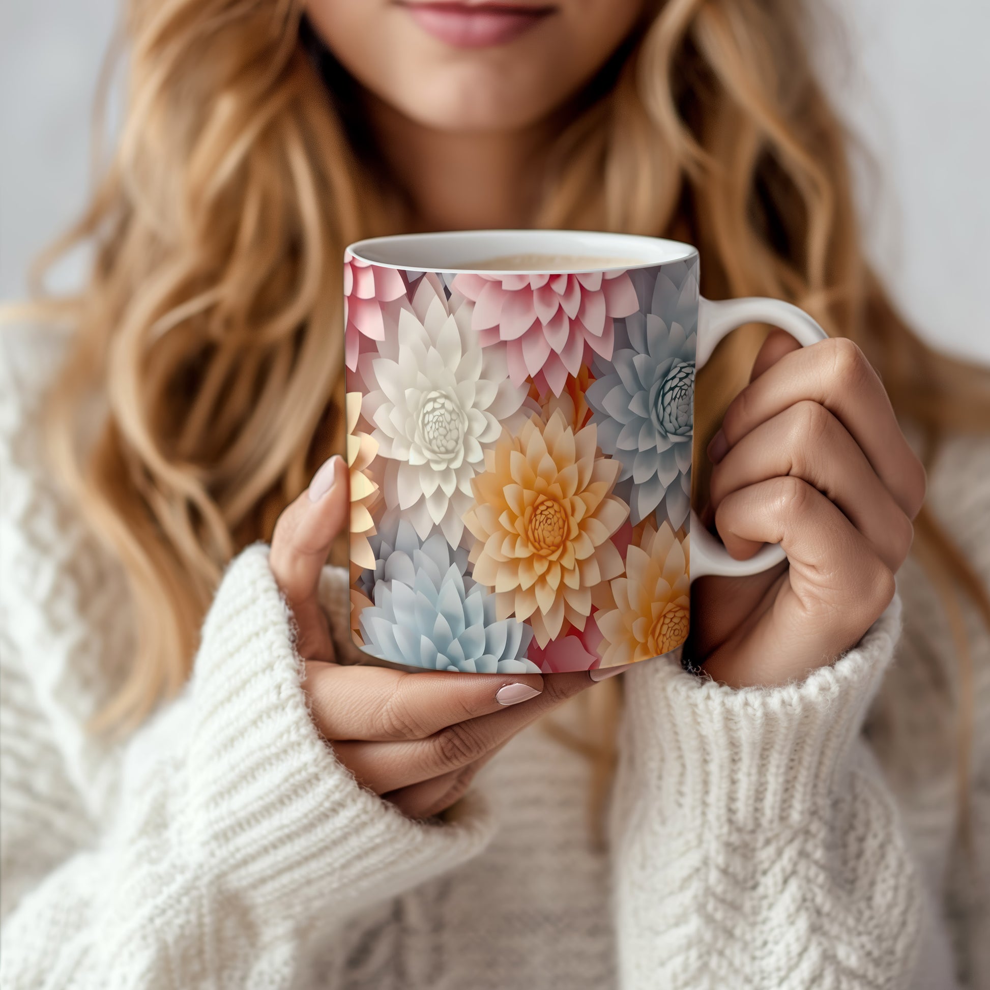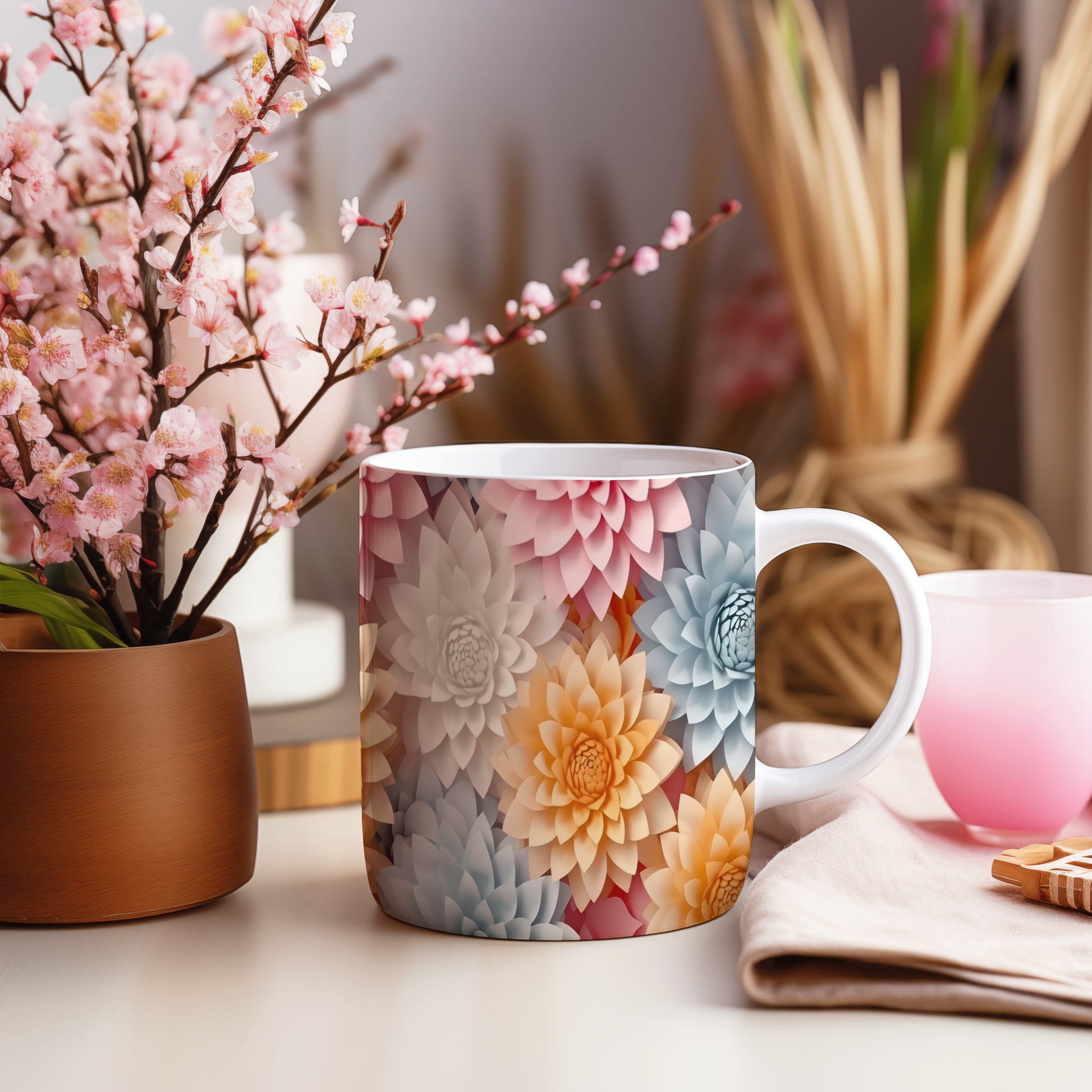 Hrnek s květinovým motivem v pastelových tónech