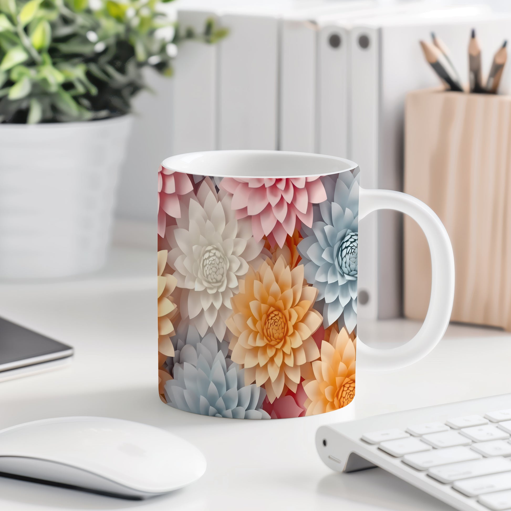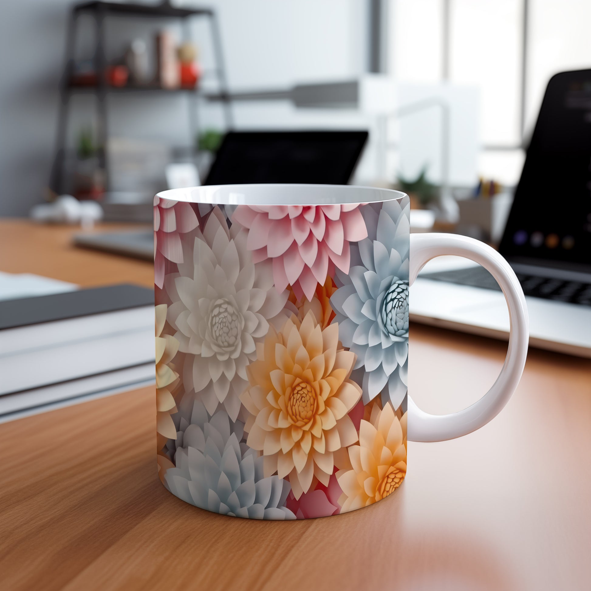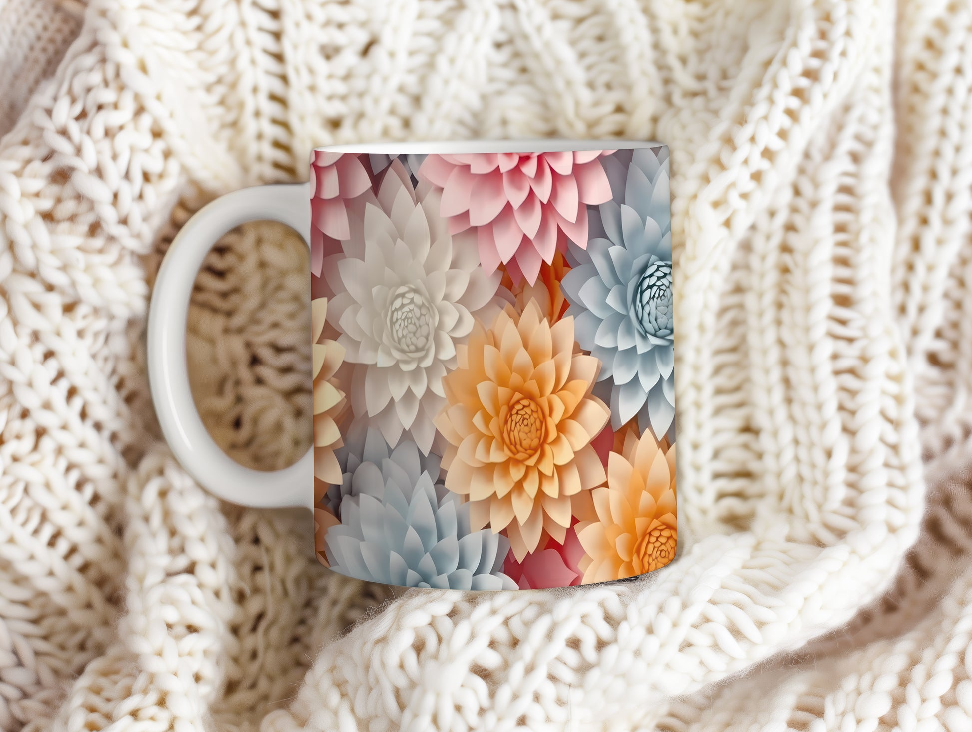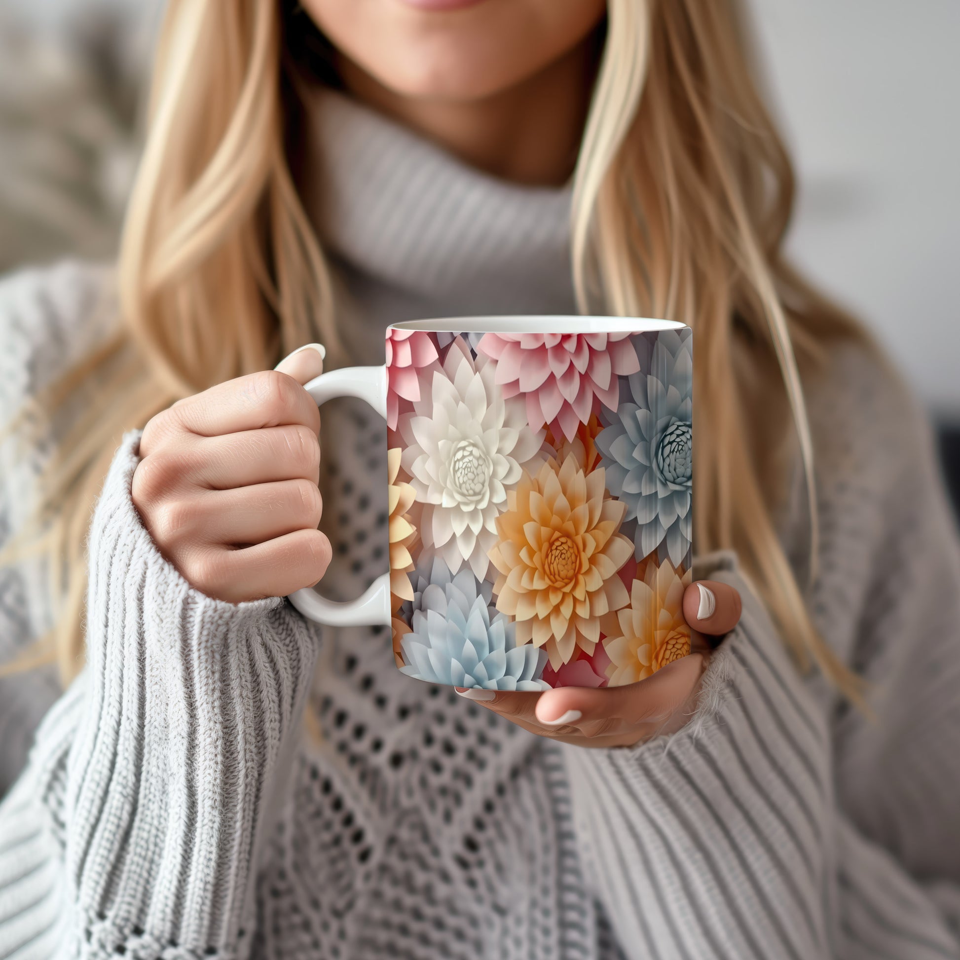 Hrnek s květinovým motivem v pastelových tónech