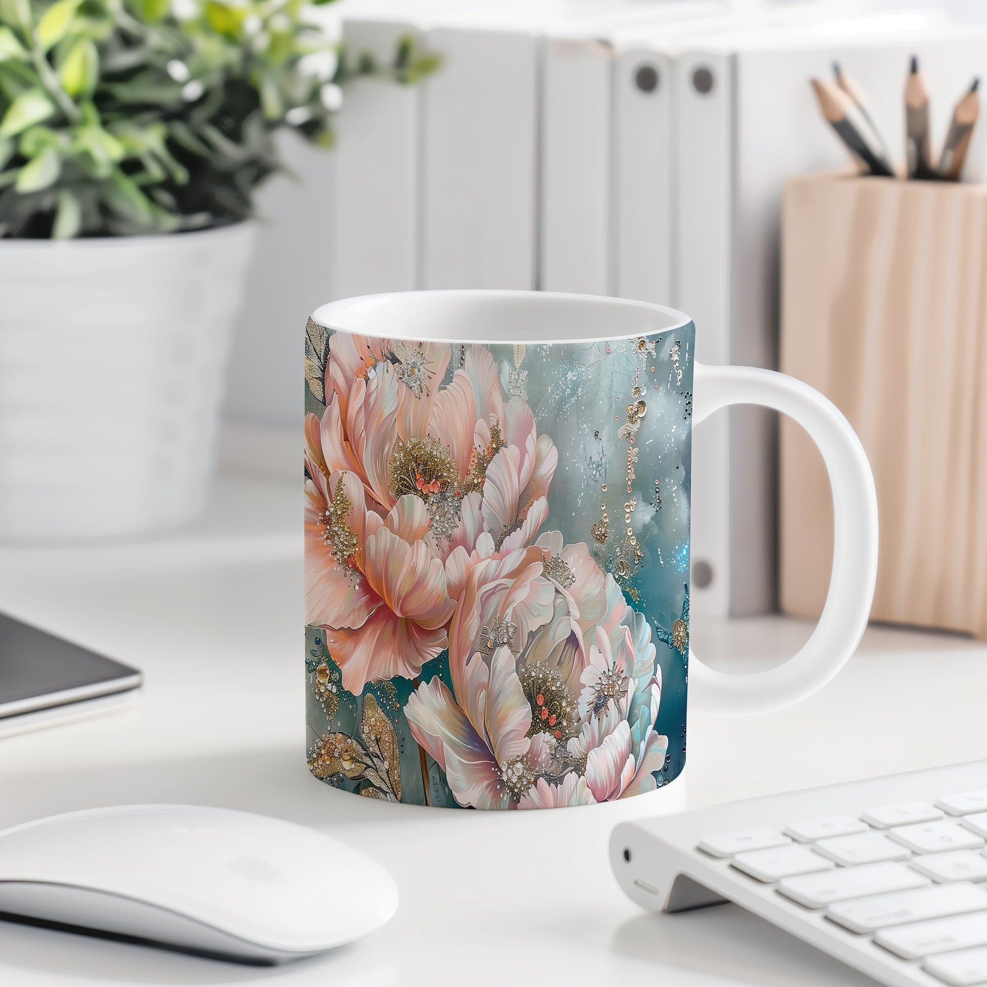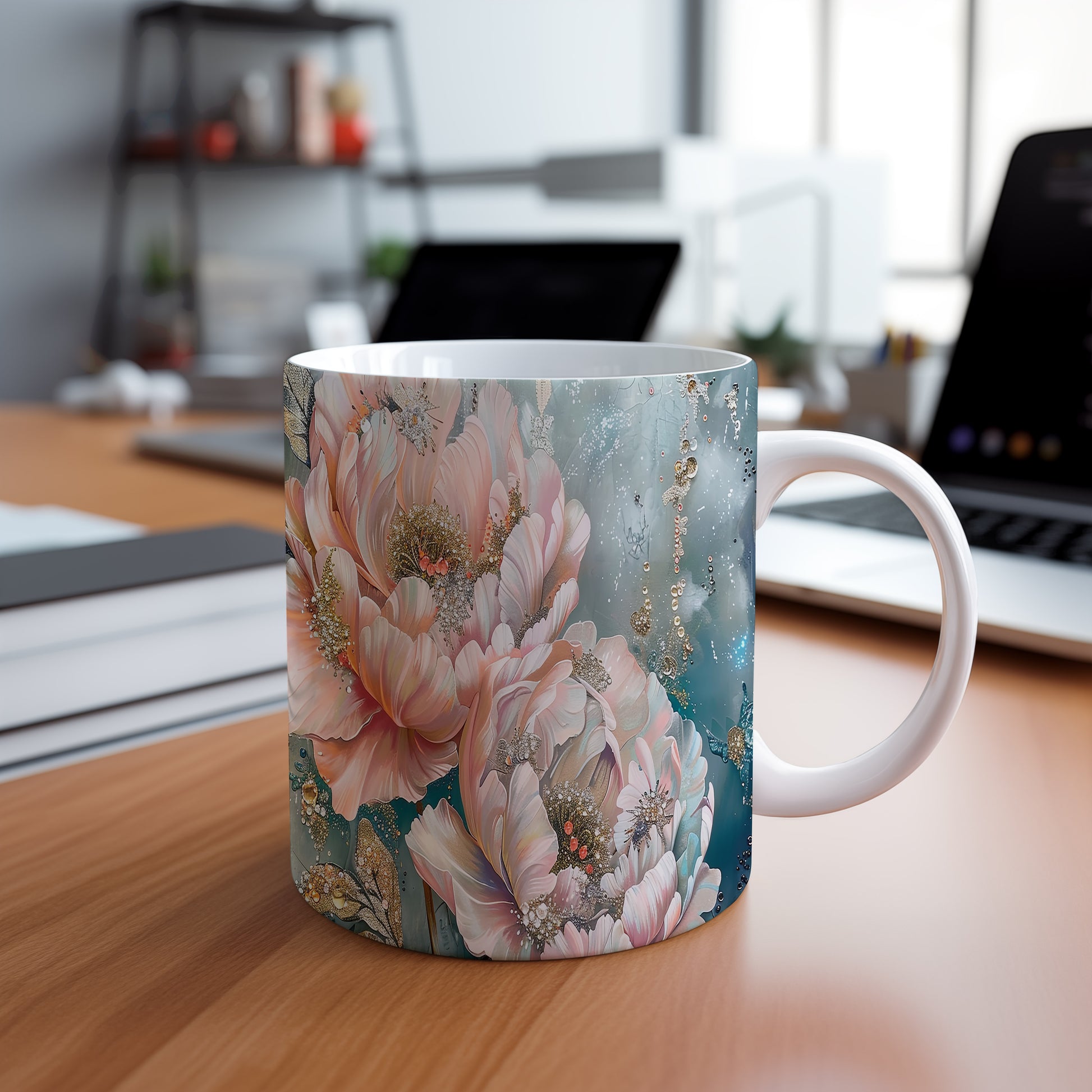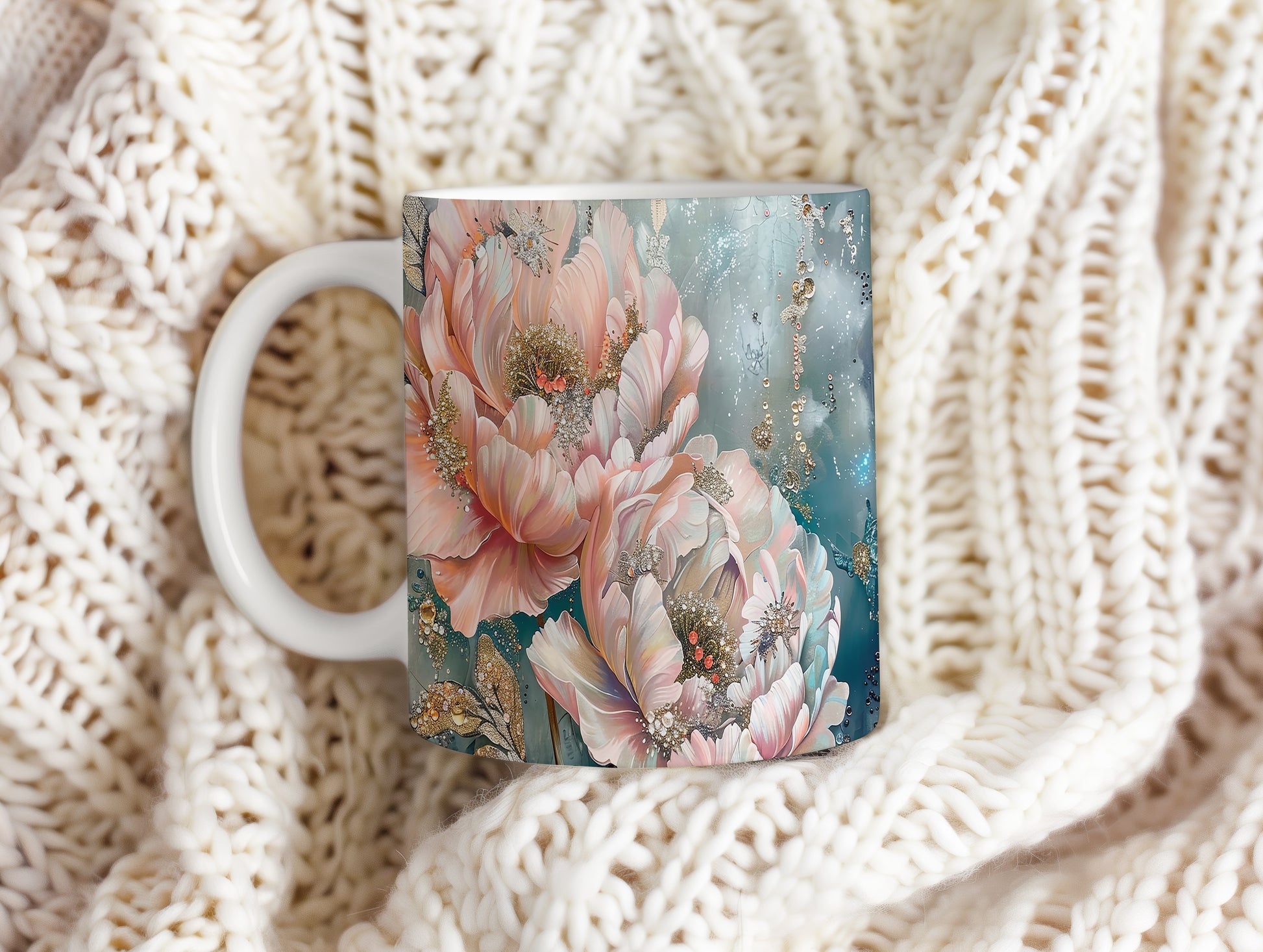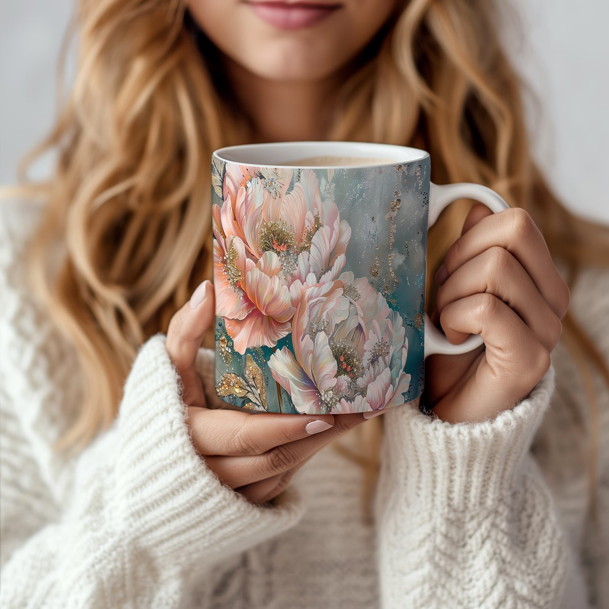 Hrnek s květinovým motivem v pastelových tónech – jemnými detaily