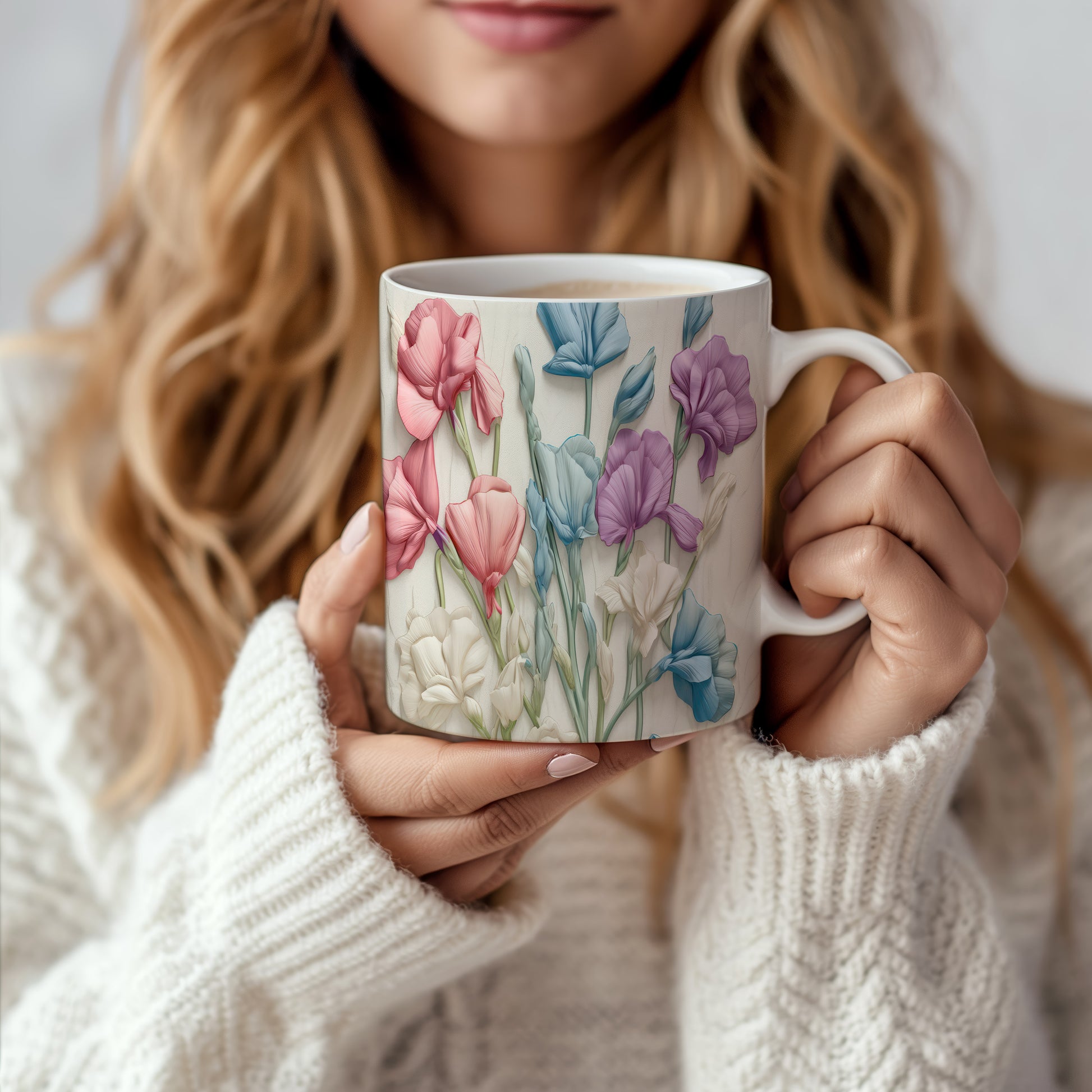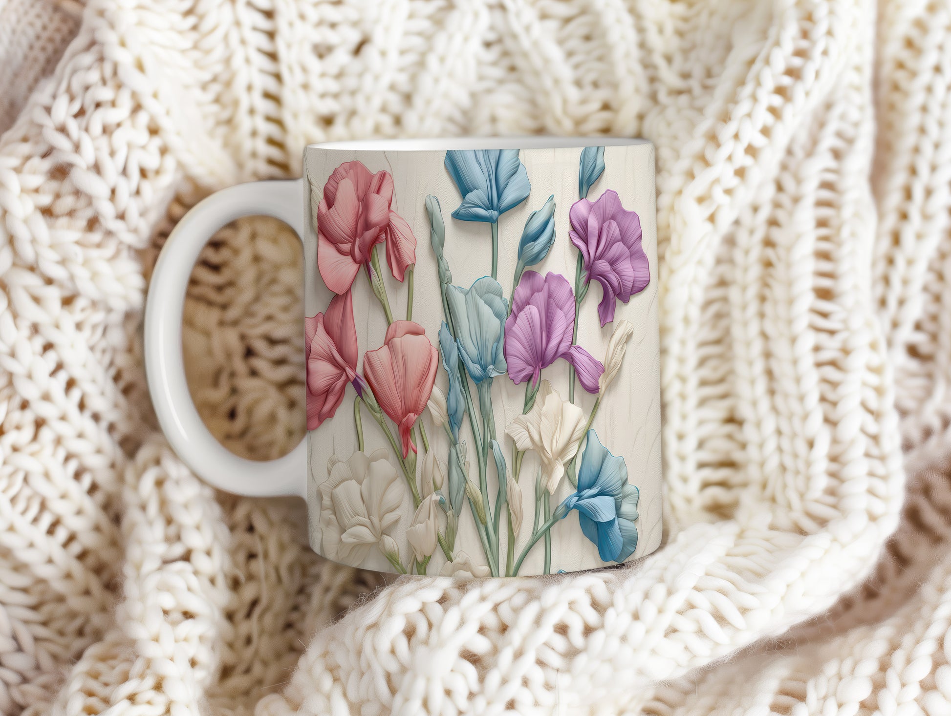 Hrnek s květinovým motivem v pastelových tónech – malířský styl