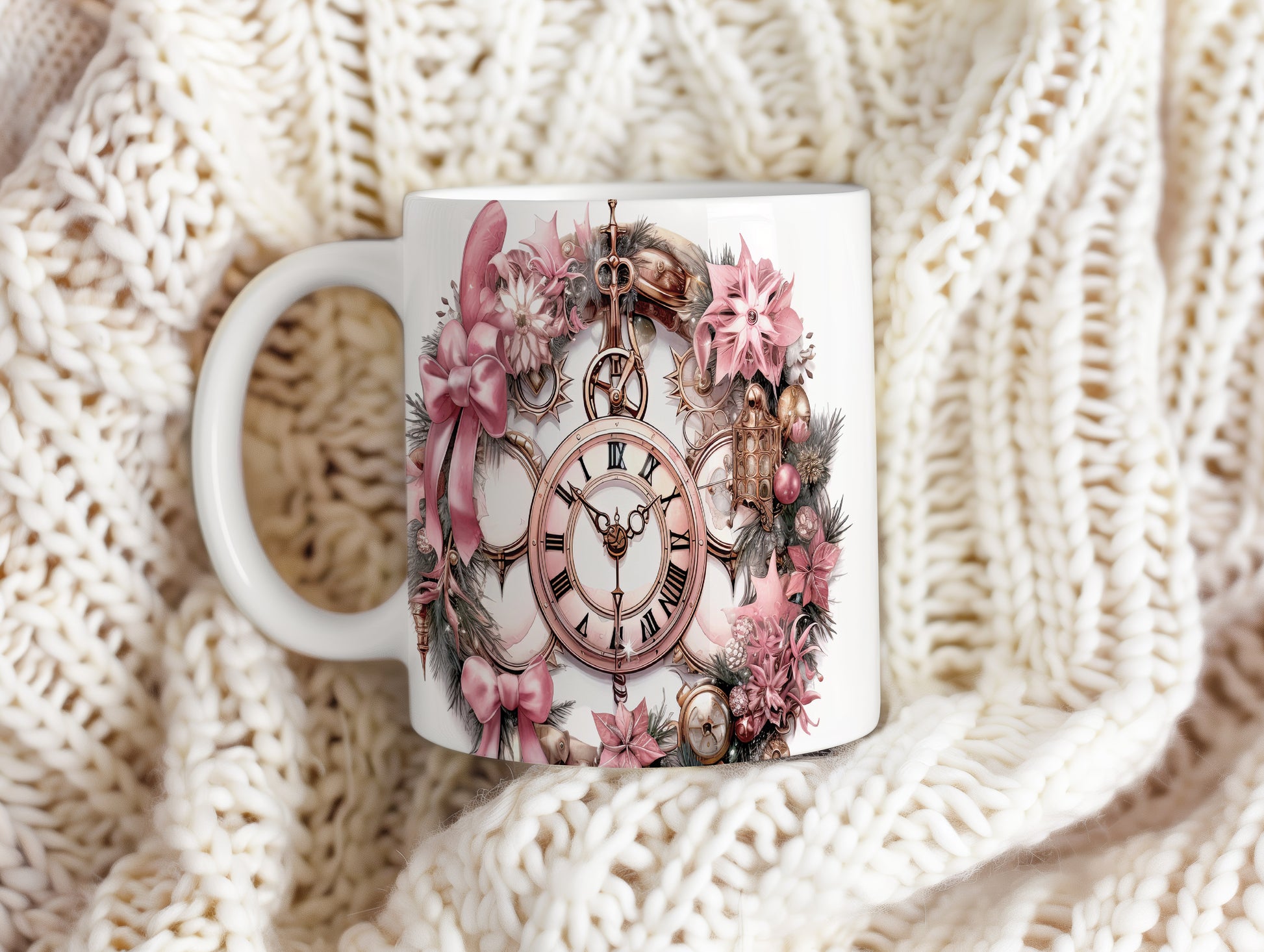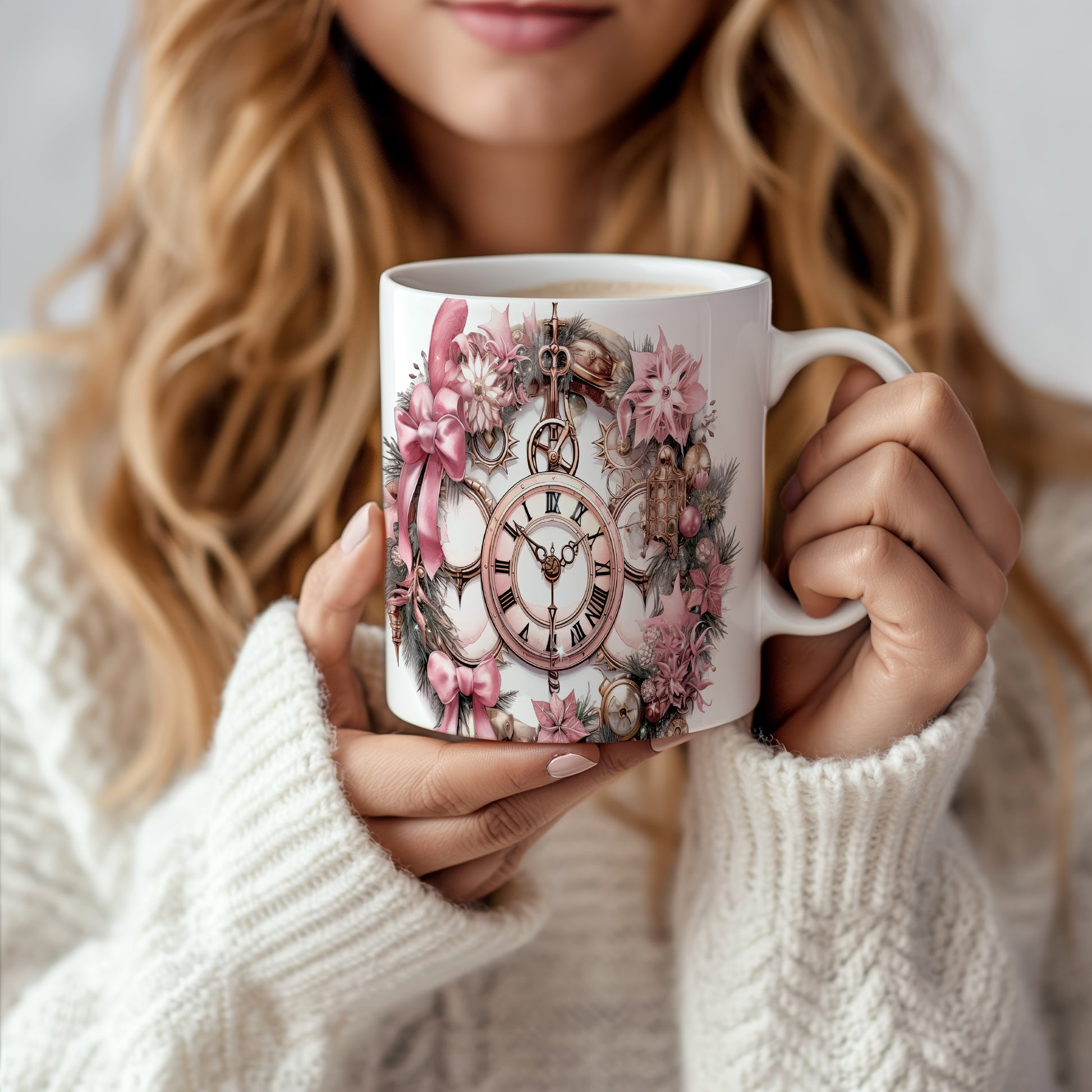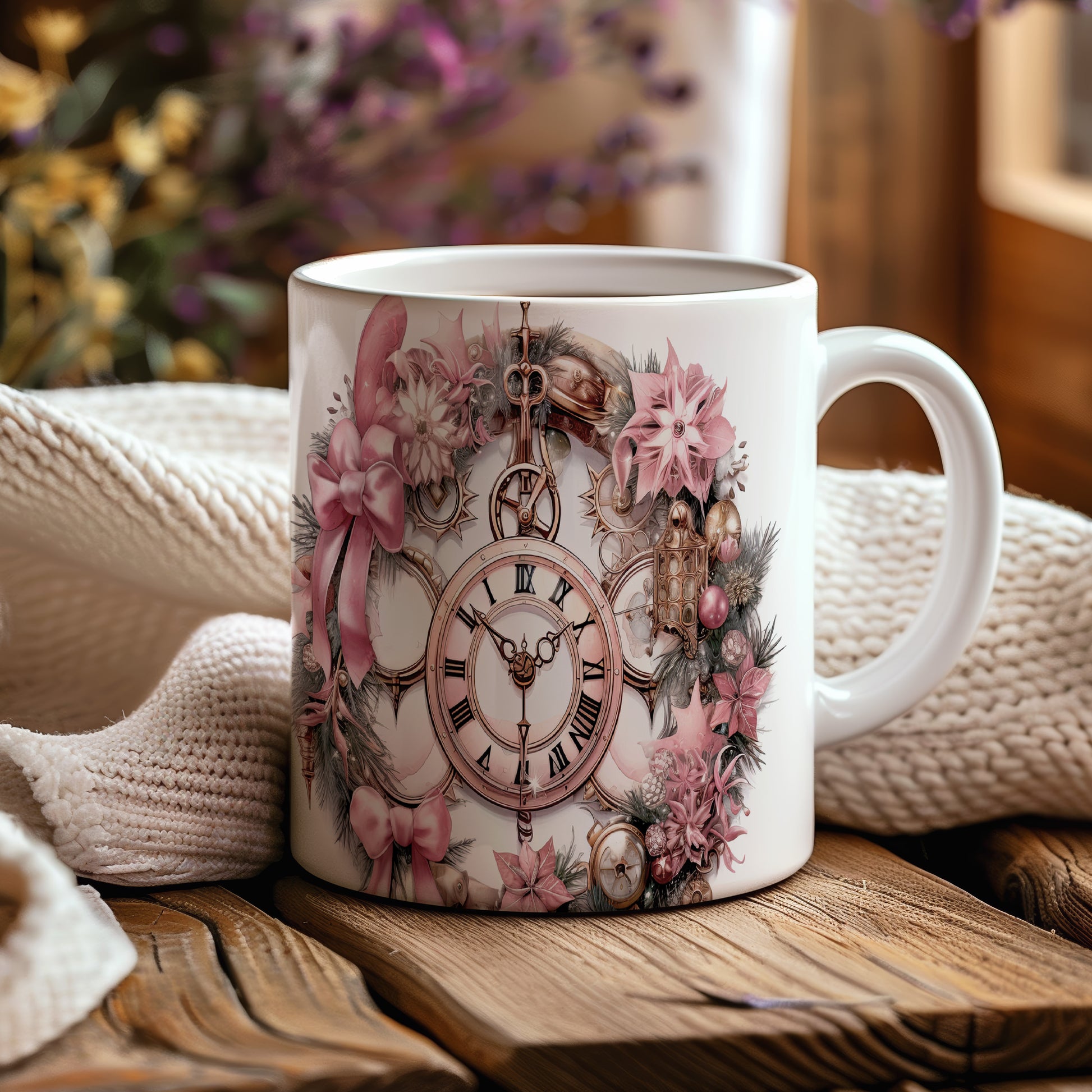 Hrnek s květinovým motivem v růžových a zlatých tónech
