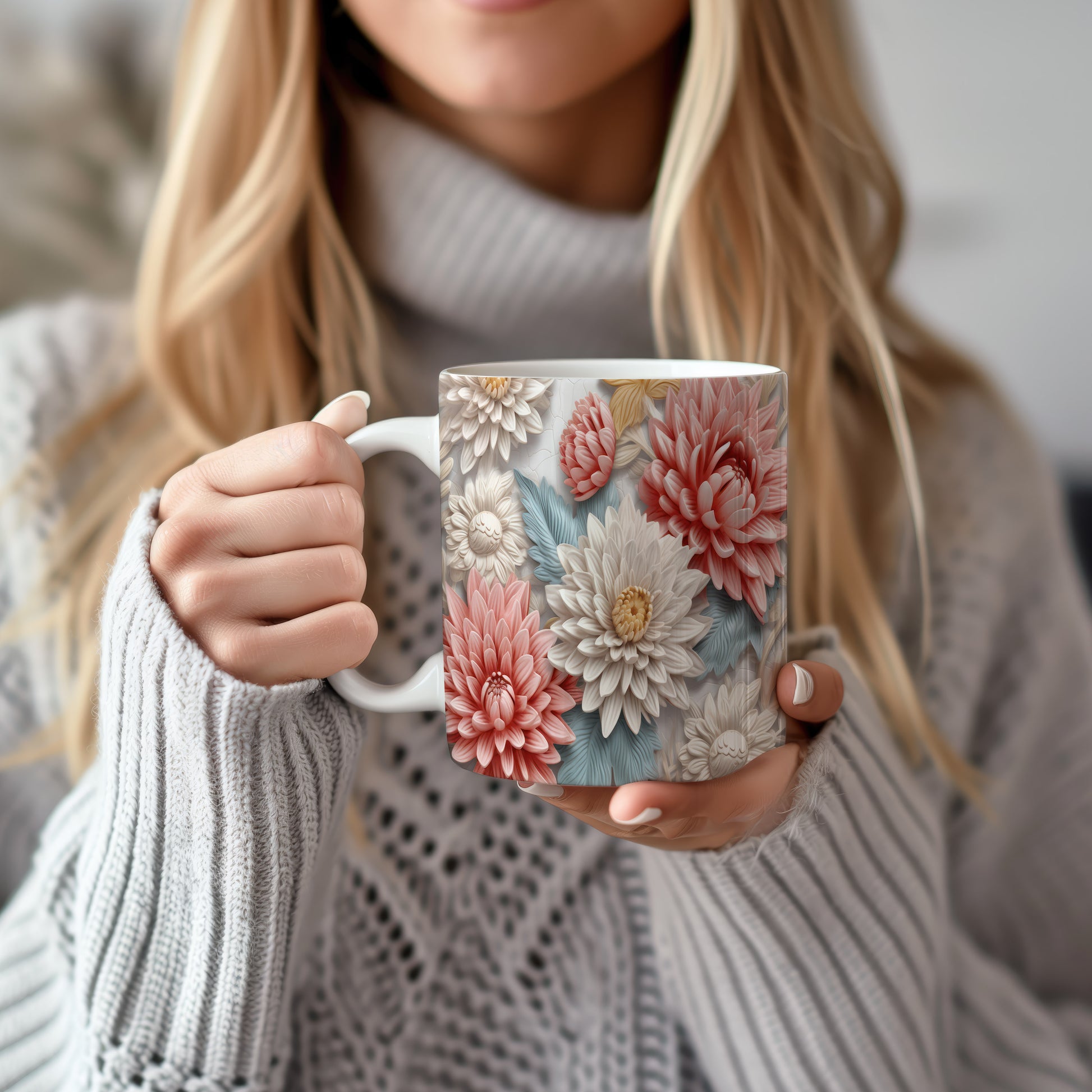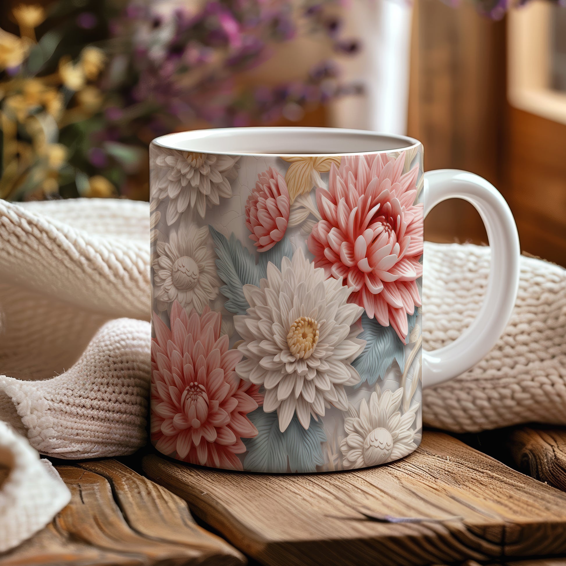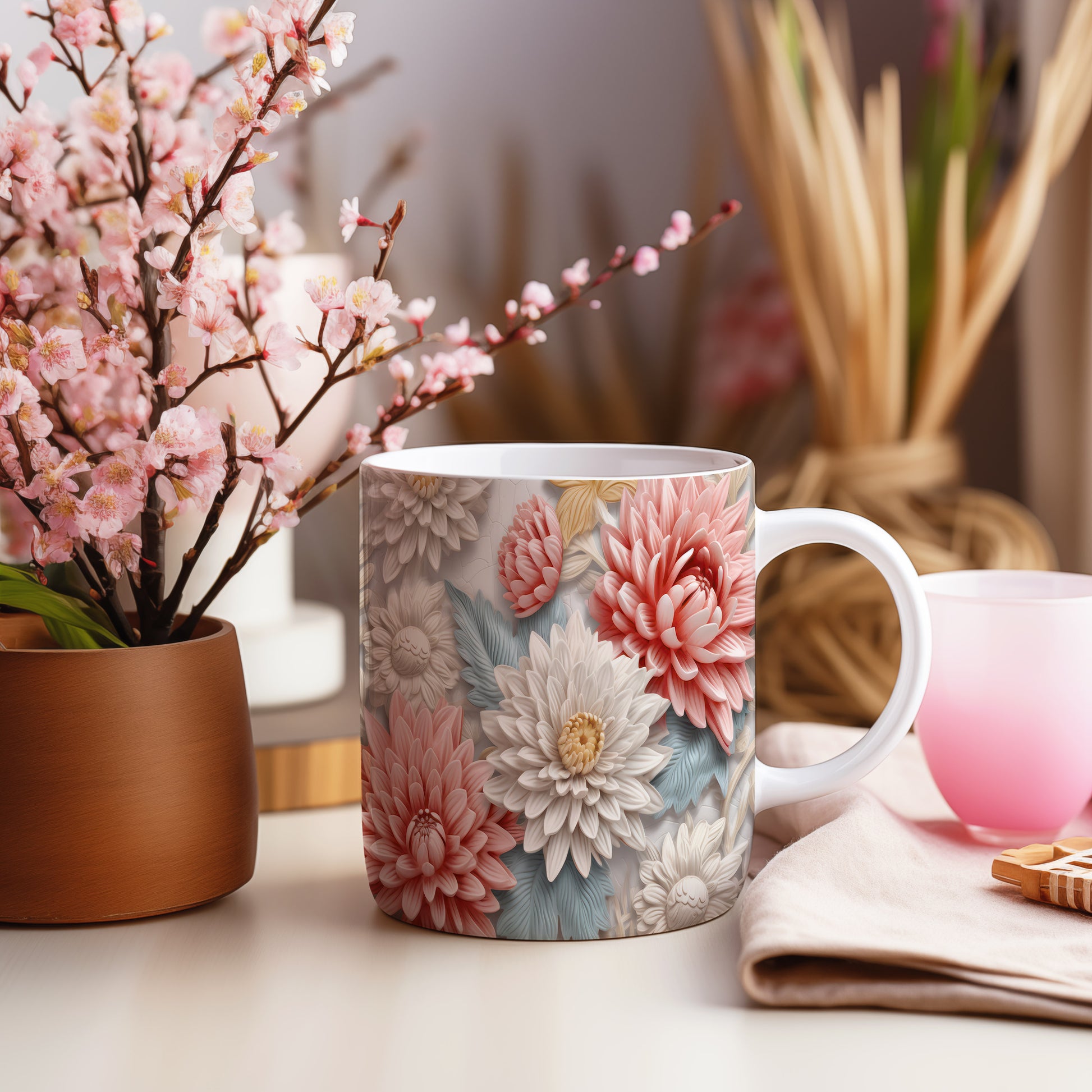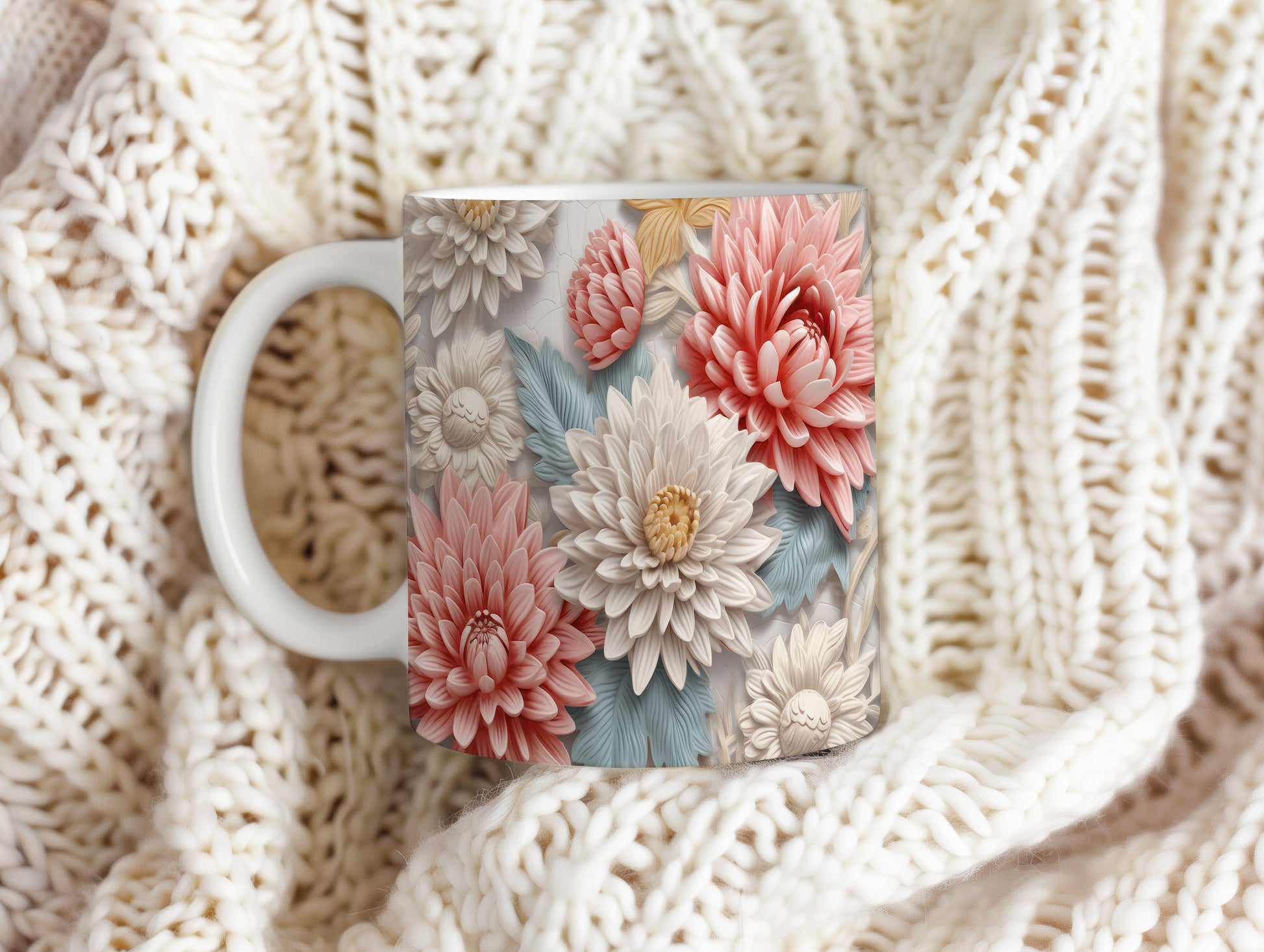 Hrnek s květinovým motivem v růžových tónech – 3D efektem