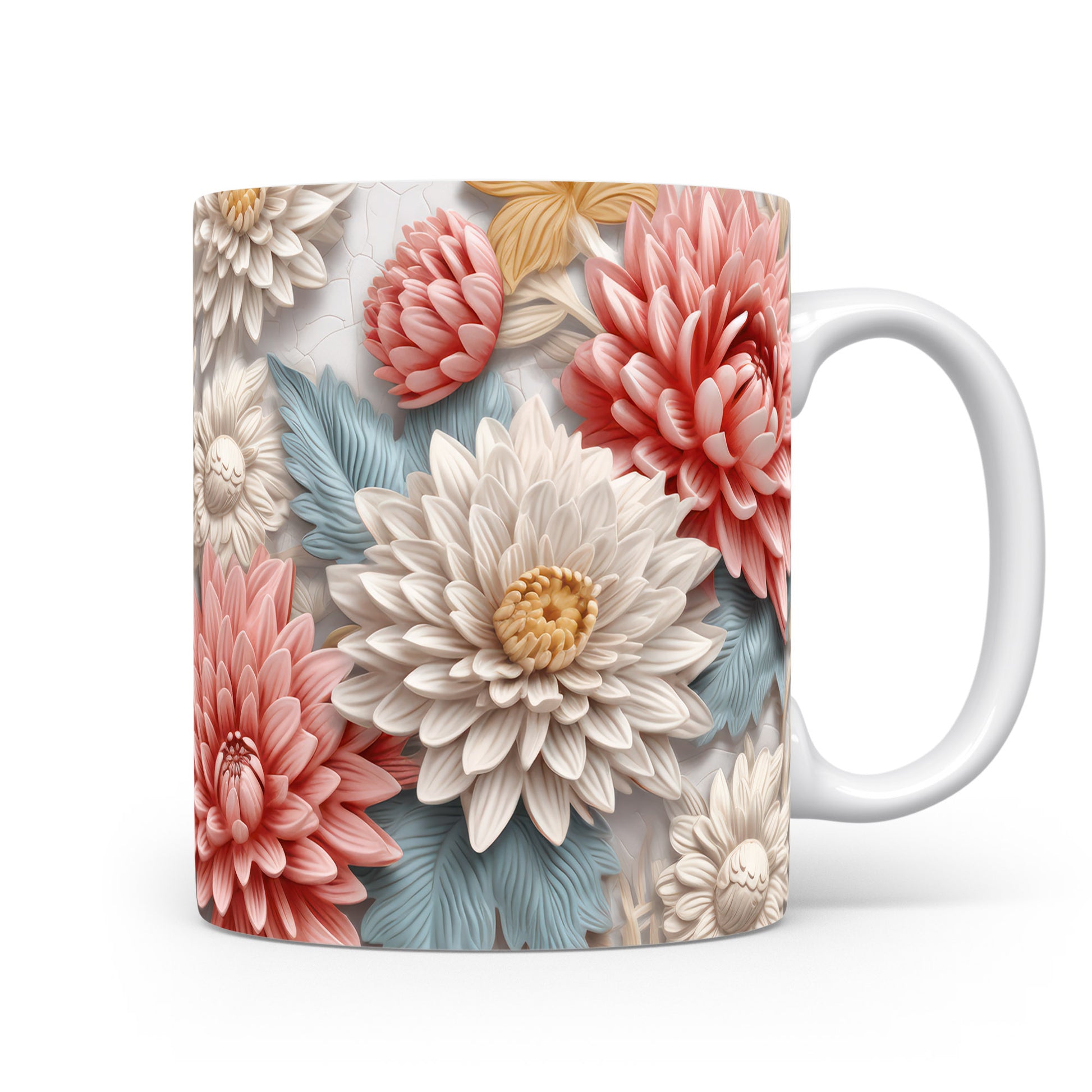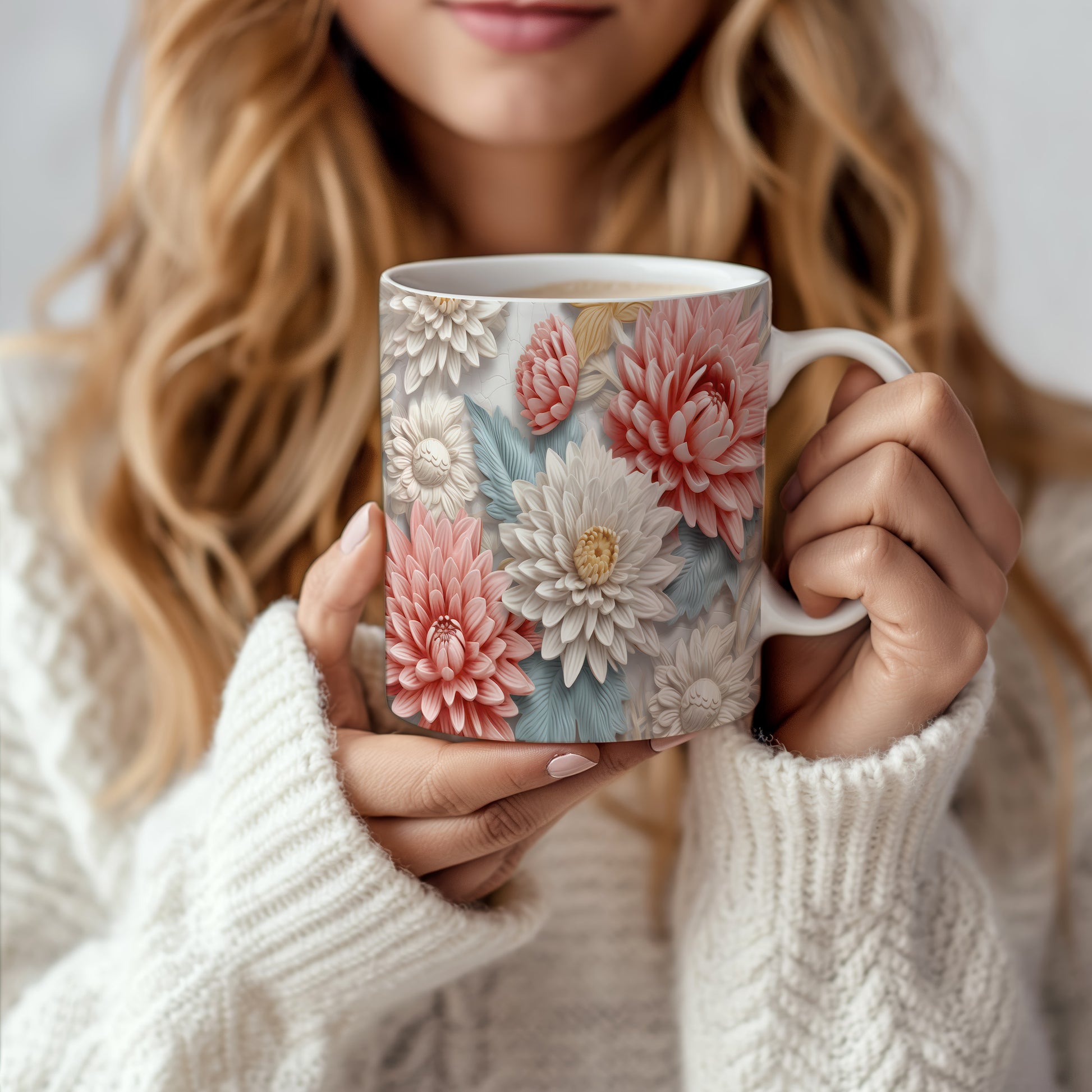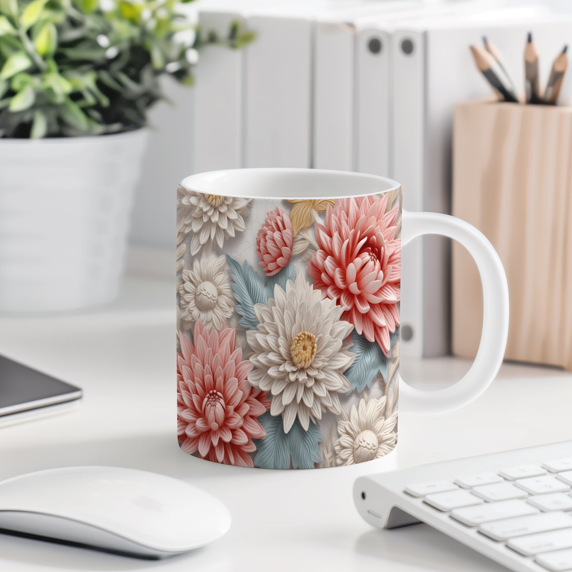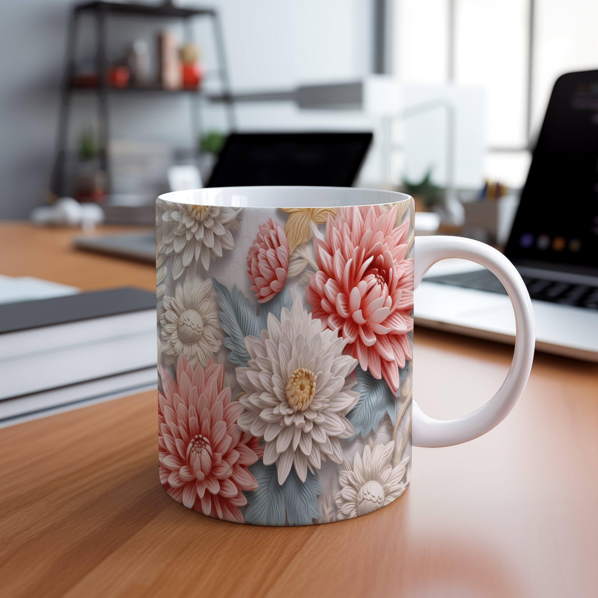 Hrnek s květinovým motivem v růžových tónech – 3D efektem
