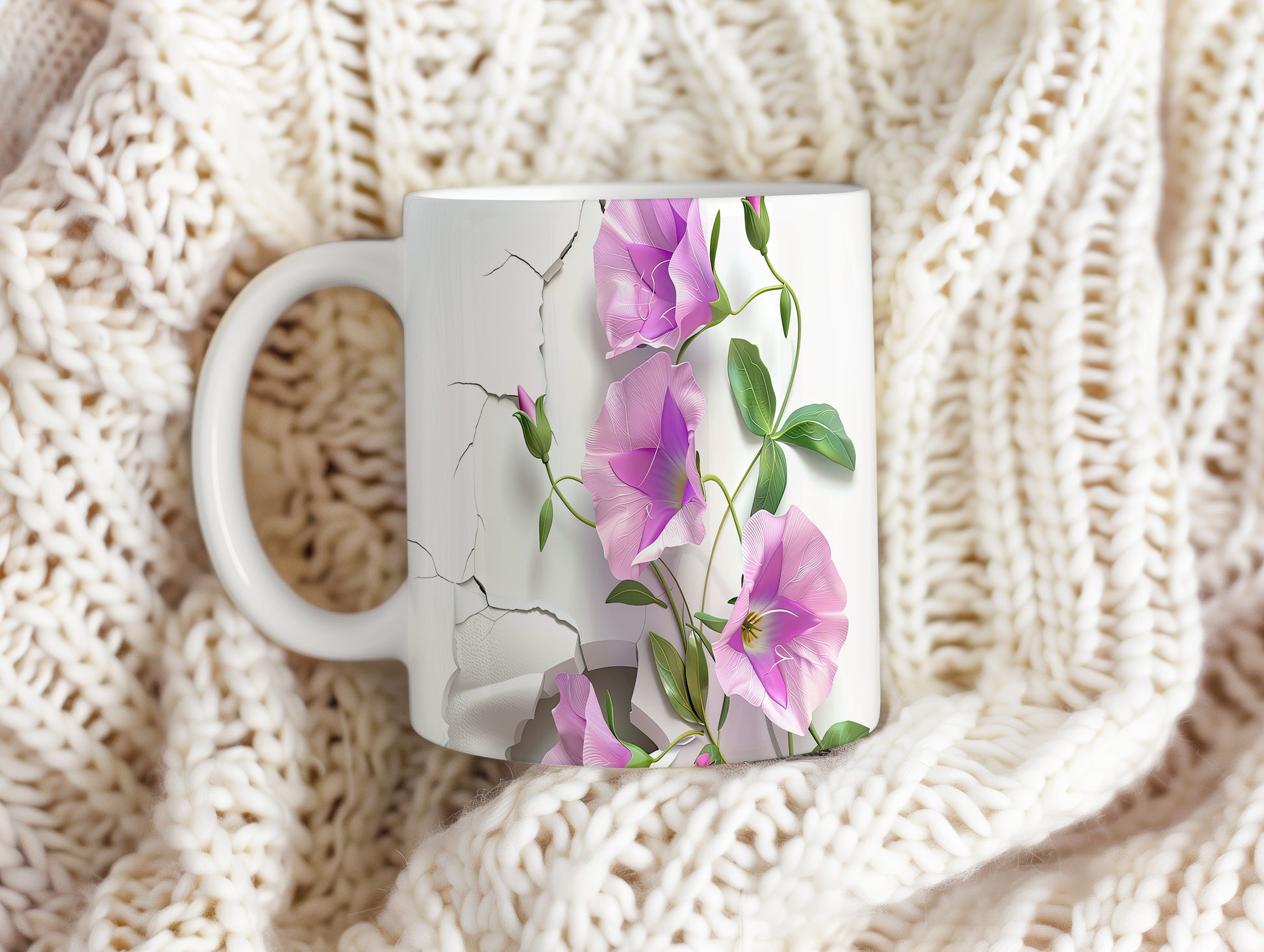 Hrnek s květinovým motivem v růžových tónech – bílým provedením