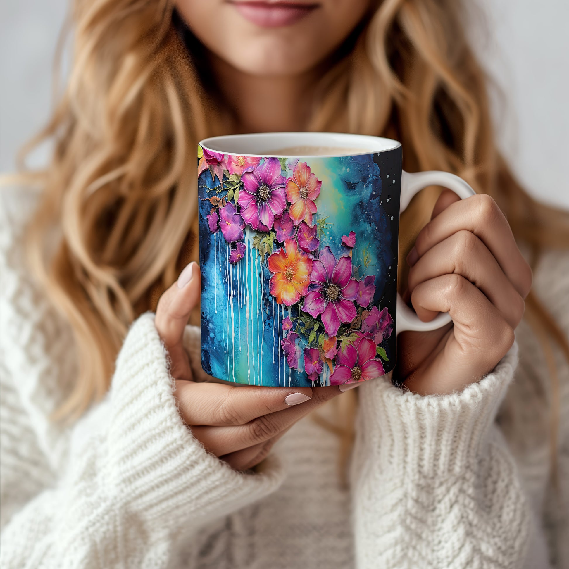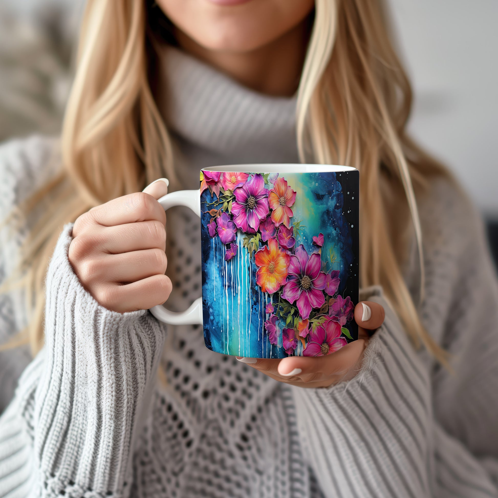 Tento keramický hrnek s květinovým motivem v růžových a oranžových odstínech je skvělým doplňkem pro každodenní pití. Je ideální jako dárek pro milovníky přírody nebo pro ty, kteří chtějí oživit svůj stůl. Materiál: keramika. Objem: 330 ml. Vhodné do myčky i mikrovlnky. Díky svému designu přináší radost a pozitivní energii do každého dne.