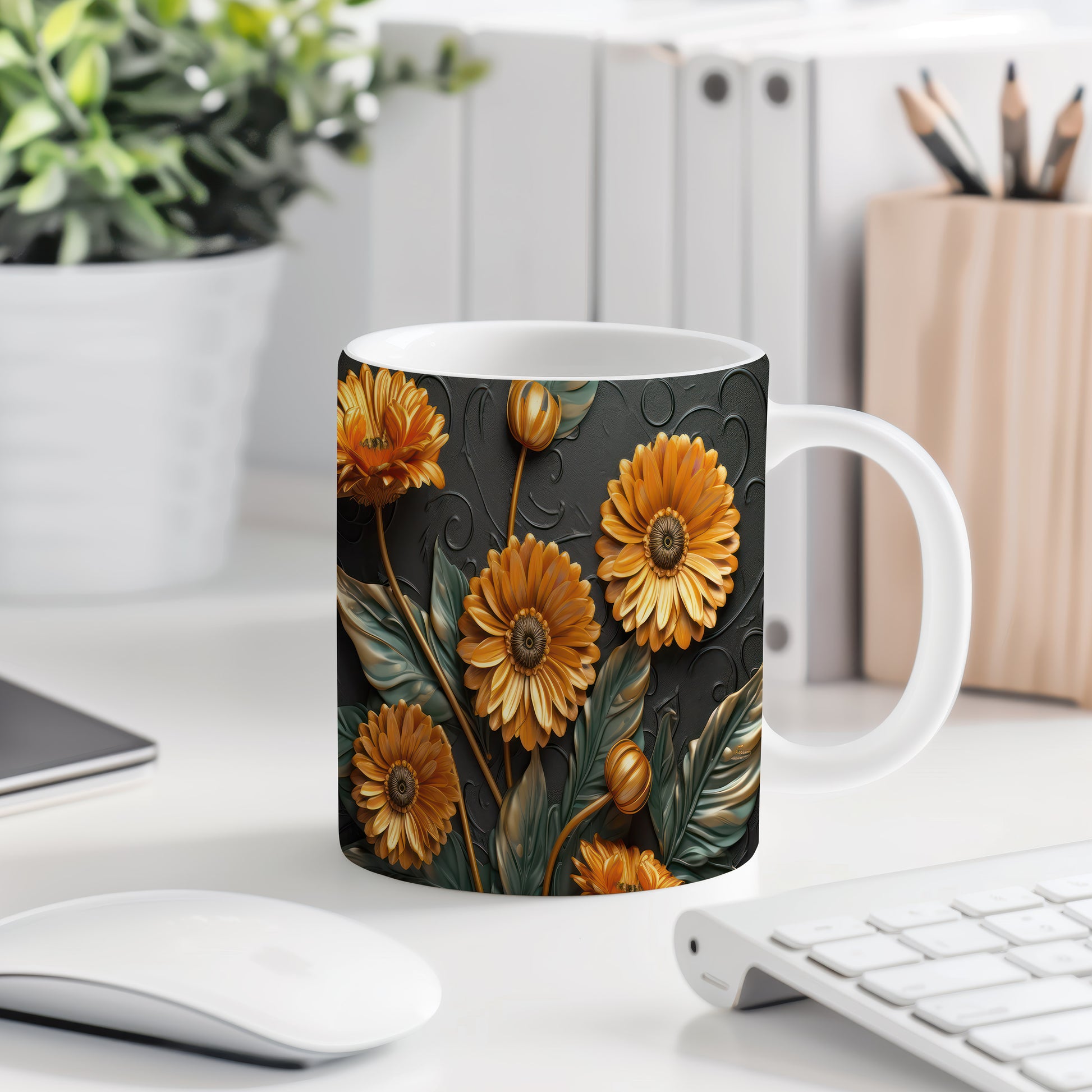 Hrnek s krásným květinovým motivem v teplých odstínech. Tento stylový kousek je ideální pro milovníky přírody a skvělým dárkem pro každou příležitost. Materiál: keramika. Objem: 330 ml. Vhodné do myčky i mikrovlnky. Používání tohoto hrnku přináší radost z každého doušku.