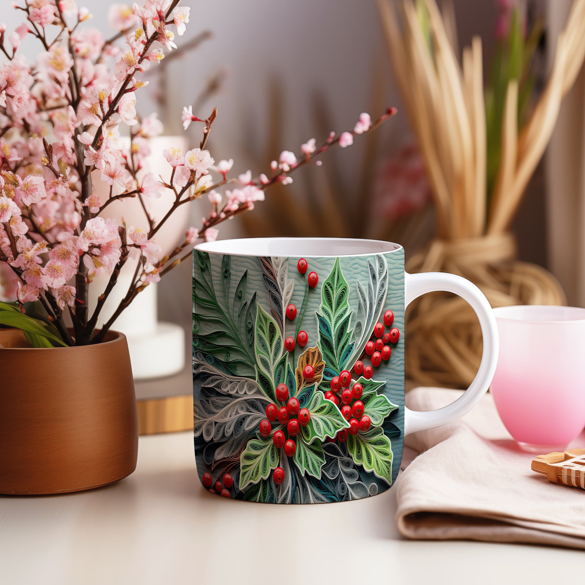 Elegantní hrnek s detailním květinovým motivem zelených listů a červených bobulí. Tento stylový kousek je ideální pro každou příležitost a skvěle se hodí jako dárek pro milovníky přírody. Materiál: keramika. Objem: 330 ml. Vhodné do myčky i mikrovlnky. Užijte si kávu nebo čaj v krásném designu, který potěší vaše smysly.