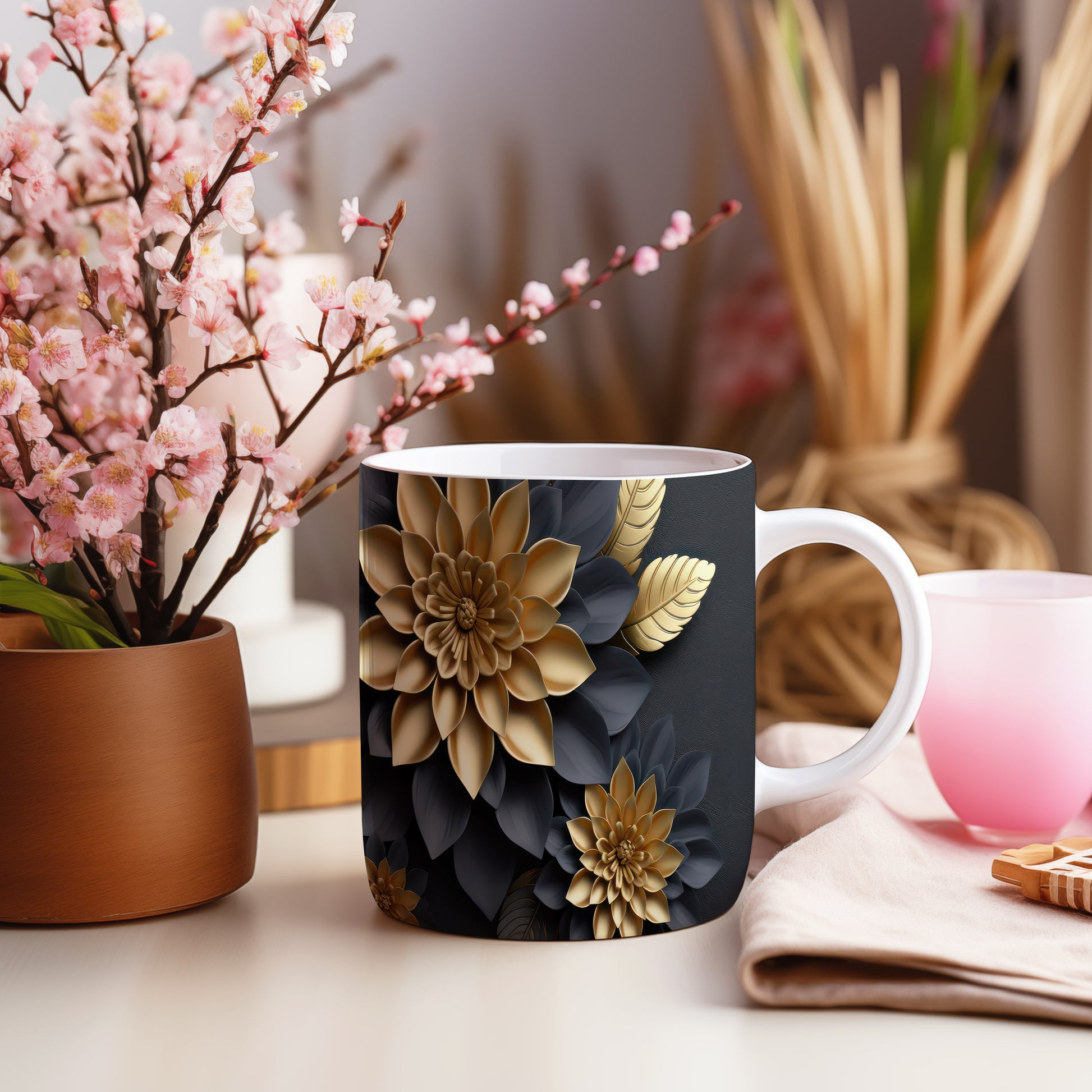 Tento keramický hrnek s elegantním květinovým motivem v zlaté a černé barvě je ideální volbou pro milovníky stylového nádobí. Skvěle se hodí jako dárek pro přátele nebo rodinu, kteří ocení krásu a funkčnost. Materiál: keramika. Objem: 330 ml. Vhodné do myčky i mikrovlnky. Díky svému designu přináší do každodenního pití kávy nebo čaje nádech luxusu.